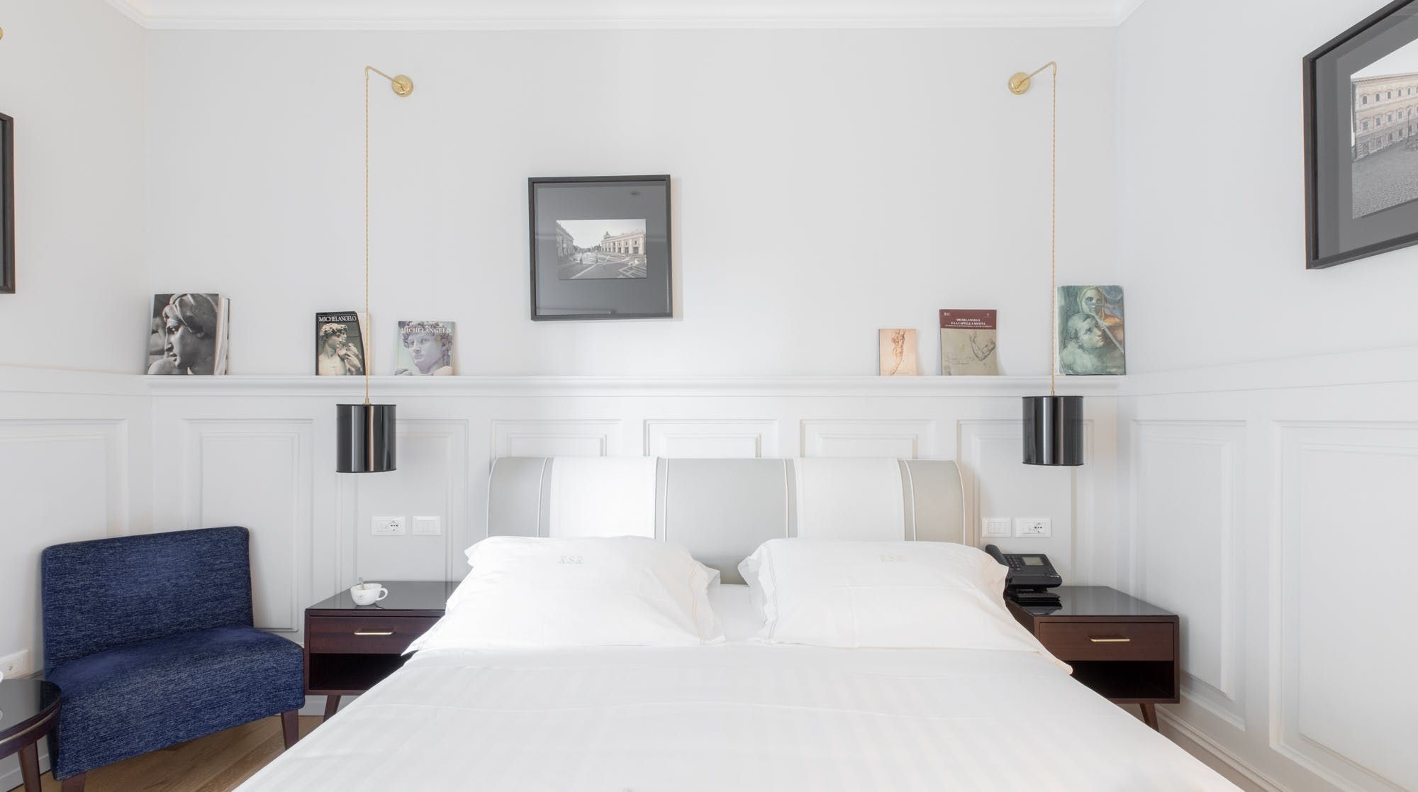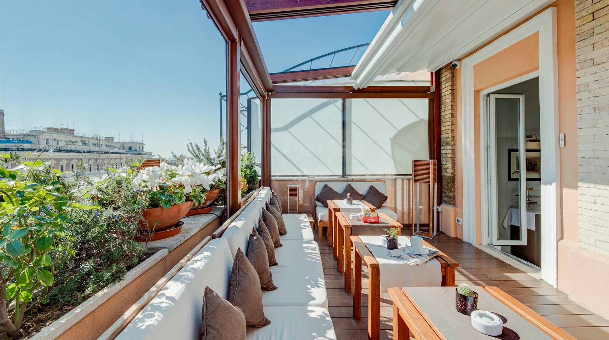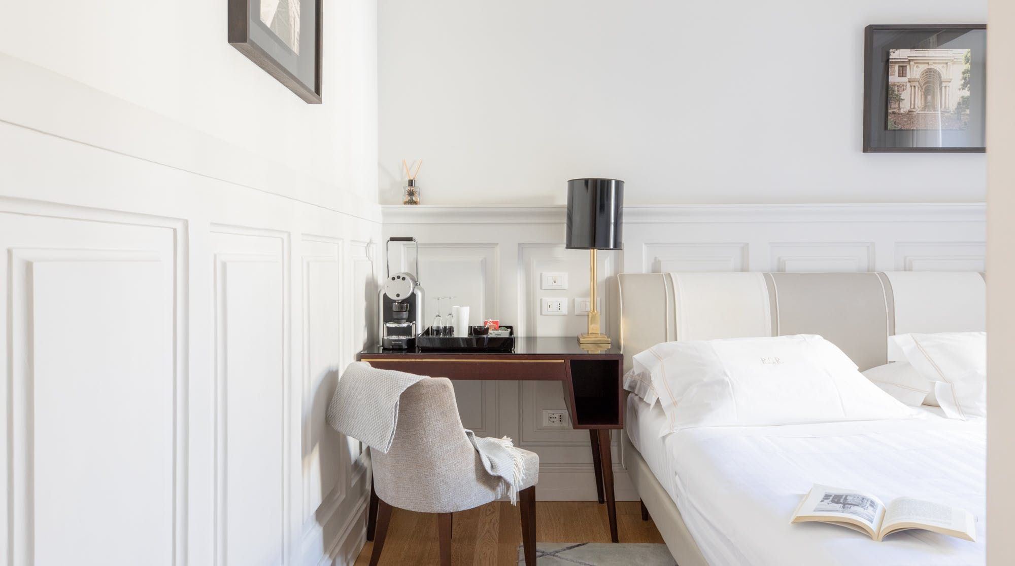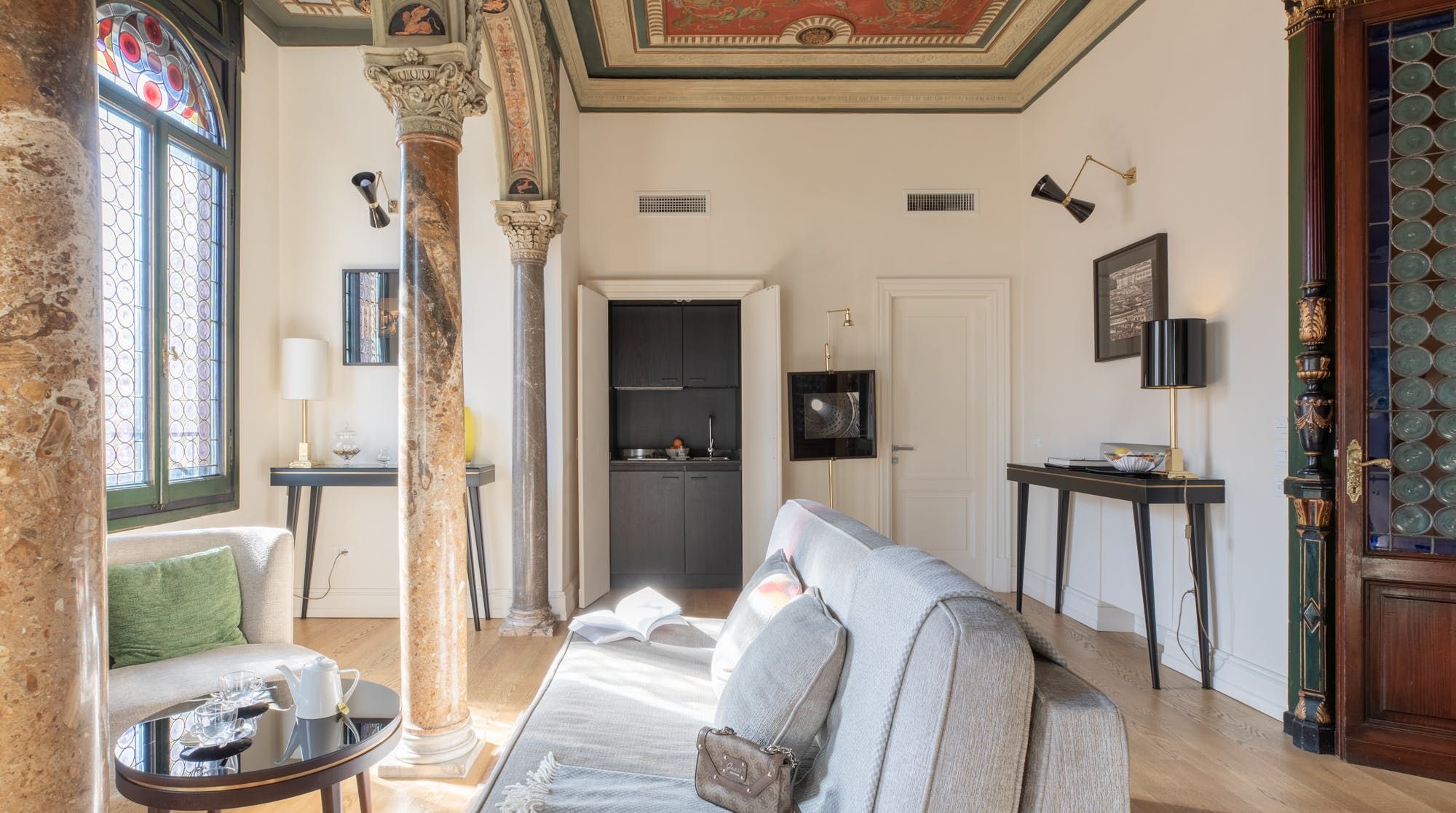 Everything about this palatial apartment clicks seamlessly into place. It’s luxurious, opulent even (how else do you describe the marble columns?), but retains a certain grace – a lightness that stops it from feeling over the top. That’s quite an achievement in a place with ceiling frescoes, parquet flooring, and marble arches. While the living space has a real air of elegance, the bedrooms are more modern and stylish, with whitewashed walls, gold accented furnishings and tasteful artwork (plus their own individual coffee machines). Inhabiting the space between a hotel and an apartment, you'll find plenty of other thoughtful amenities during your stay – from a private chef, housekeeping, and 24/7 concierge. Take your breakfast outside, prepared and served by the staff on your rooftop terrace, offering skyline views over the Eternal City. Beckoning you to explore, walk sixteen minutes and find yourself at one of the seven wonders of the world – the Colosseum. Take a fourteen-minute stroll to the ancient Roman Forum ruins and reach the famous Trevi Fountain in just thirteen-minutes (on foot) – with such a central location, you'll find most of the iconic sights are but a saunter from home.