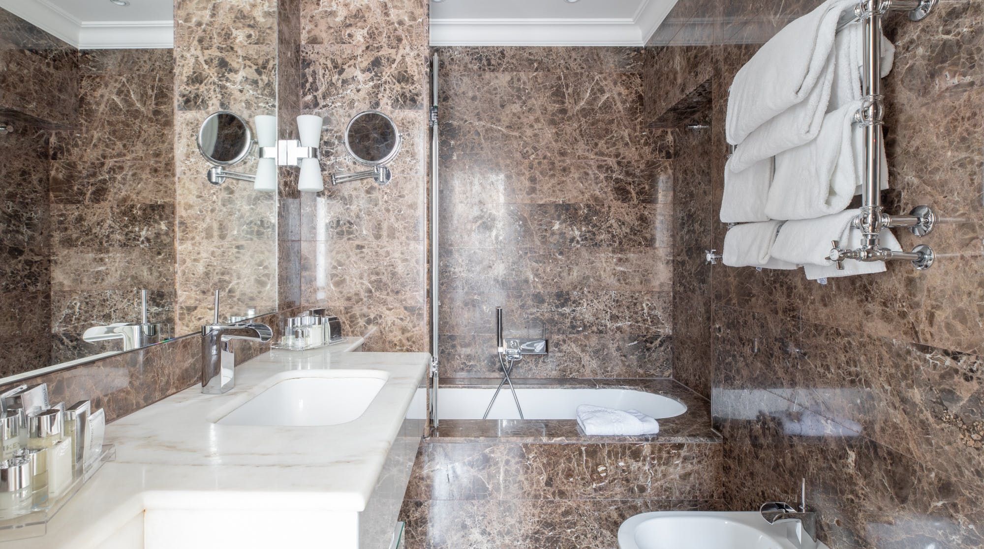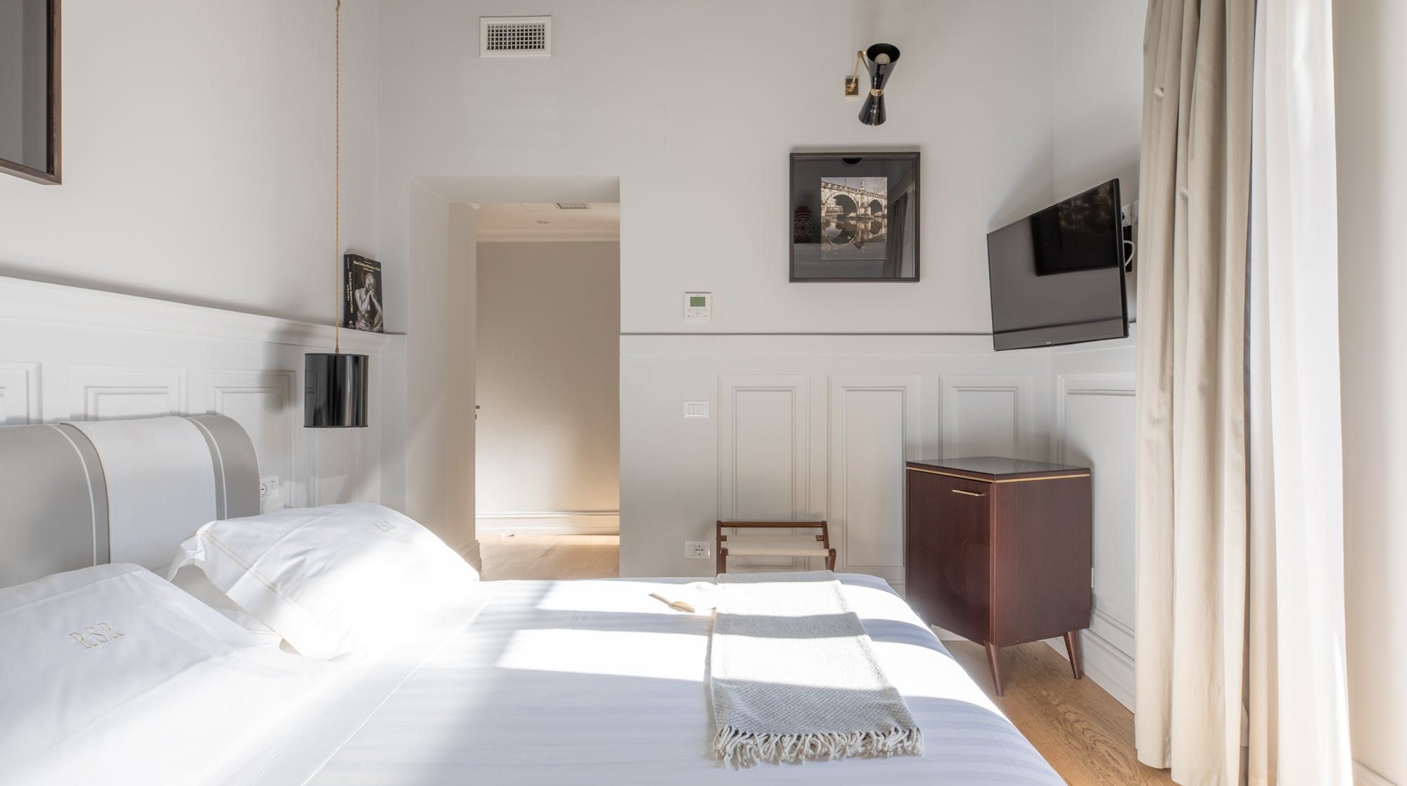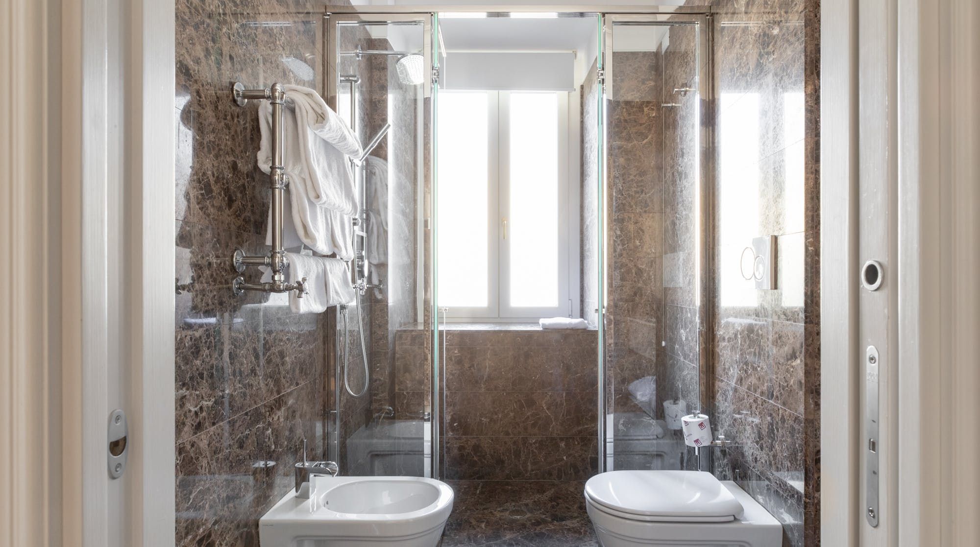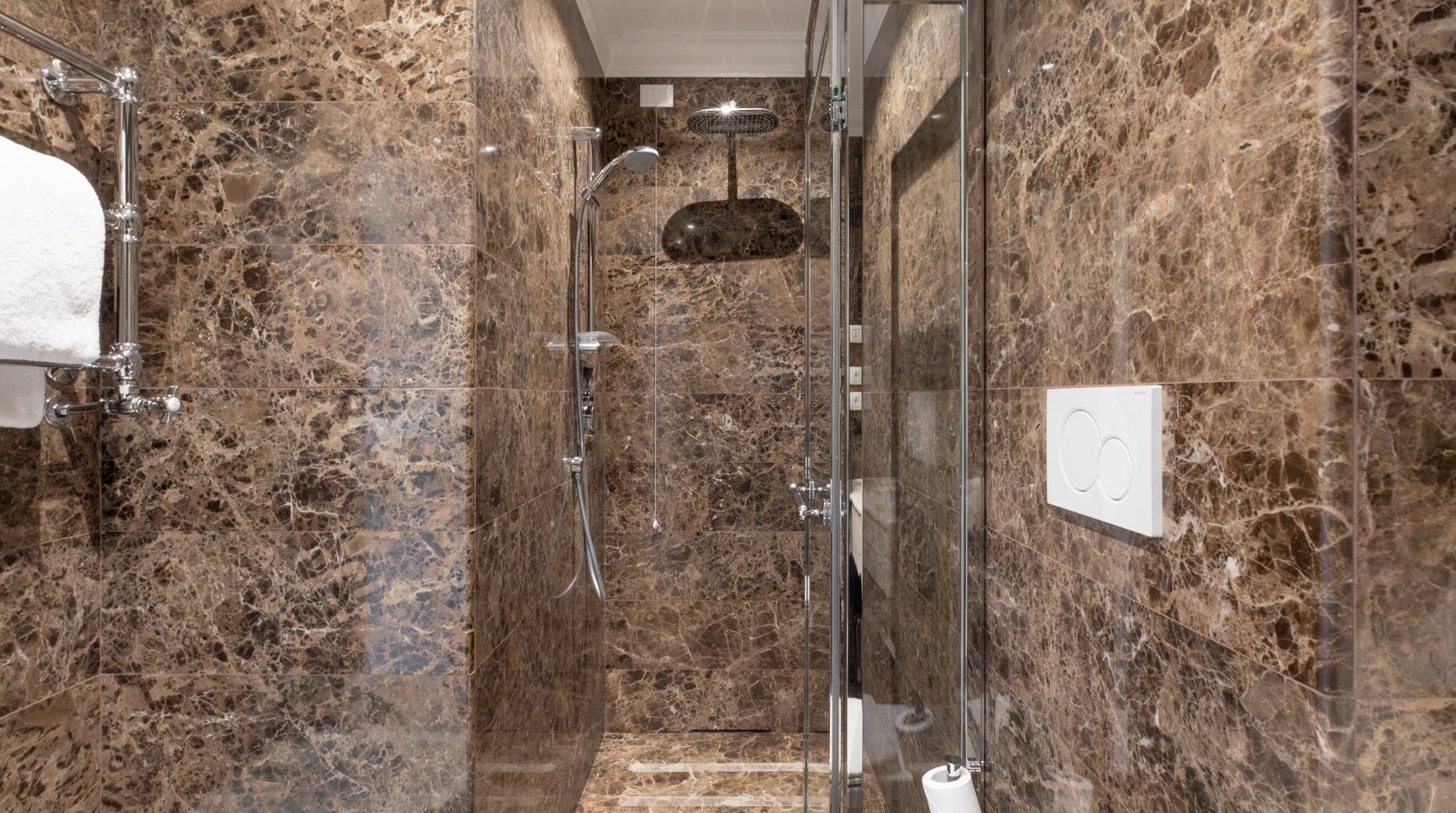 Everything about this palatial apartment clicks seamlessly into place. It’s luxurious, opulent even (how else do you describe the marble columns?), but retains a certain grace – a lightness that stops it from feeling over the top. That’s quite an achievement in a place with ceiling frescoes, parquet flooring, and marble arches. While the living space has a real air of elegance, the bedrooms are more modern and stylish, with whitewashed walls, gold accented furnishings and tasteful artwork (plus their own individual coffee machines). Inhabiting the space between a hotel and an apartment, you'll find plenty of other thoughtful amenities during your stay – from a private chef, housekeeping, and 24/7 concierge. Take your breakfast outside, prepared and served by the staff on your rooftop terrace, offering skyline views over the Eternal City. Beckoning you to explore, walk sixteen minutes and find yourself at one of the seven wonders of the world – the Colosseum. Take a fourteen-minute stroll to the ancient Roman Forum ruins and reach the famous Trevi Fountain in just thirteen-minutes (on foot) – with such a central location, you'll find most of the iconic sights are but a saunter from home.