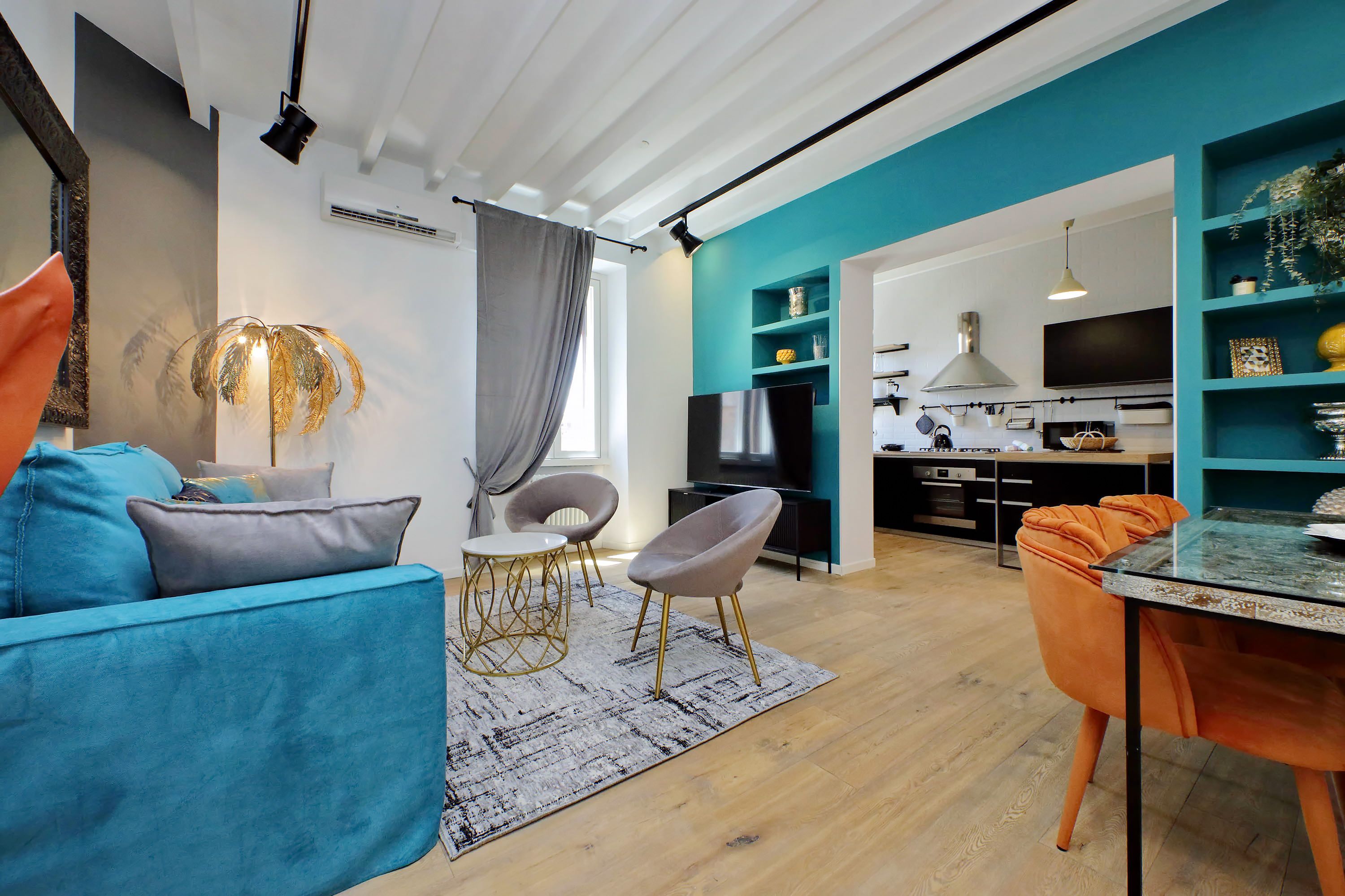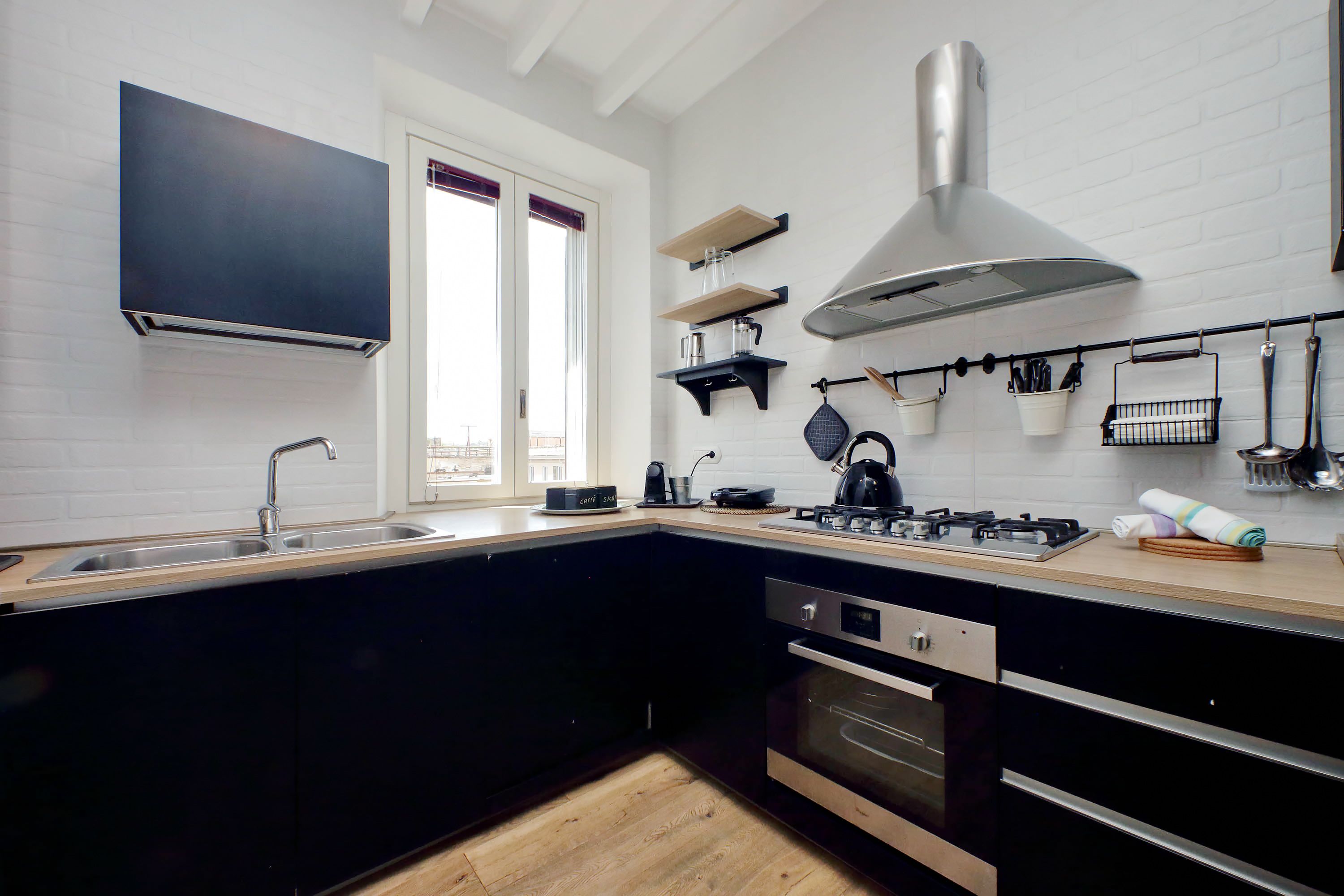 At this Prati penthouse, exploring Rome is a breeze. The Vatican Museums are 700 metres away, St. Peter's Basilica is a fifteen-minute stroll, and the nearest metro station is five minutes on foot. You'll find plenty of wine bars and trendy eateries nearby, too. Back home, the contemporary living area has a double sofa bed for two. A well-appointed kitchen is ideal for rustling up breakfast before heading out. Though the second bedroom and both showers are a little snug, we think the location more than makes up for it.