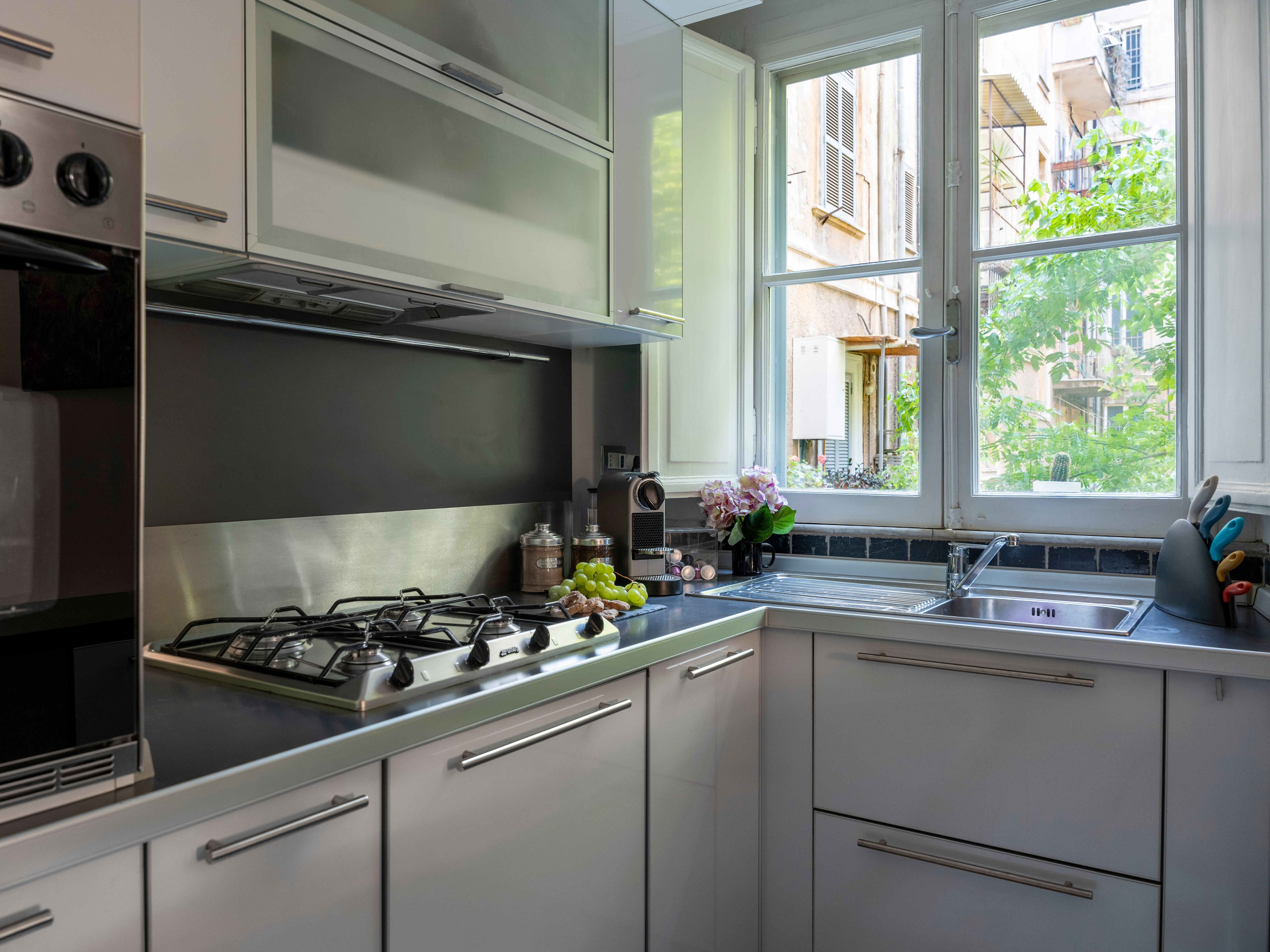 Located on the second floor of an Umbertine period building, this homestay is brimming with character inside and out. The Vatican, Piazza del Popolo, Castel Sant'Angelo, and many more attractions are all within walking distance, not to mention the impressive number of authentic eateries, charming shopping streets, and grand plazas just a stone's throw away. That being said, with its very own private terrace acting as an oasis amid the flurry of a vibrant city, you could just as easily spend your evenings reading under the stars or dining alfresco.