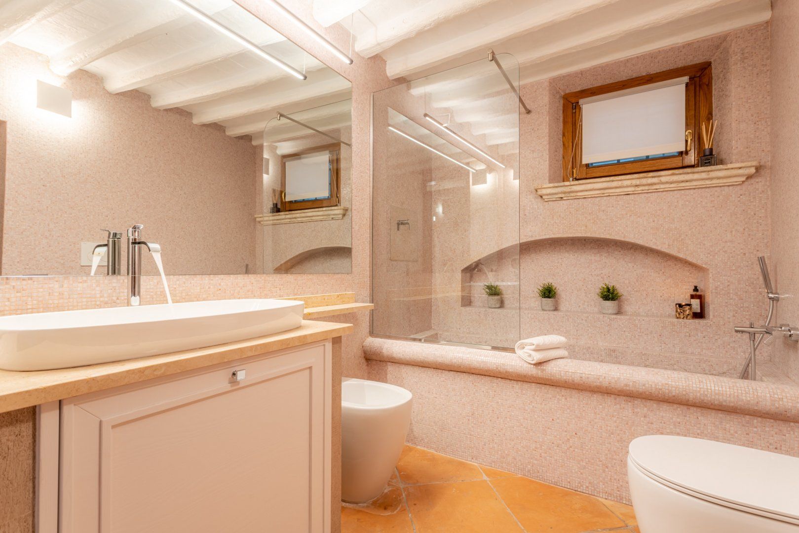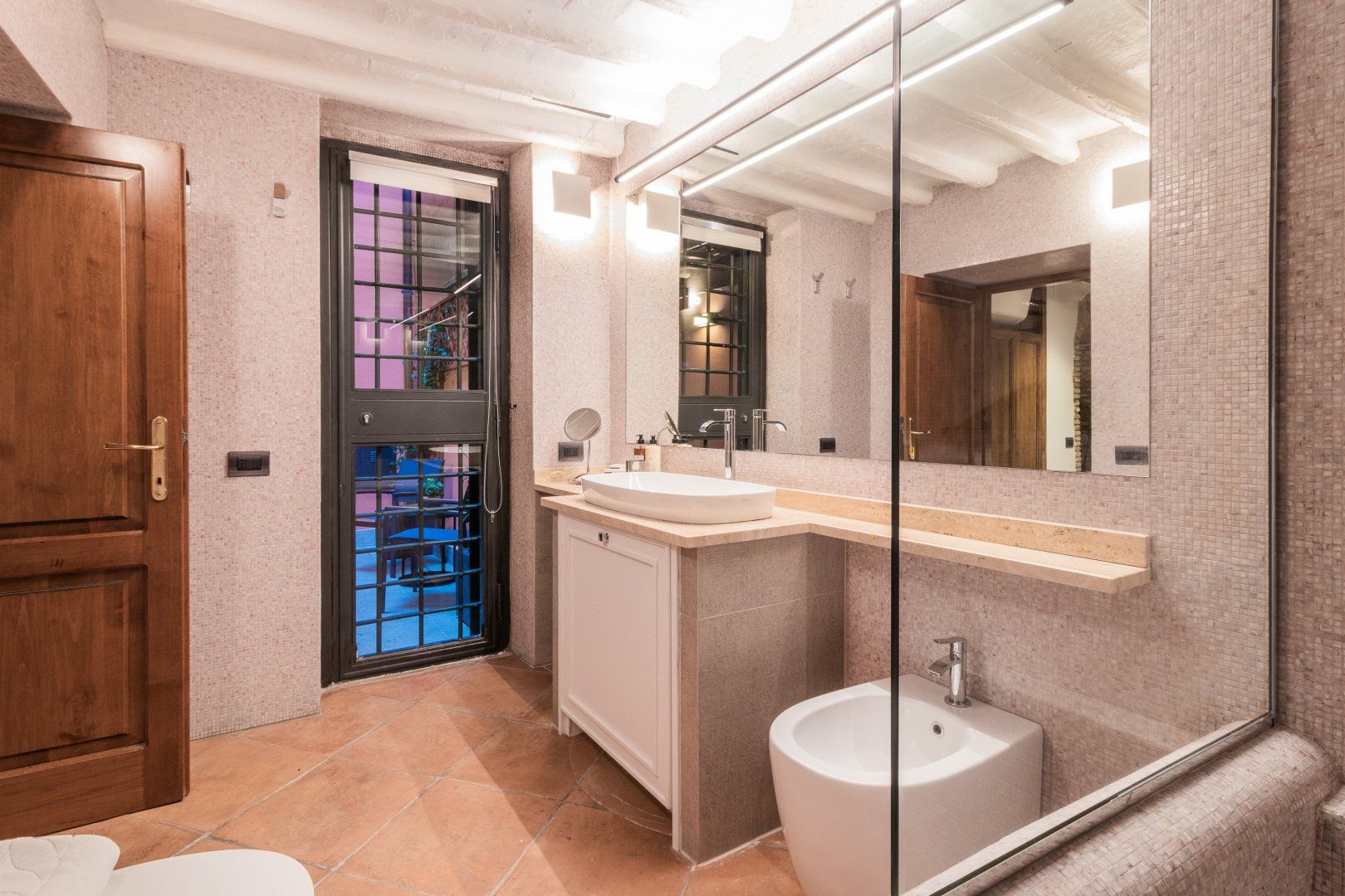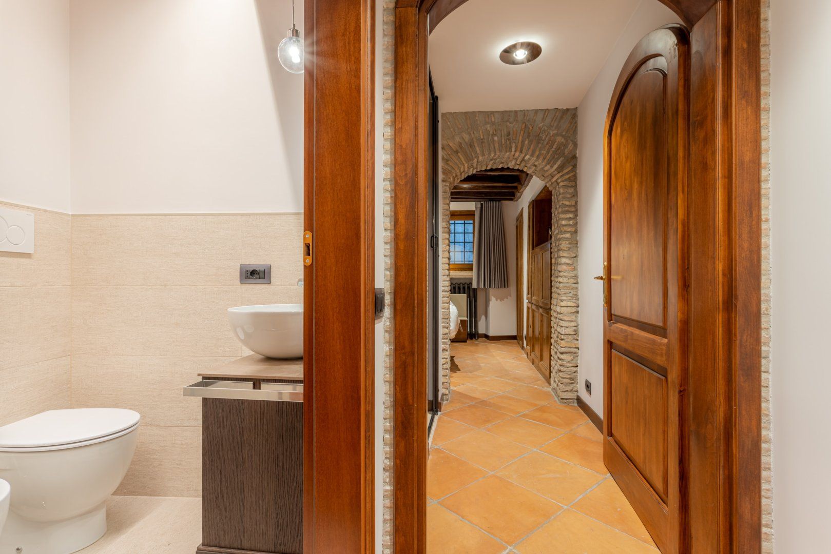 Located on a picturesque cobbled street just off of Via dei Coronari – one of Rome’s most historic streets – this quiet apartment is full of character and history. From its beamed ceilings to the original carved stone cubby window in the master bedroom, the building’s past blends beautifully with modern comforts to create a comfortable, stylish stay. We love the main room’s frescoed lilies and the stone arches above the doorways. Our favourite feature, however, is the private terrace where a table and chairs invite alfresco breakfasts over espressos and sunset spritzes before a night out in one of the countless trattorias in your Navona neighbourhood. Speaking of your surroundings, you couldn’t be better placed to visit some of Rome’s most famous sights, including the Piazza Navona (a four-minute walk), the Pantheon (a ten-minute walk) and the Trevi Fountain (a fifteen-minute stroll from your door). The Vatican too is within easy reach, just a twenty-minute walk away across the nearby Tiber River.