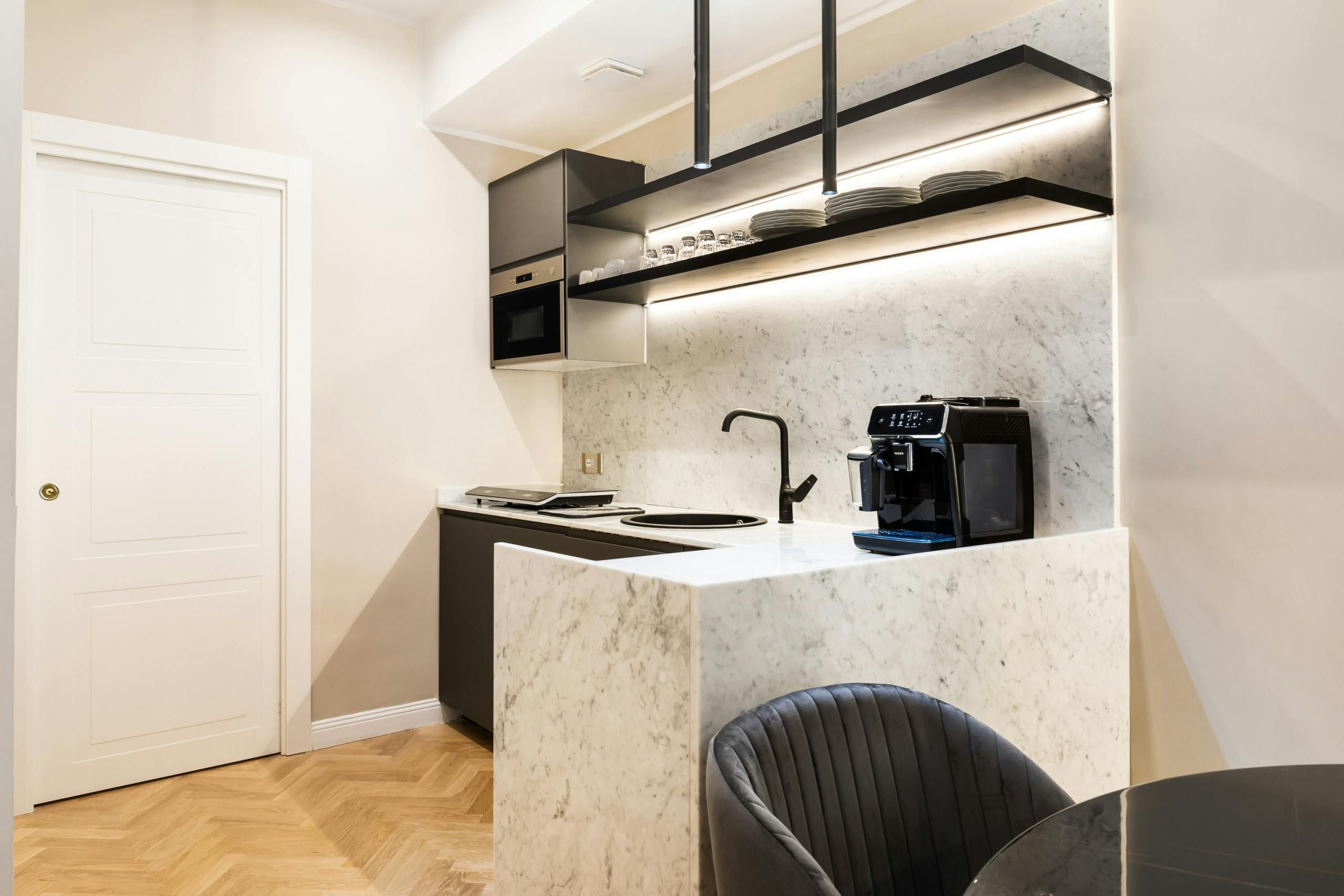 This attractively decorated apartment is the perfect place for a Roman holiday. Located in the heart of historic Rome, it’s just a five-minute walk from Piazza di Spagna and the luxury designer brands of Via de’ Condotti, and a short stroll from the Trevi Fountain. The apartment is stylish and comfortable, with a sofa bed in the living space for two guests – for longer stays or for those hoping for a bit more room, we’d stick to a maximum guest count of two.