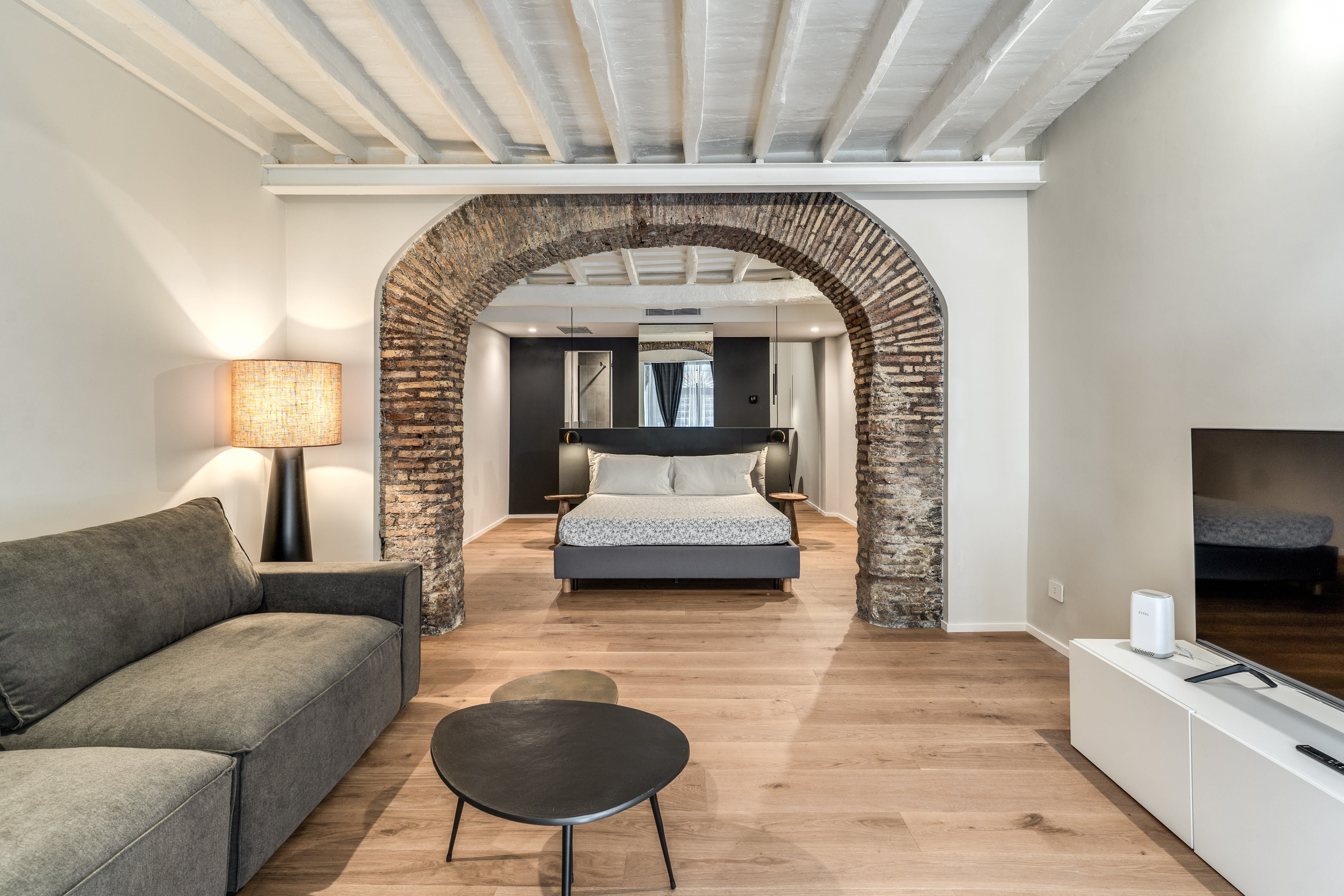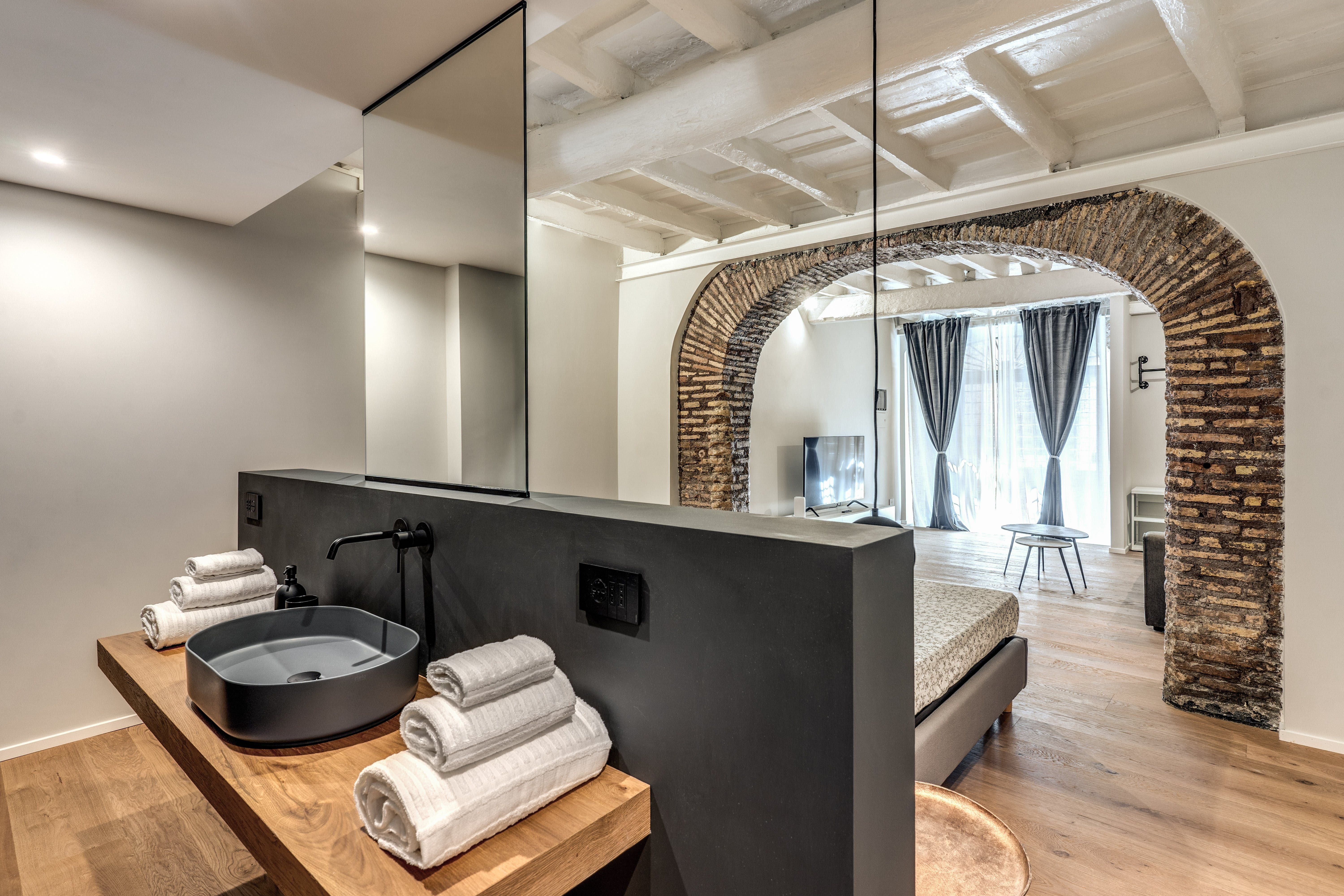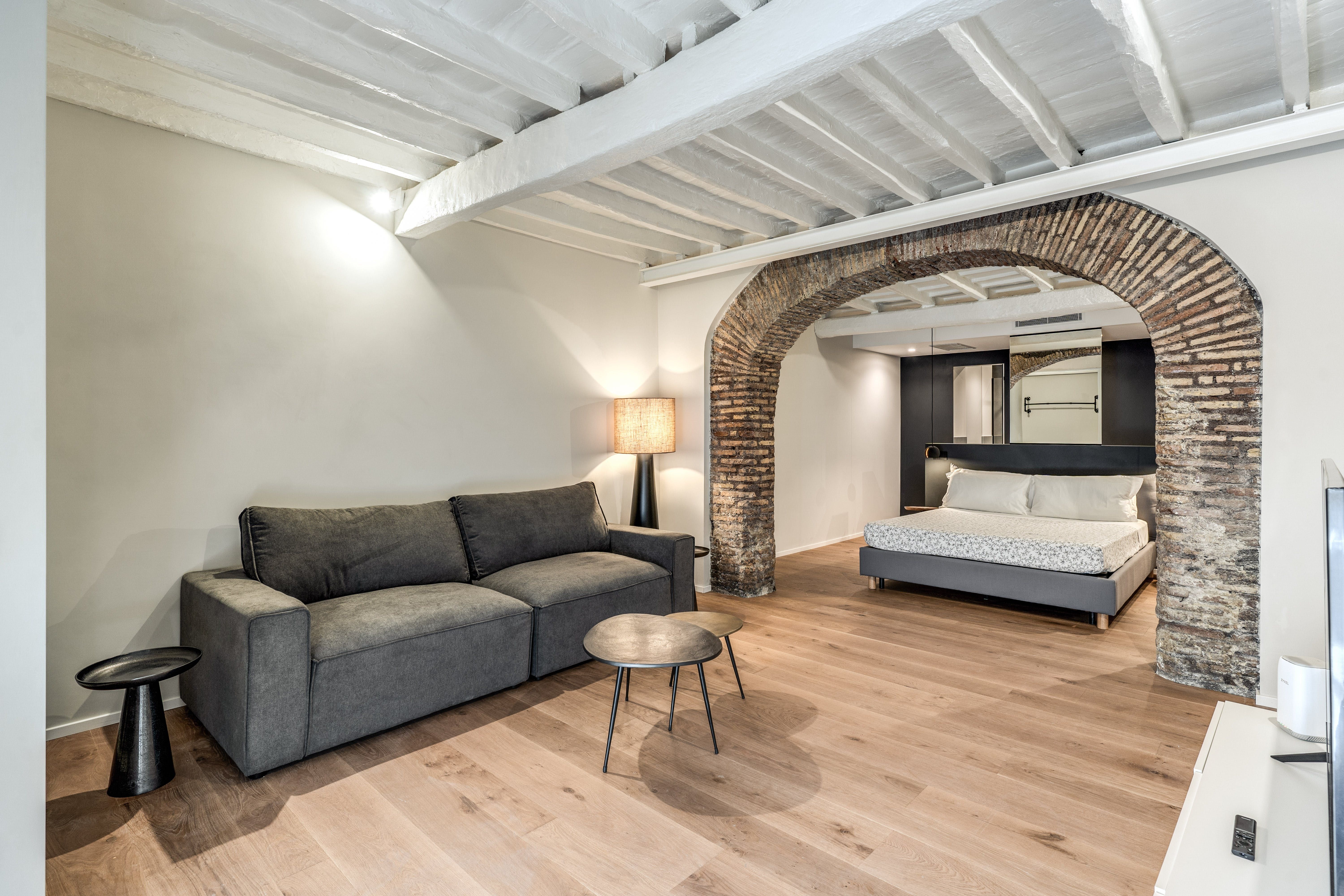 We love the setting of this studio home at the end of a quiet and typically Roman alley in one of the city's most exclusive areas. You'll be just a short stroll from the iconic Spanish Steps, as well as an array of boutiques, bars, and restaurants. So that's the location β let's look at the apartment. Refurbished by a local designer, they've retained the character features and combined them with modern comforts such as the stylish bathroom. Itβs no wonder this home is a popular choice.