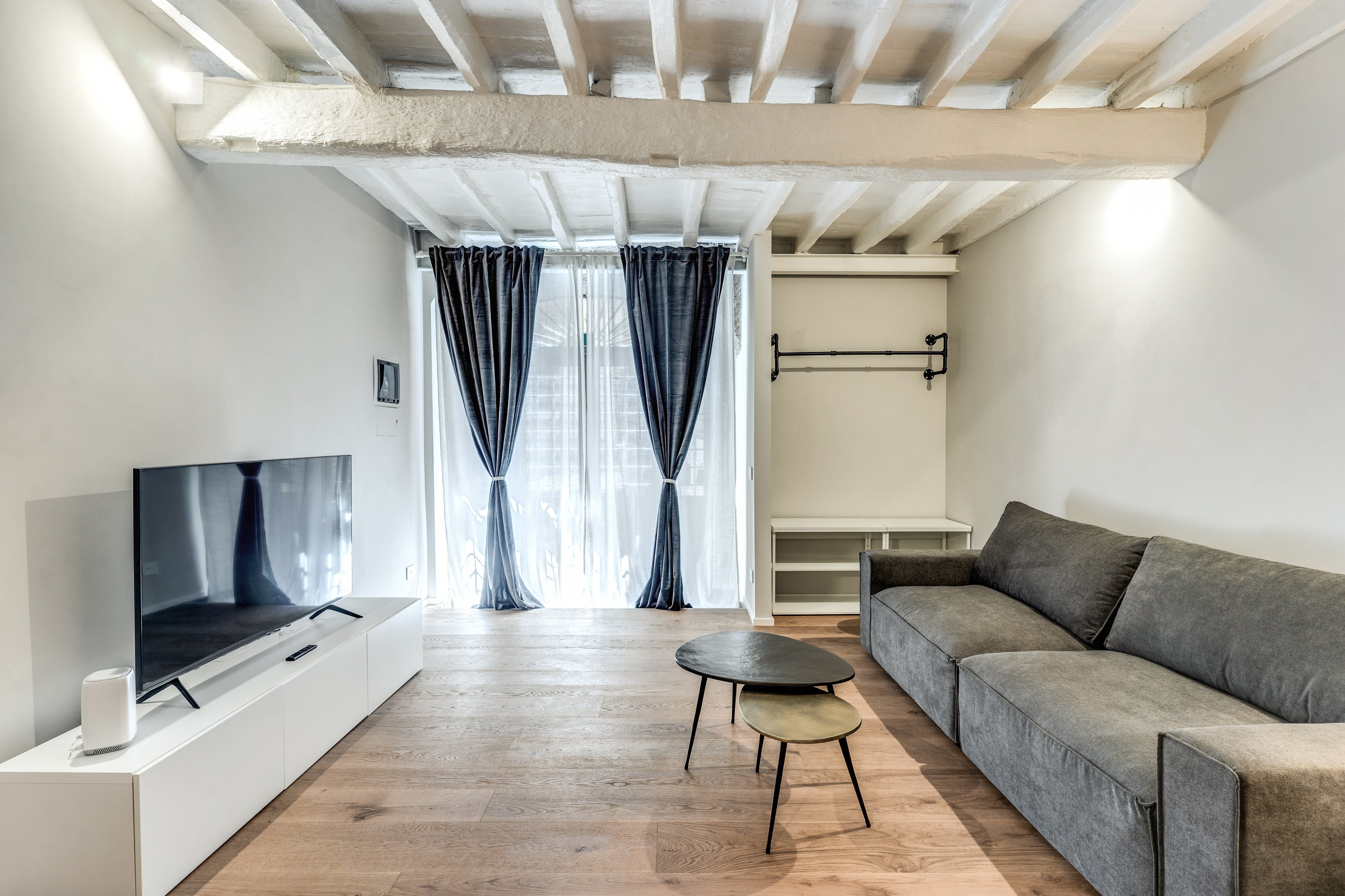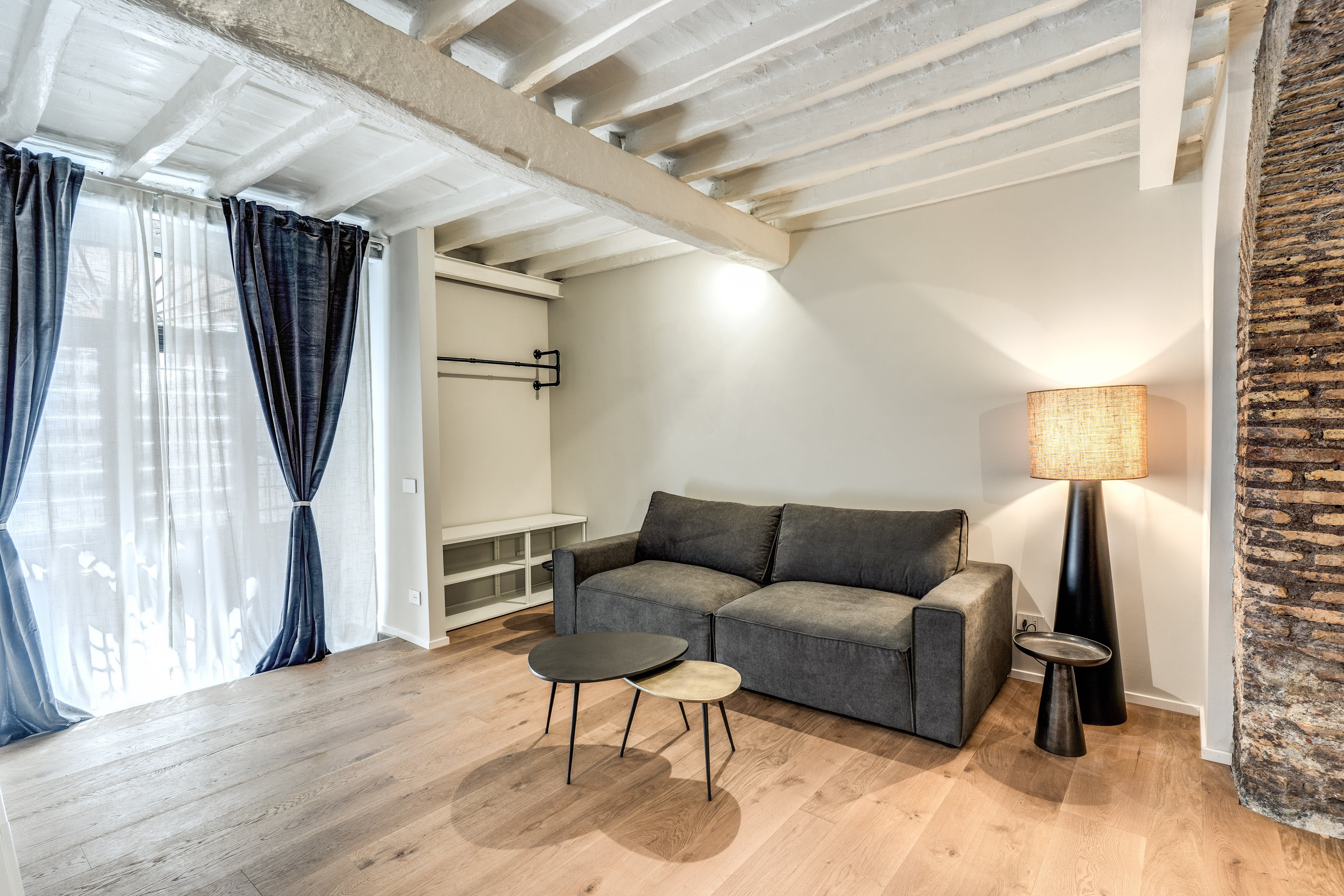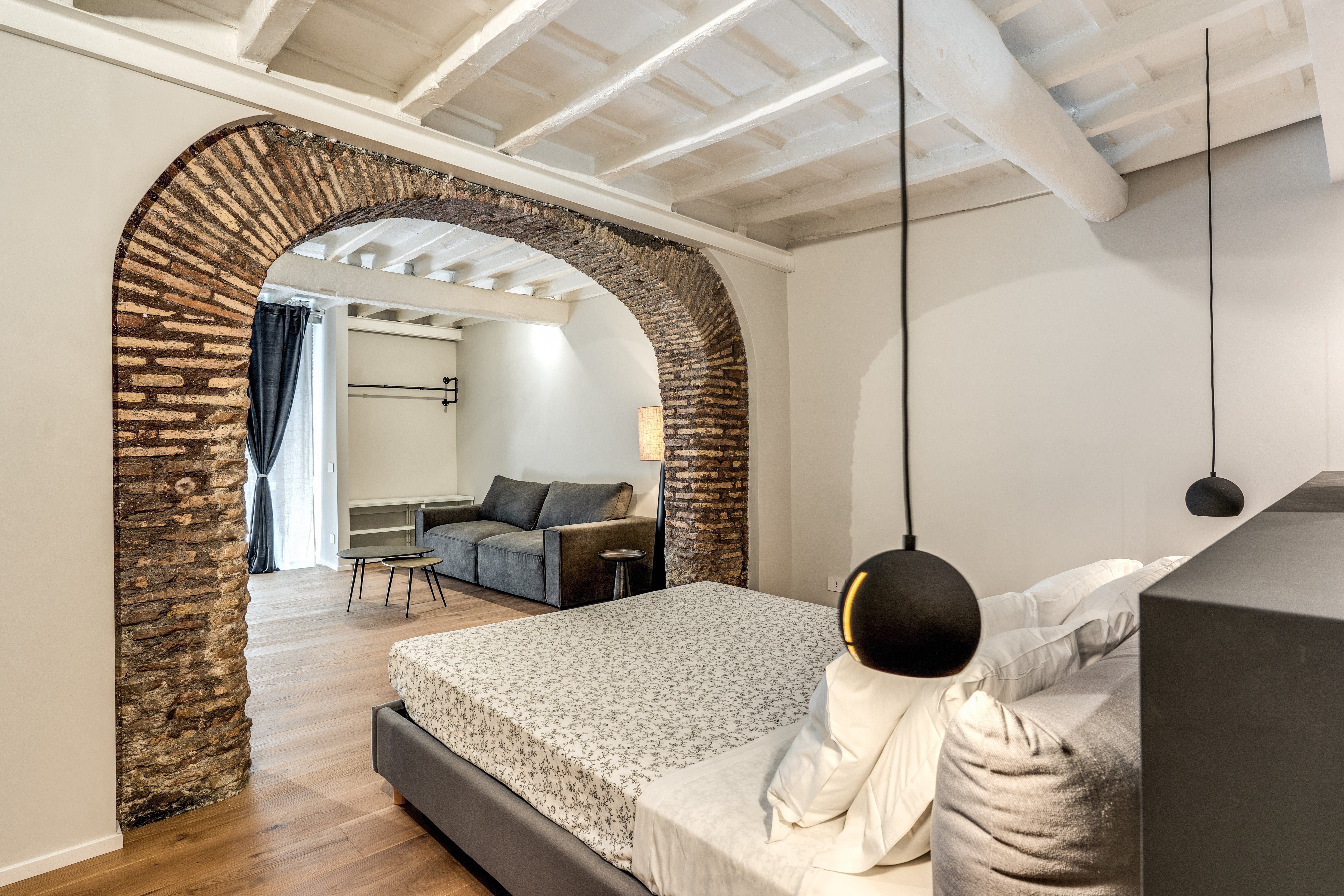 We love the setting of this studio home at the end of a quiet and typically Roman alley in one of the city's most exclusive areas. You'll be just a short stroll from the iconic Spanish Steps, as well as an array of boutiques, bars, and restaurants. So that's the location β let's look at the apartment. Refurbished by a local designer, they've retained the character features and combined them with modern comforts such as the stylish bathroom. Itβs no wonder this home is a popular choice.