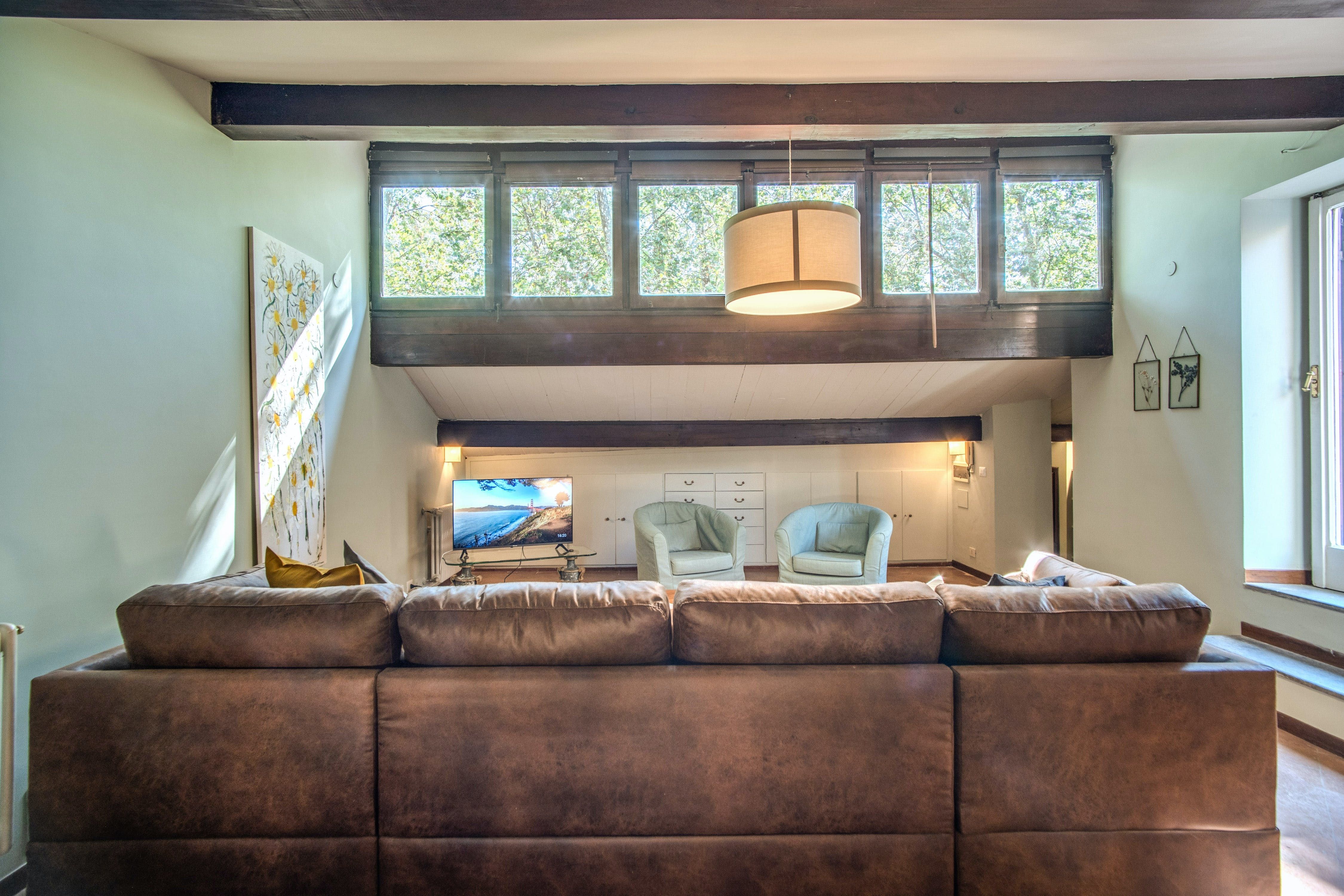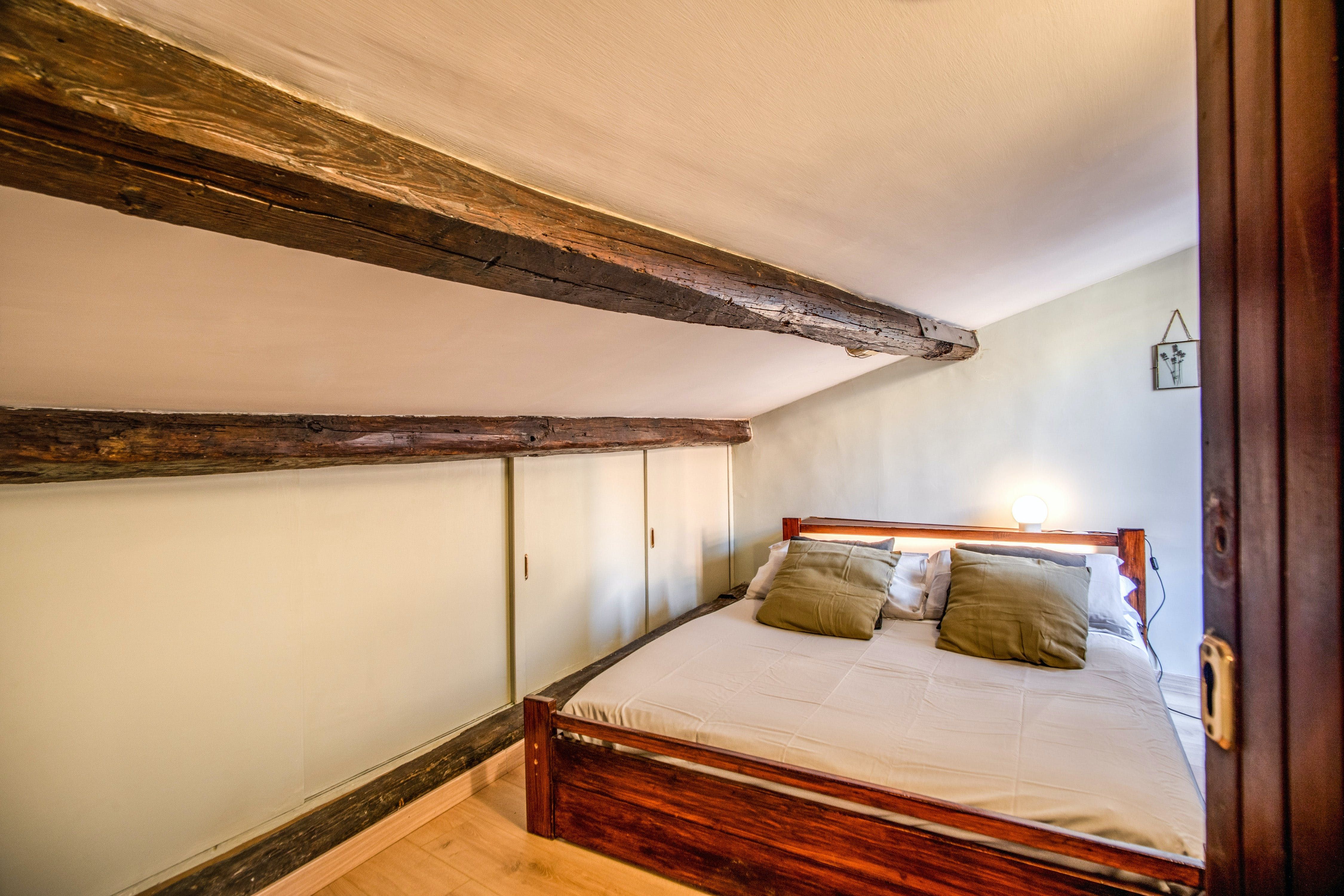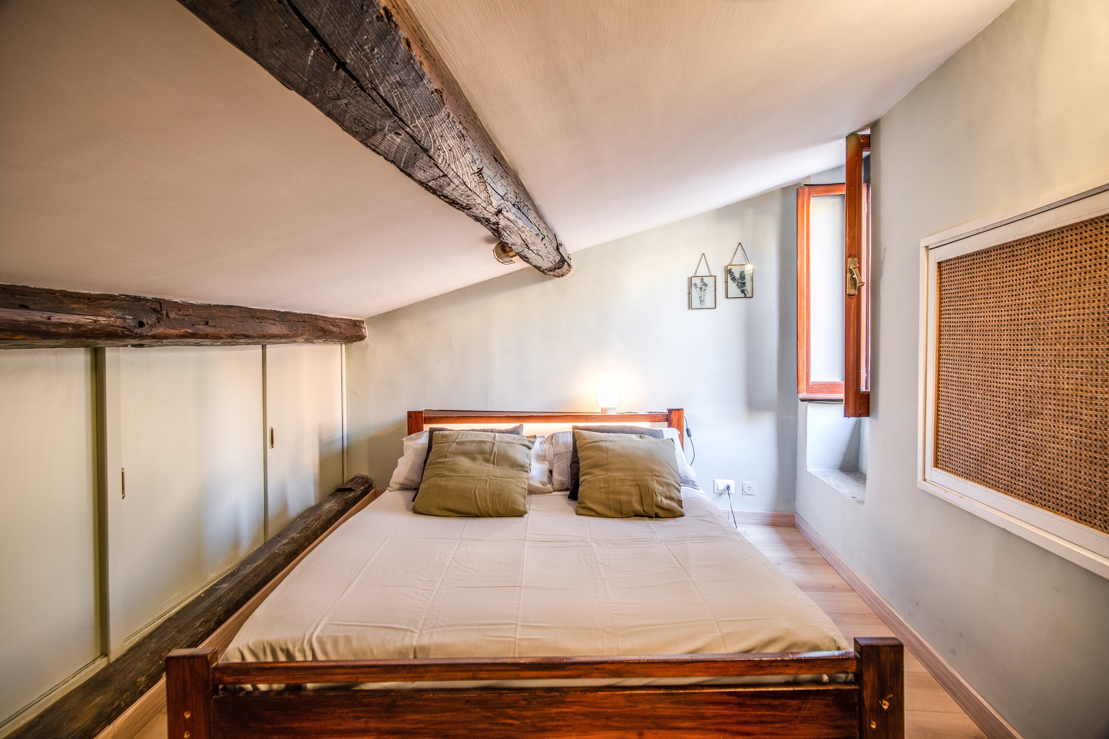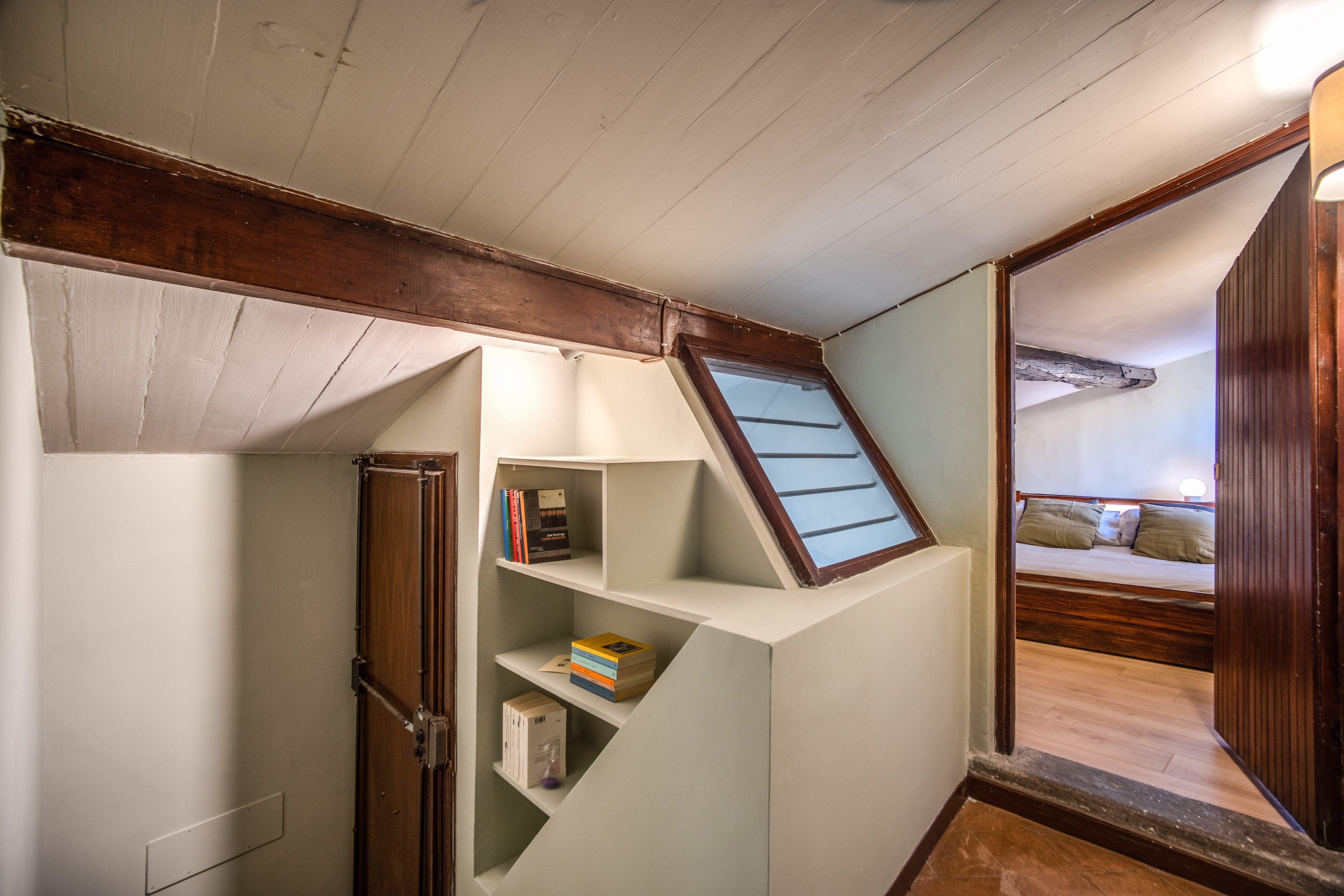 Home truths: *There’s no lift at this home, which is the attic of the building on the third floor. There are also stairs between the floors of the apartment, so you’ll need to be able to climb stairs to stay here.