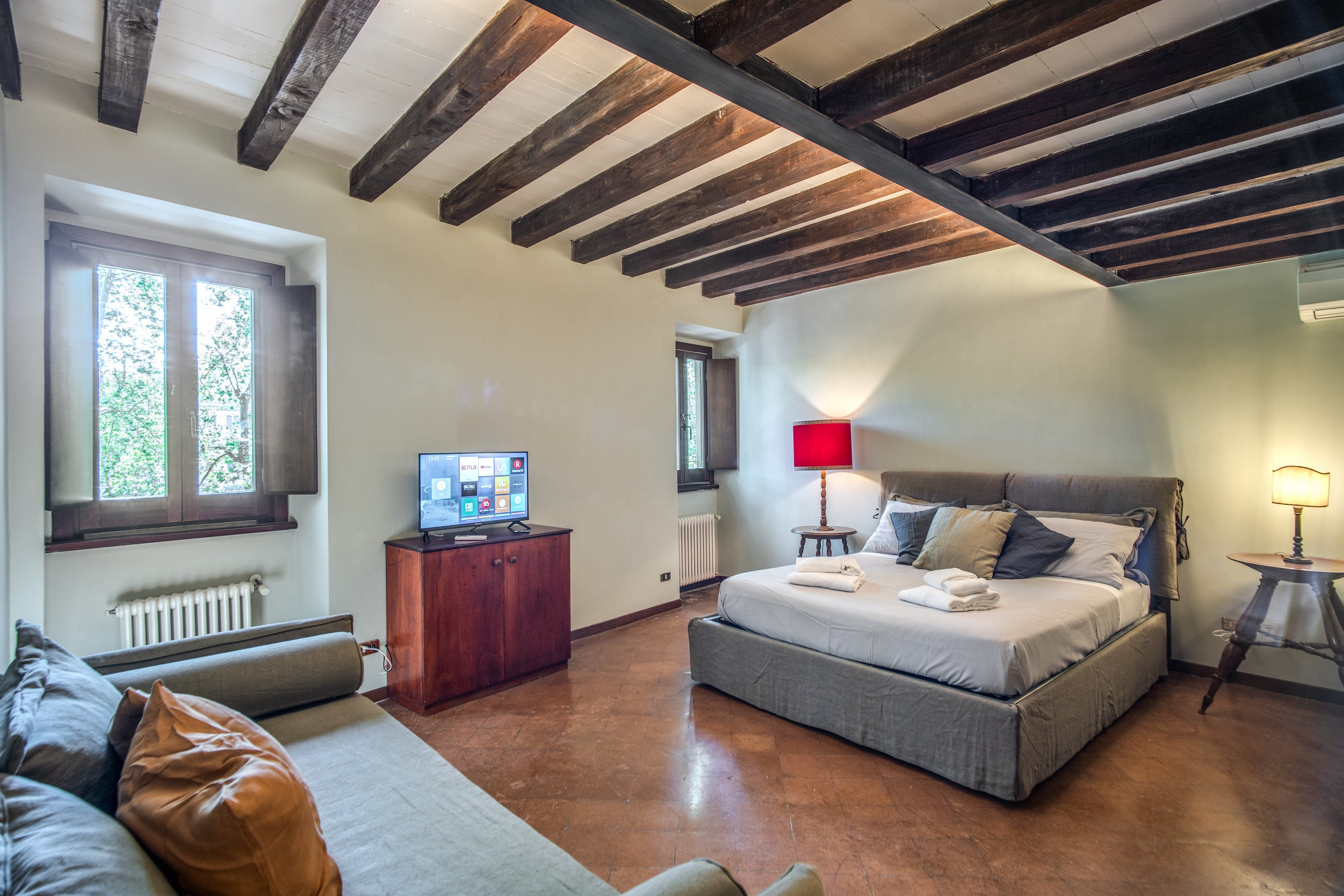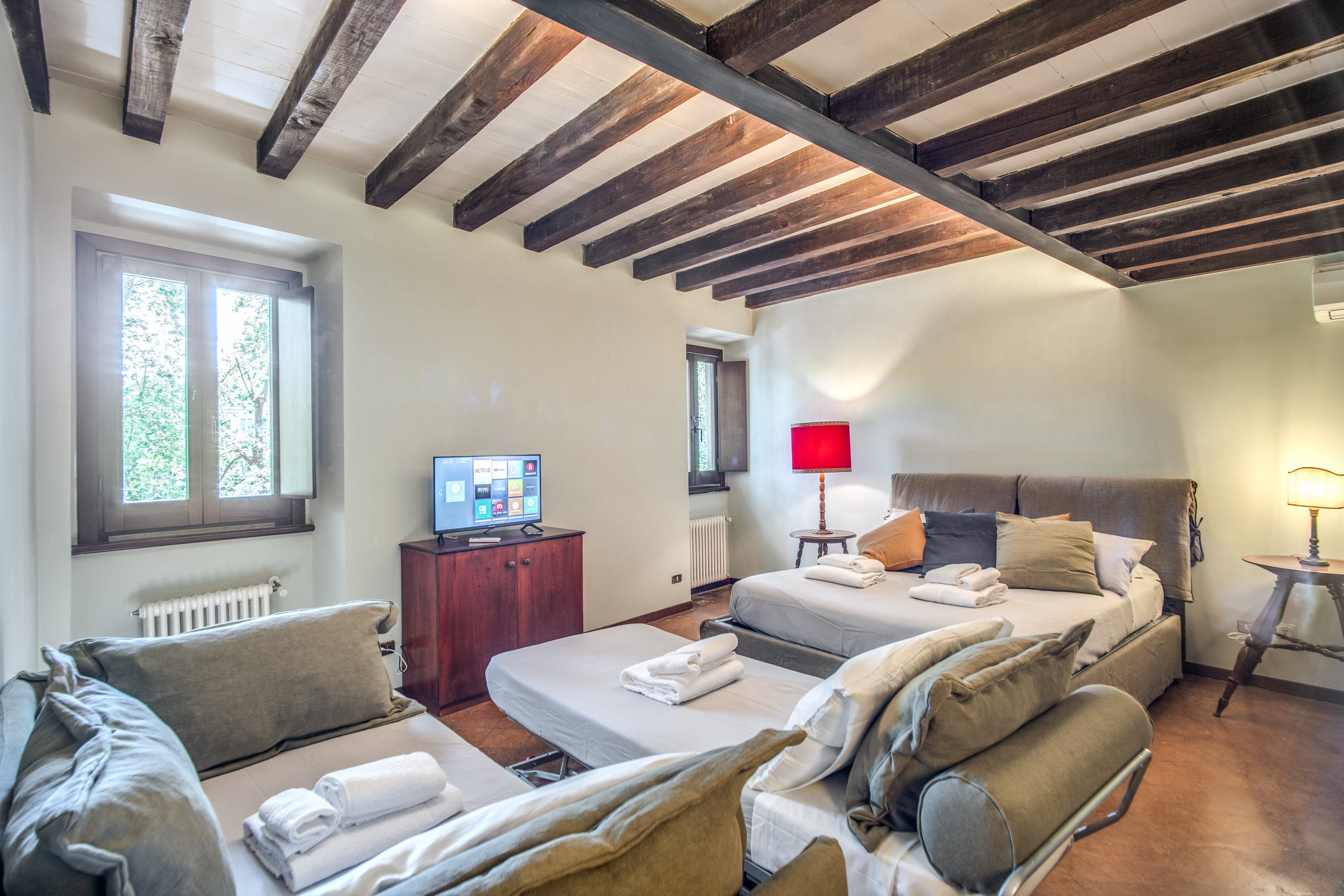 A quirky base in Rome, this home is the attic of a building, so sits amid Rome’s rooftops. This means there are a lot of stairs to climb – it’s not going to be suitable for everyone and isn’t recommended for children under the age of six. But if you can manage the stairs, you’re rewarded with a charming home-from-home. The apartment even boasts a private terrace – the perfect spot for alfresco dining – and is next to a chapel designed by Raphael in the 1500s. You’ll share your outside space with the original bell tower. Seeing more of Rome’s architecture and history is a breeze, as you’re within walking distance of all the main attractions, including Campo de’ Fiori – just a five-minute stroll.