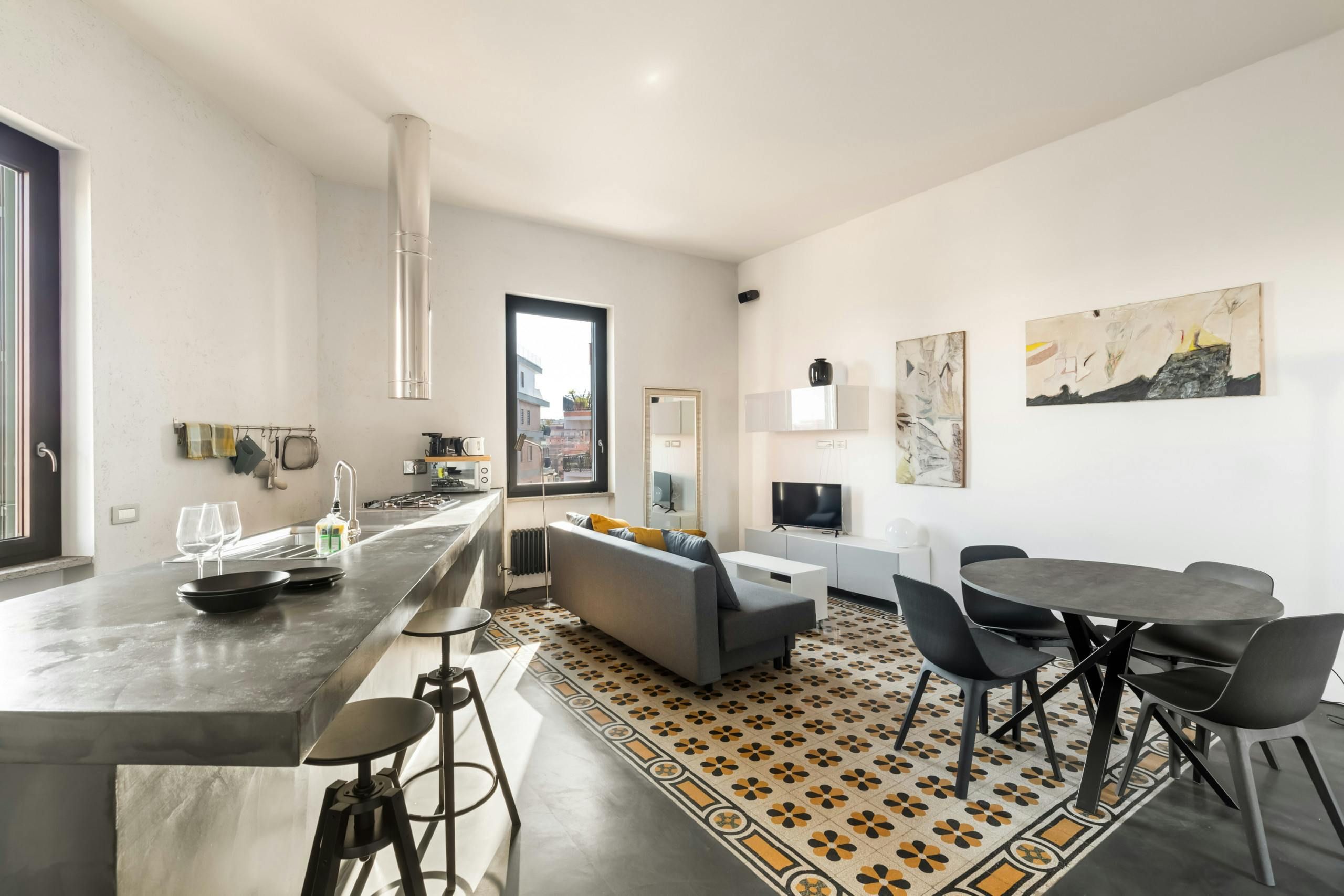 Situated in Monteverde, this apartment boasts a charming rooftop terrace with plenty of space for you to relax and enjoy alfresco meals. From here, it's a short walk or bus ride to the quirky Trastevere district, with a great selection of pubs, eateries and shops, plus a well-connected Metro station. The home itself is perfectly practical for two or three guests – though the third person will be sleeping on a sofa bed. It's also worth noting that this home is located on the third floor without a lift, so we recommend it for those who can easily manage stairs.