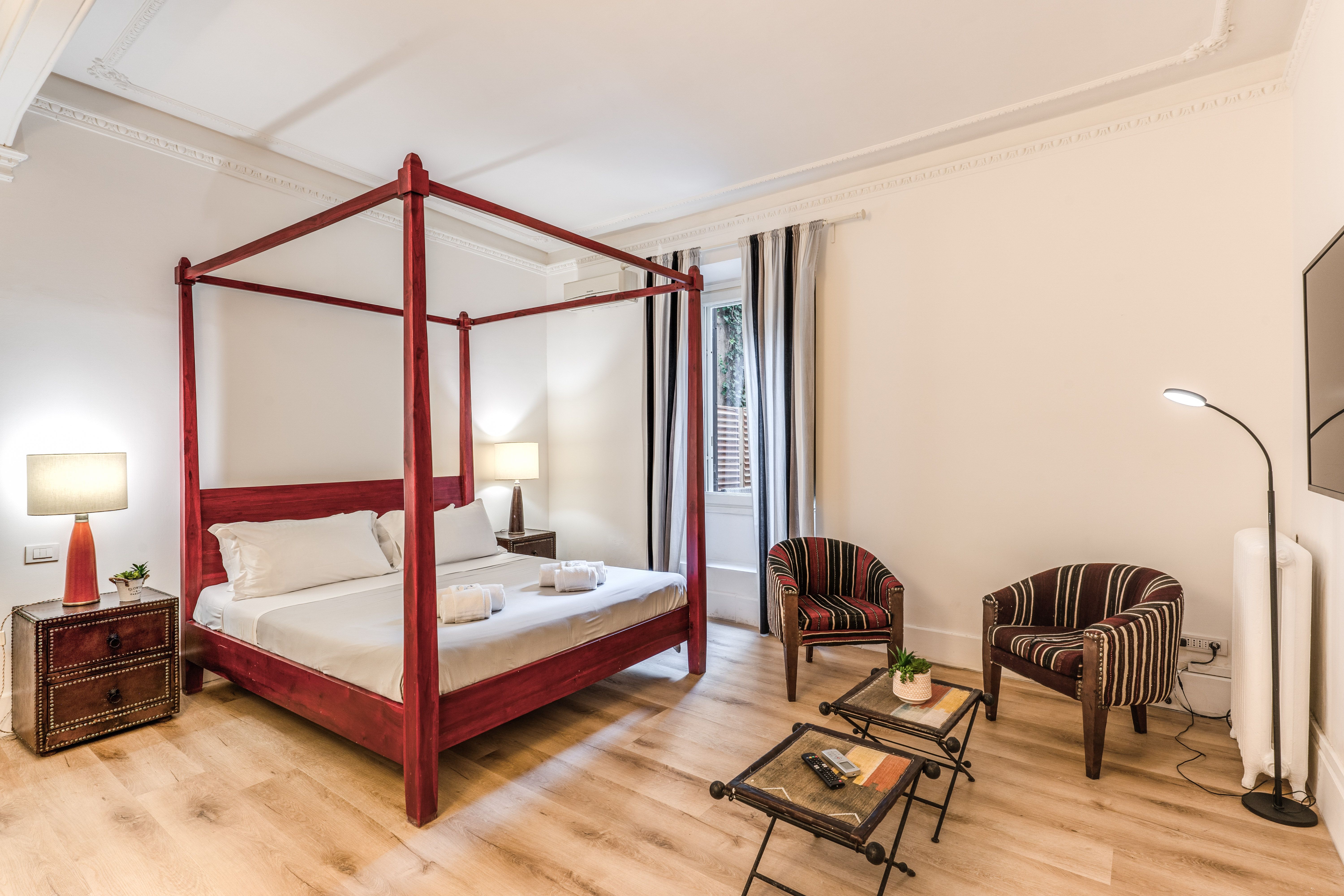This apartment is perfectly located for exploring Rome. It’s just a five-minute stroll from Piazza del Popolo, and it's surrounded by local restaurants and bars. Other major attractions within walking distance include Villa Borghese, the Spanish Steps and the Trevi Fountain. Another highlight is the private garden here – a great place to relax after a busy day of sightseeing. The main bedroom also has a four-poster bed, a separate dressing room and an en-suite. Book this home to experience all that the vibrant culture of Rome has to offer.