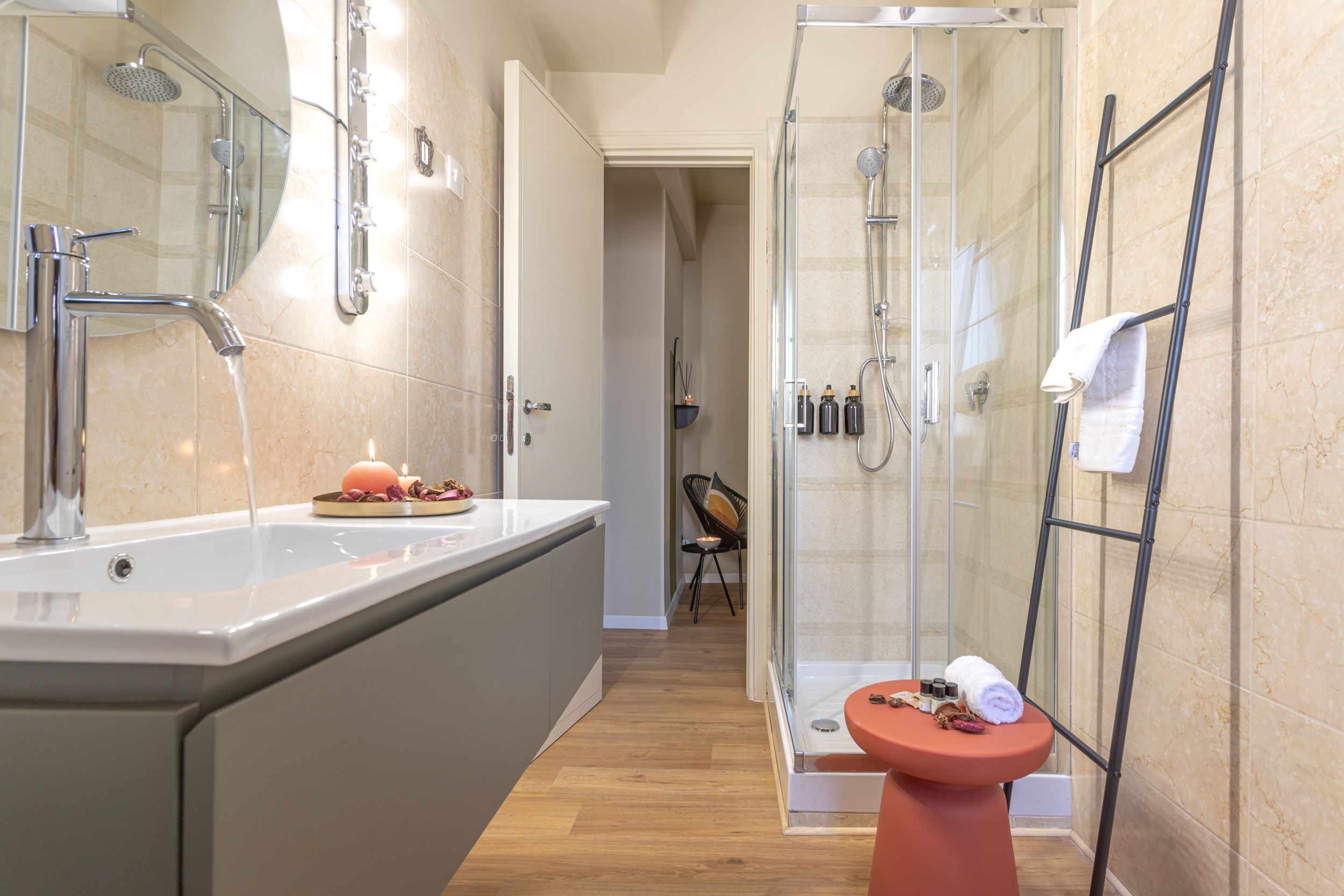 Tucked away in the heart of the Tuscolano neighbourhood, this home is an ideal base for a couple’s getaway in Rome. That said, it can accommodate up to four people, courtesy of the sofa bed in the living room, so it’s a good choice for small families or a group of friends, too. We love the blend of modern and vintage styles, and the cosy balcony is the cherry on the cake – just the spot for morning coffees or evening aperitifs. Locally, you’ll find authentic Italian eateries, and the subway is just 50 metres away, making trips across the city a breeze.