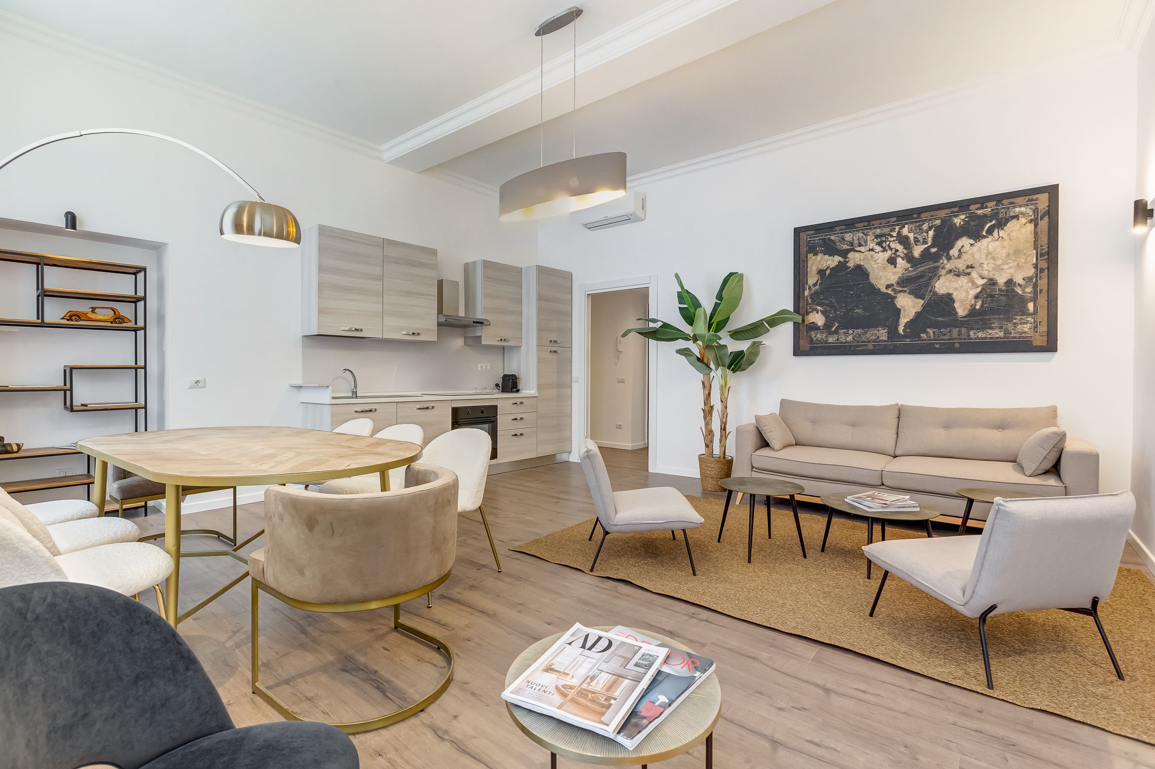A ten-minute walk from the Vatican and moments from Ottaviano metro station, this apartment puts Rome at your fingertips. It's an excellent base for sightseeing, though if you'd prefer a more authentic stay, you'll find local eateries and independent shops in nearby Prati. There's plenty of space here for a group to stretch out. The living area is contemporary and cool, with a compact kitchen ideal for rustling up antipasti. All three bedrooms are stylish, though one has an additional single bed best suited to little ones. You'll also find desks in all the bedrooms – perfect for digital nomads.