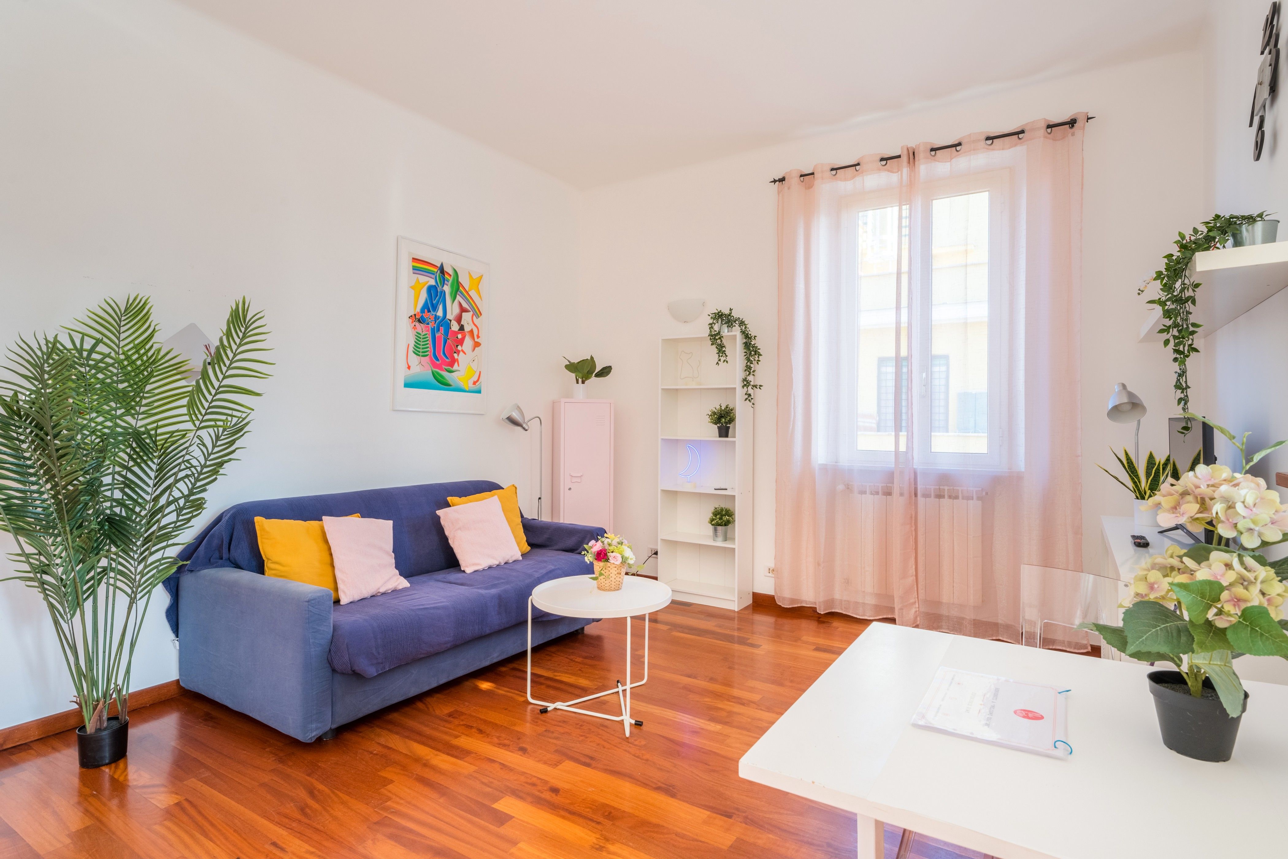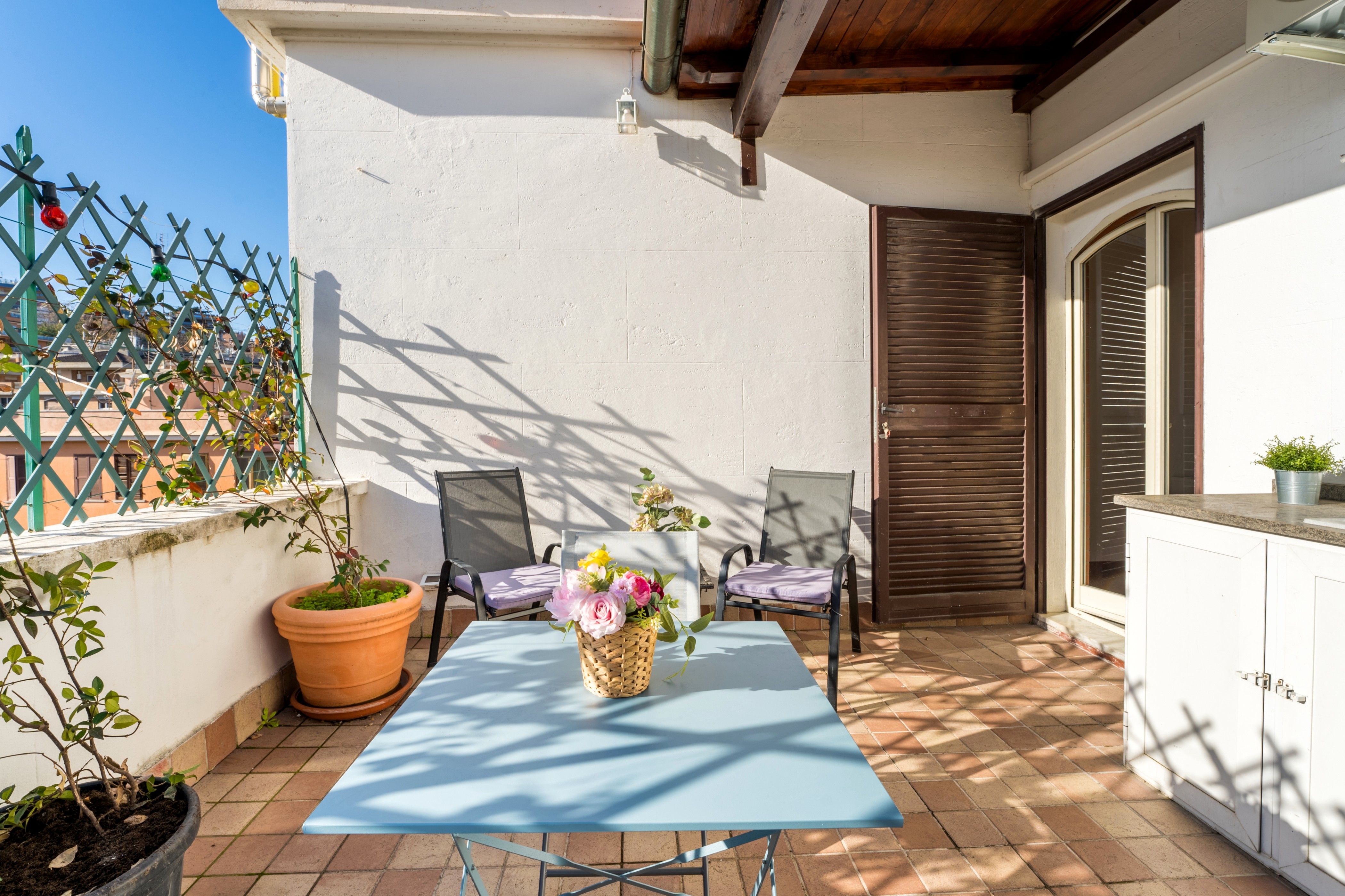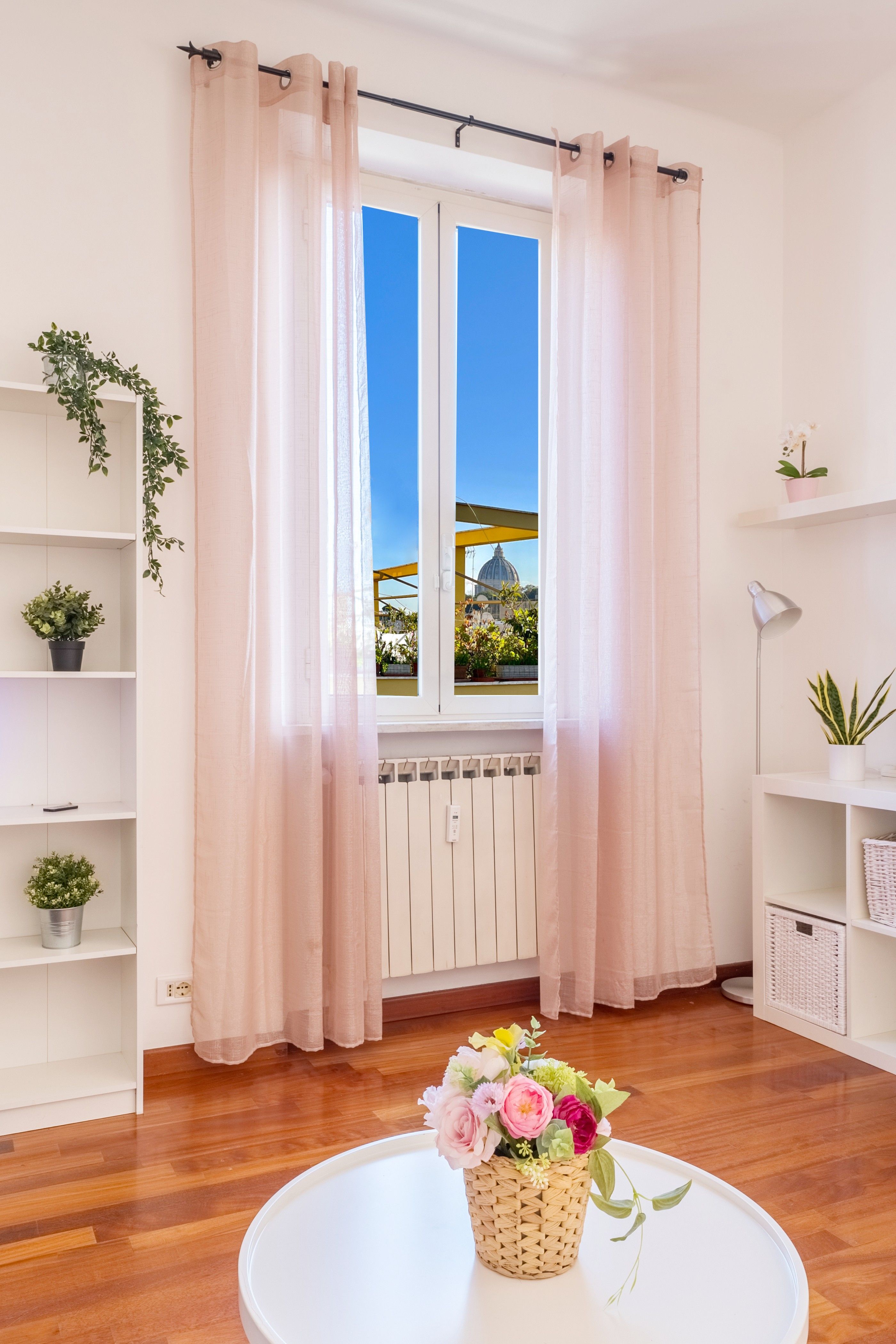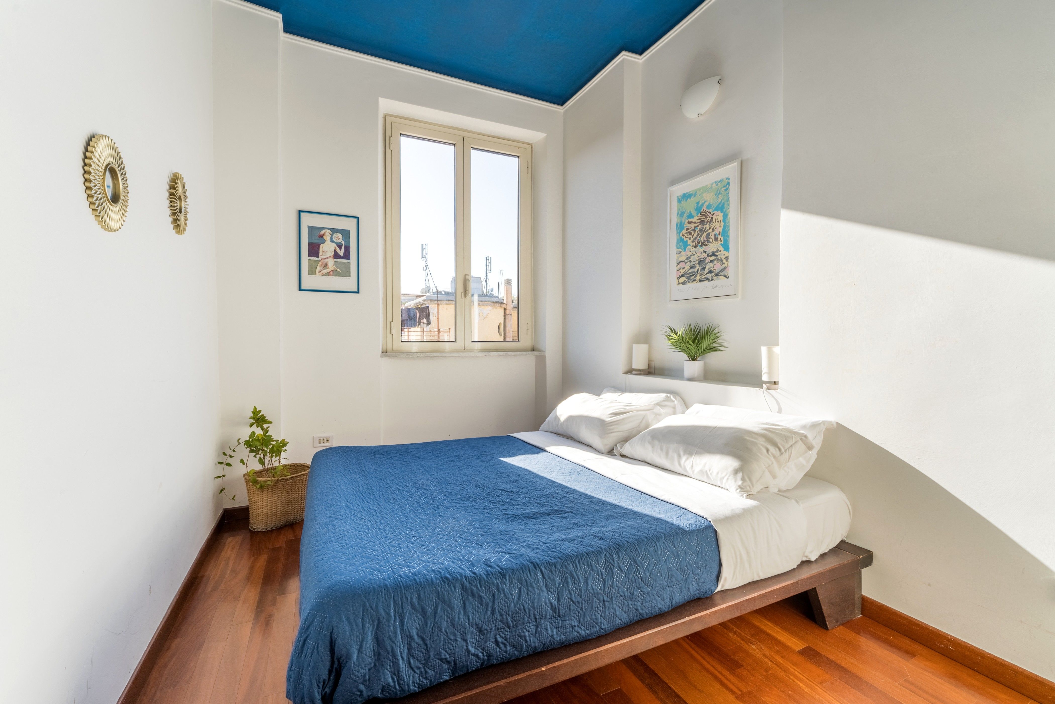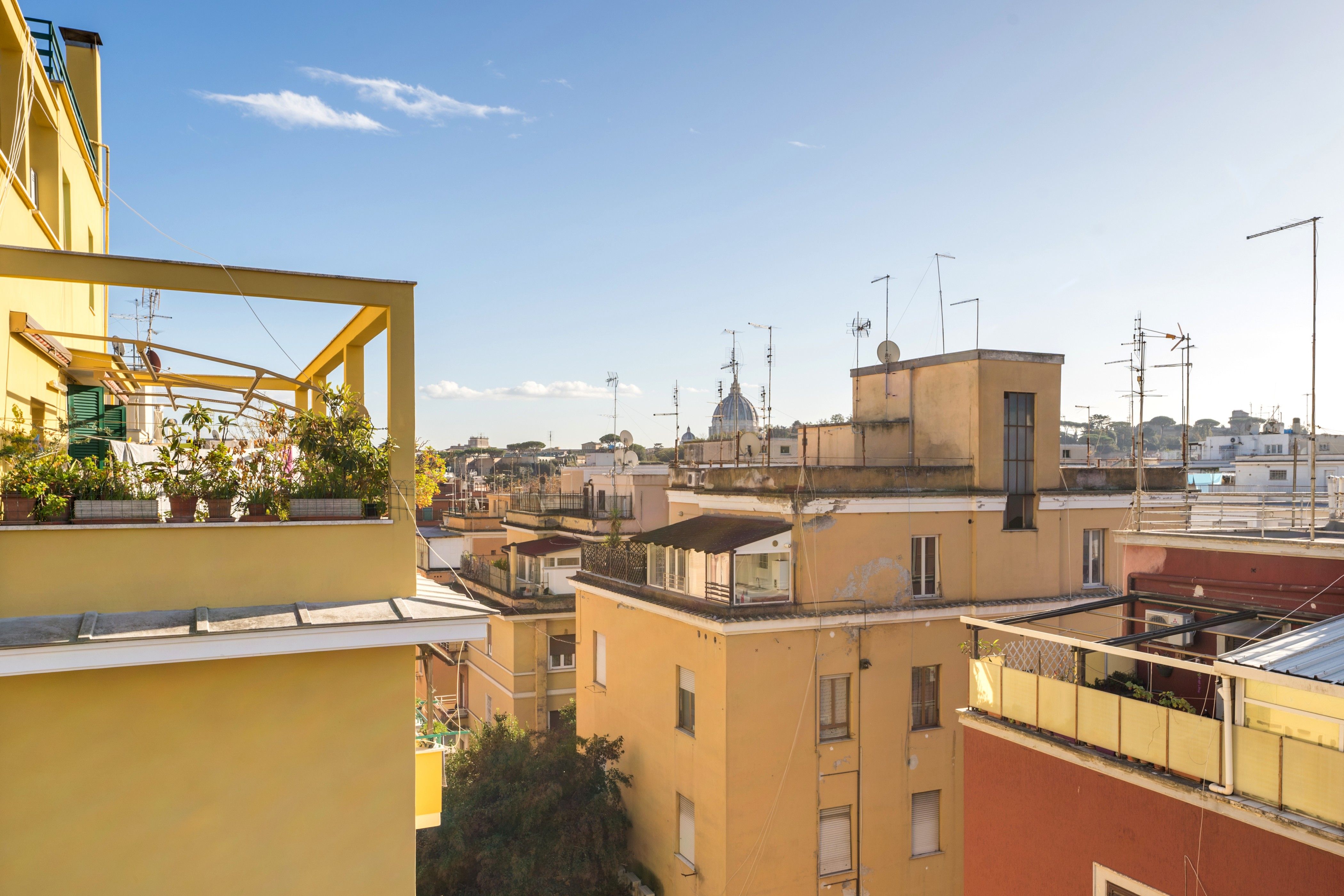 A leisurely walk will take you to the Vatican City with its gardens and museums. You’ll find local markets, cafes and restaurants in the neighbourhood too. The apartment is on the fifth floor with no lift. But the reward for climbing all those stairs is that there’s a private terrace with its wonderful views over St. Peter's Basilica. You can enjoy the vistas from this home’s living area too (this room also sleeps guests three and four on a sofa bed). This is a perfect base, offering a blend of comfort and stunning views.