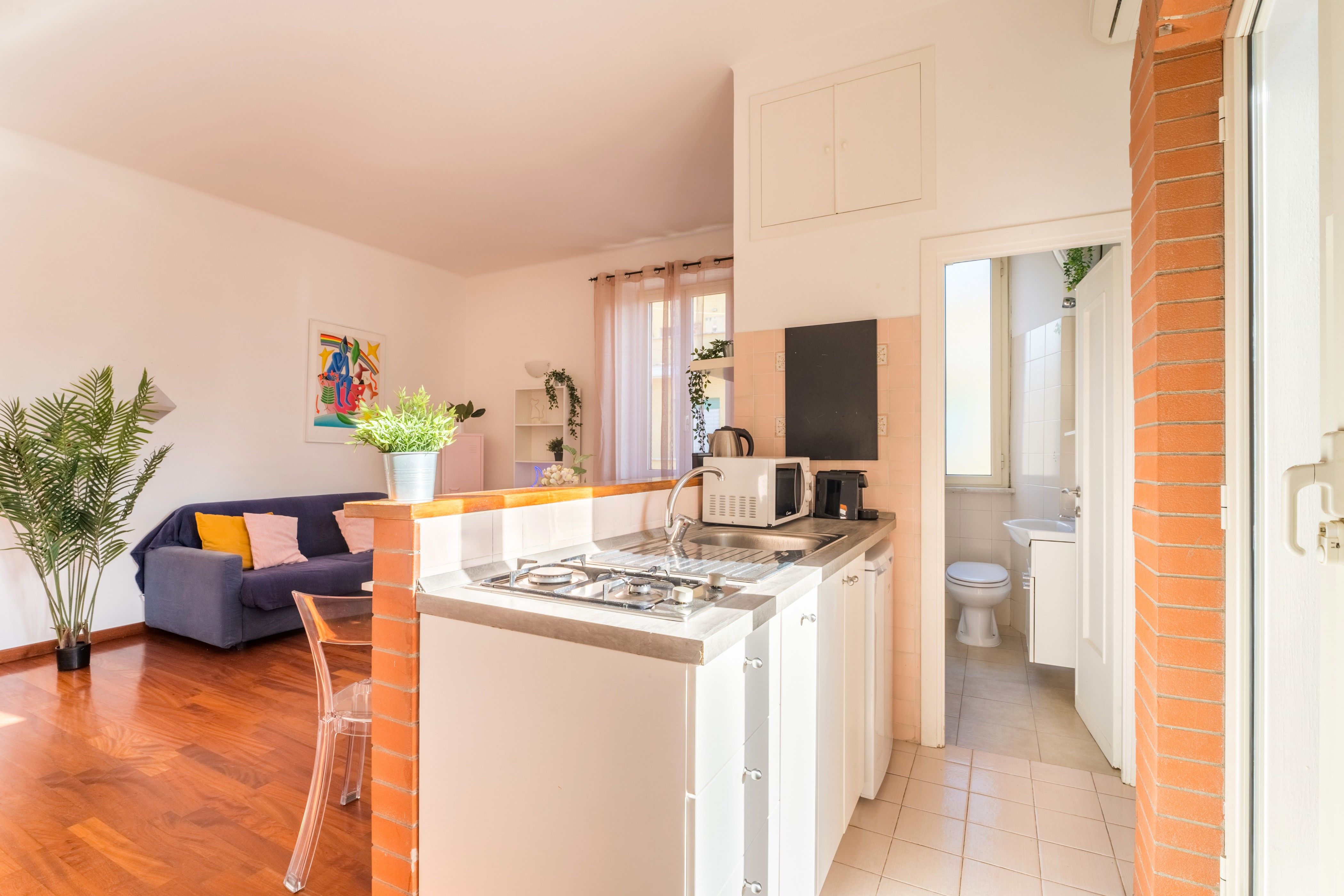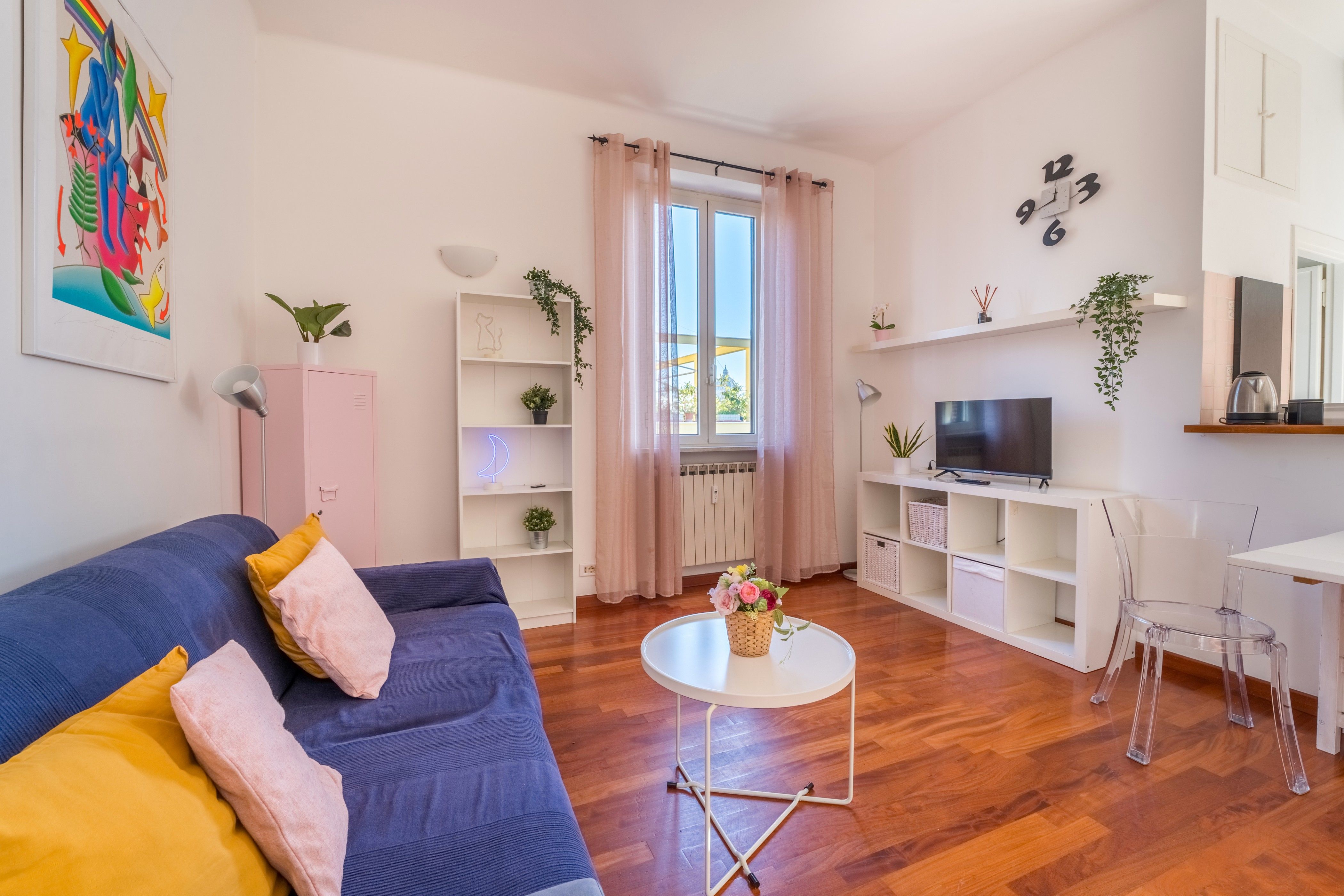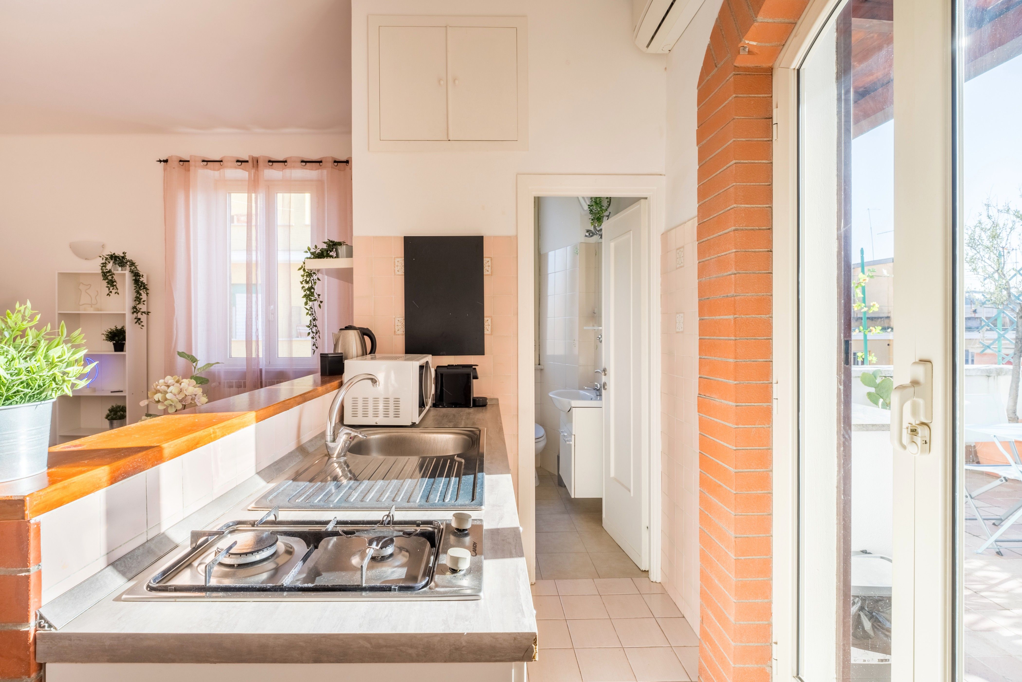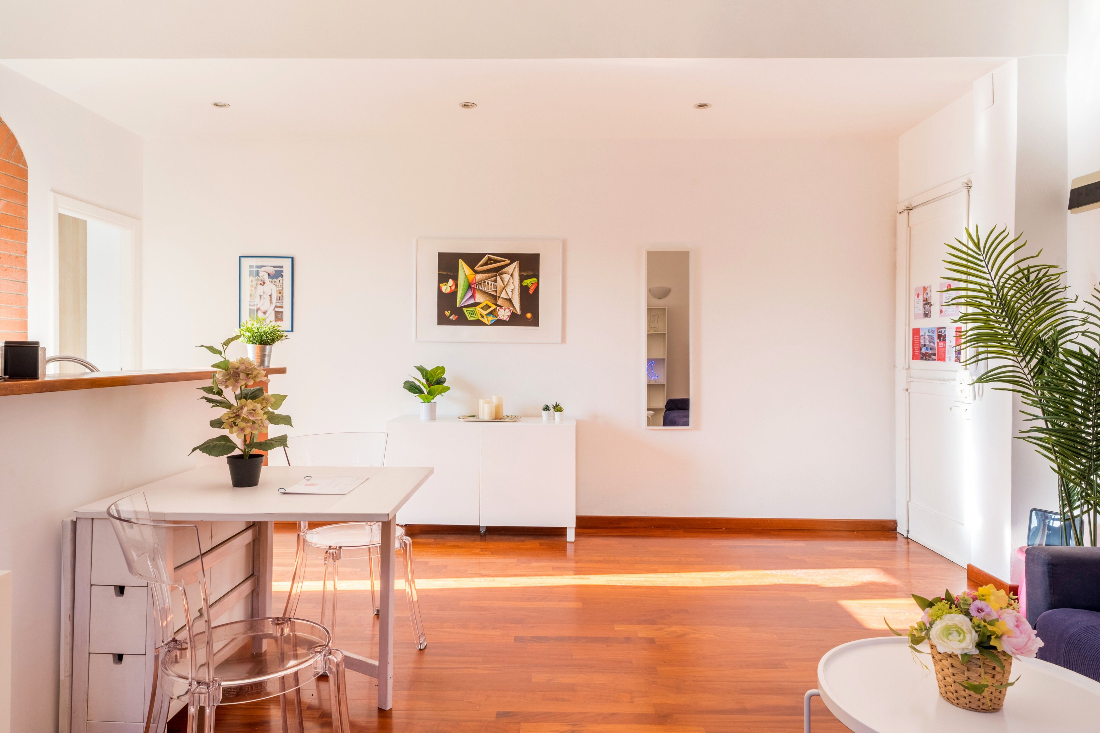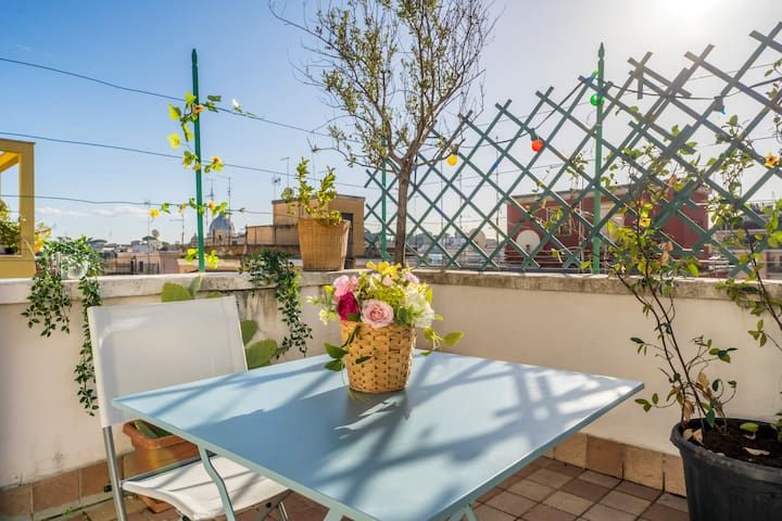 A leisurely walk will take you to the Vatican City with its gardens and museums. You’ll find local markets, cafes and restaurants in the neighbourhood too. The apartment is on the fifth floor with no lift. But the reward for climbing all those stairs is that there’s a private terrace with its wonderful views over St. Peter's Basilica. You can enjoy the vistas from this home’s living area too (this room also sleeps guests three and four on a sofa bed). This is a perfect base, offering a blend of comfort and stunning views.