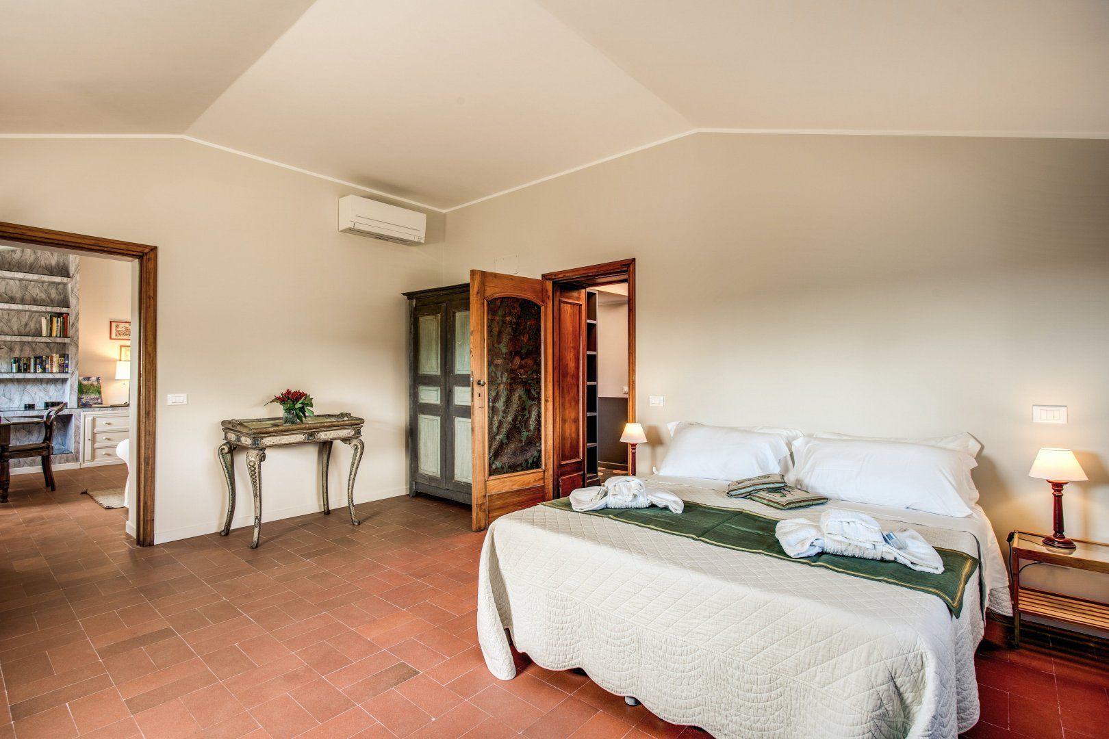 In the evening, what could be a better way to enjoy your delicious Italian pasta and pizza than with an alfresco meal on the terrace as you admire the amazing views afforded to you? Sip great Italian wine as the sunsets on this view and the vista turns to nighttime before you finally retire inside.