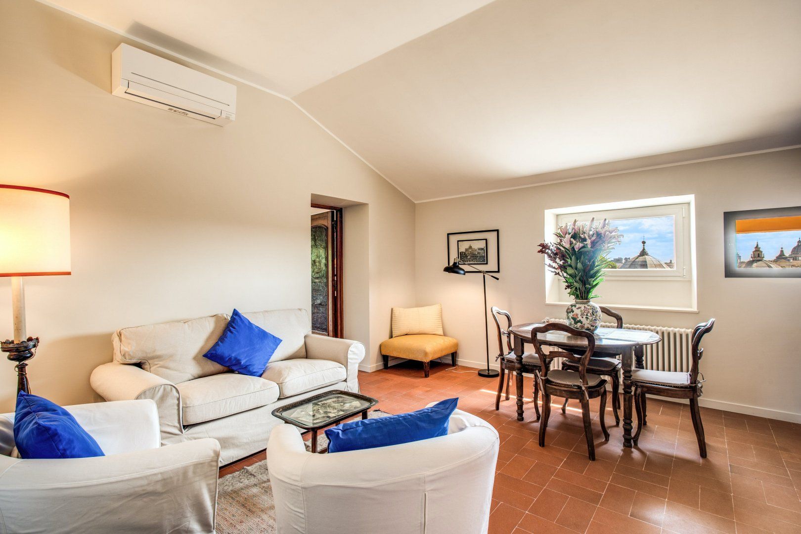 Home truths: *Parking in Rome can be tricky, so we recommend sticking to the easily accessible public transport where possible – though we think the best way to see the city is on foot *The double beds can also be configured as singles upon request *This home is on the sixth floor in a building with lift access, however, the home itself is set over two floors, the upper of which is accessed via the stairs *This home is in a central spot, so noise is to be expected *Though there isn't a dedicated desk here, the dining table doubles up as a laptop-friendly workspace