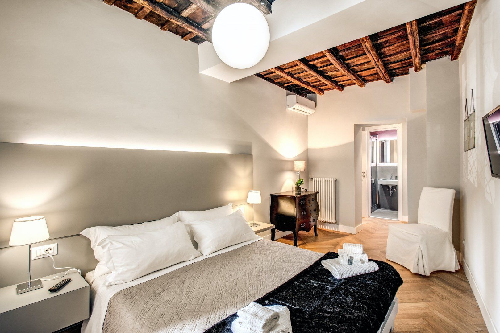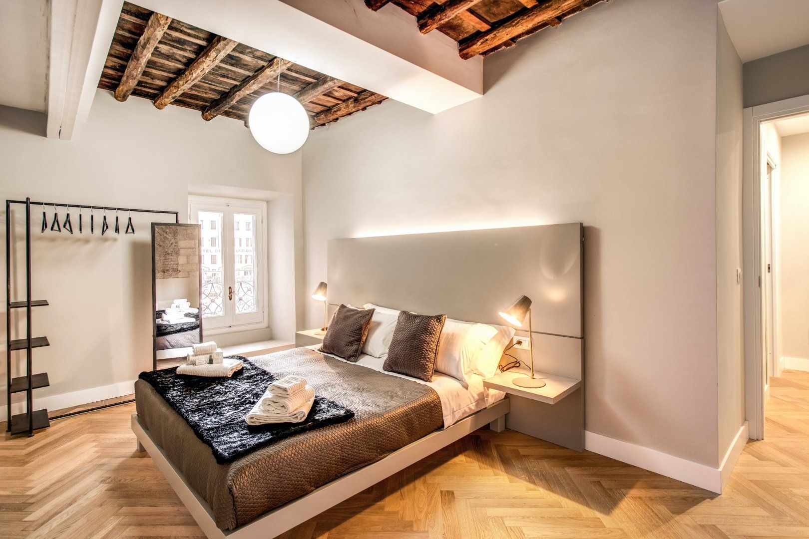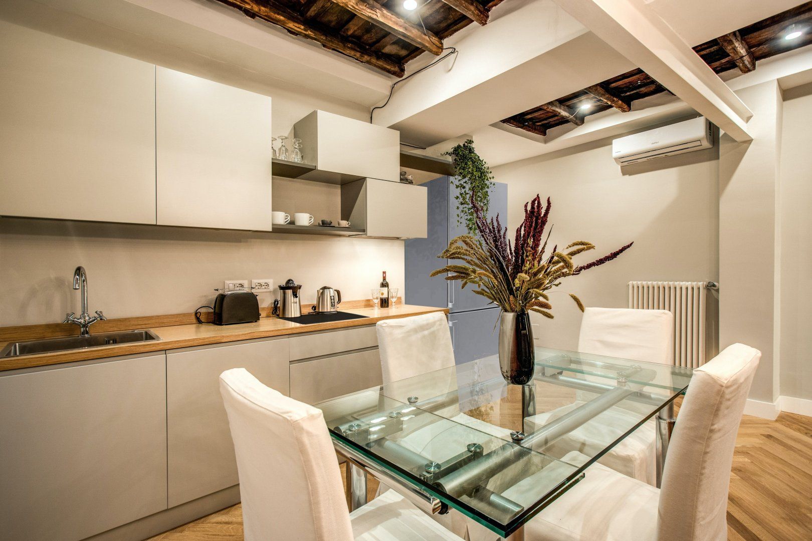 Back at this apartment, designed by a Roman architect and housed in a historical building, there's a wonderful blend of old and new – think character beams, parquet wood floors and modern chandeliers. Pour a Campari and soda and have a rest on the comfy chaise sofa after all that sightseeing in the Eternal City. Then, rustle up a carbonara in the kitchen and enjoy it at your dining table. This home is perfect for a family, friends or business professionals looking for a fabulous central address.