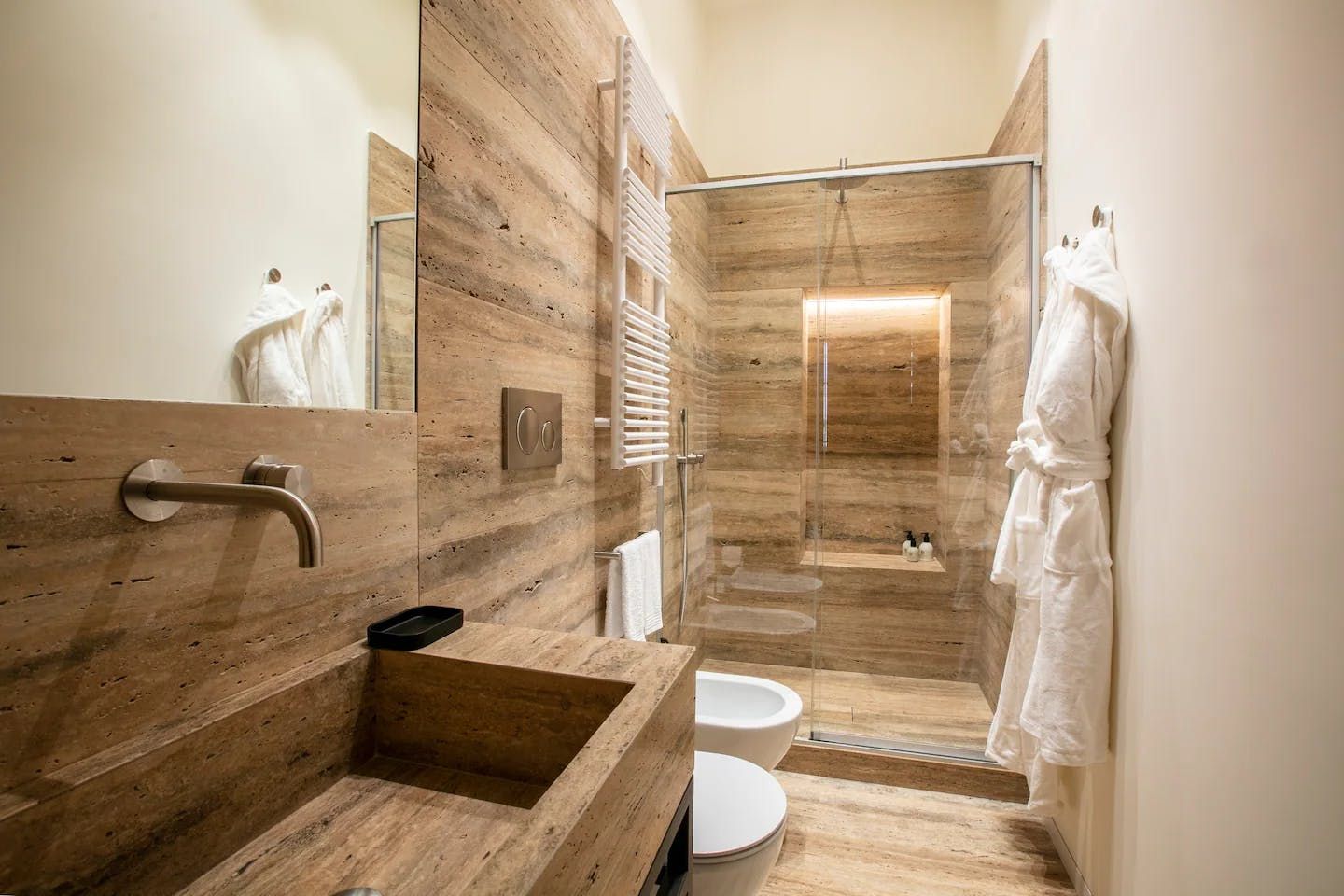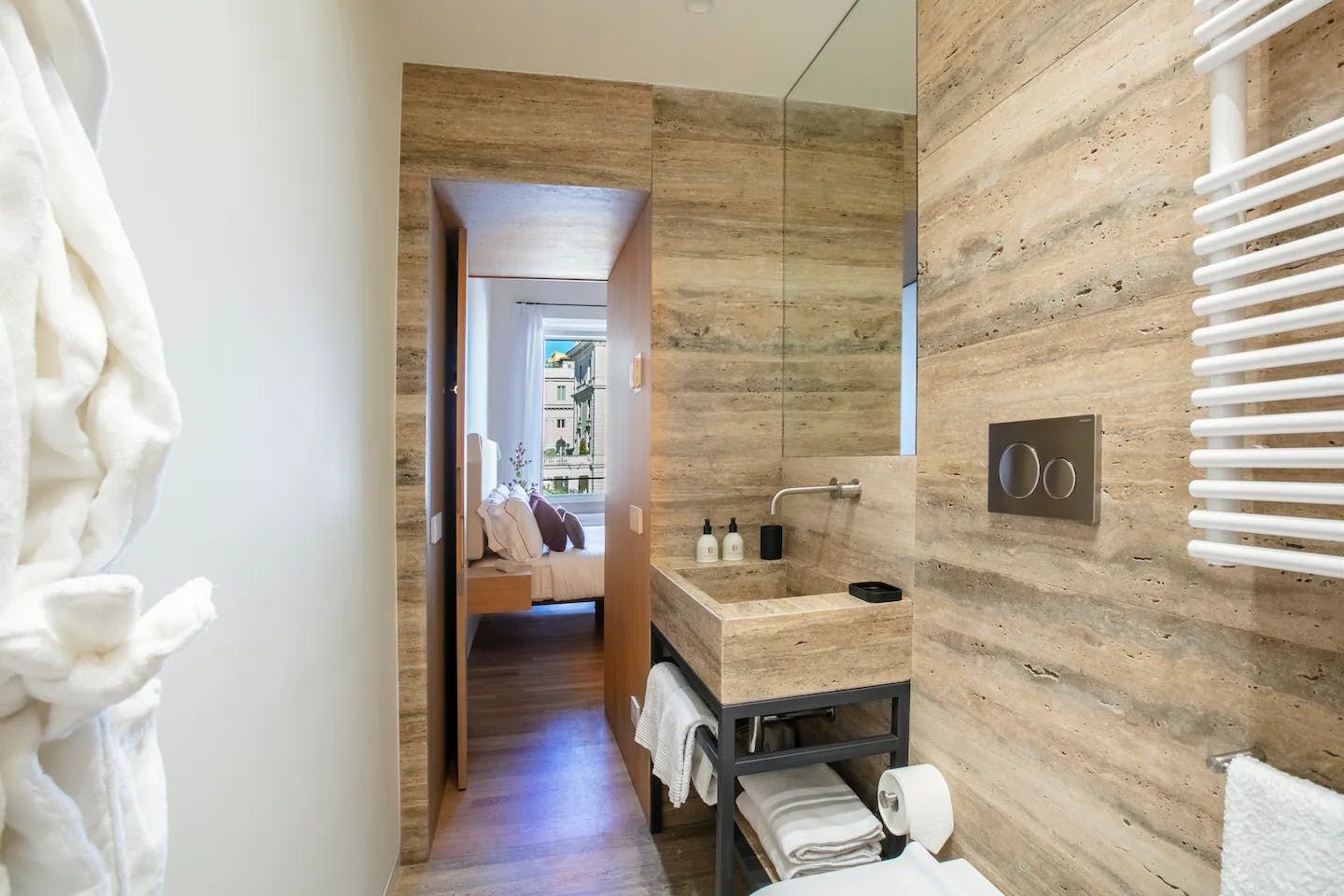 Gaze out at the beautiful neighbourhood buildings from your bed before peeling back one more of those minimalist doors to reveal a natural stone shower room where you can preen and pamper to your heart's content.