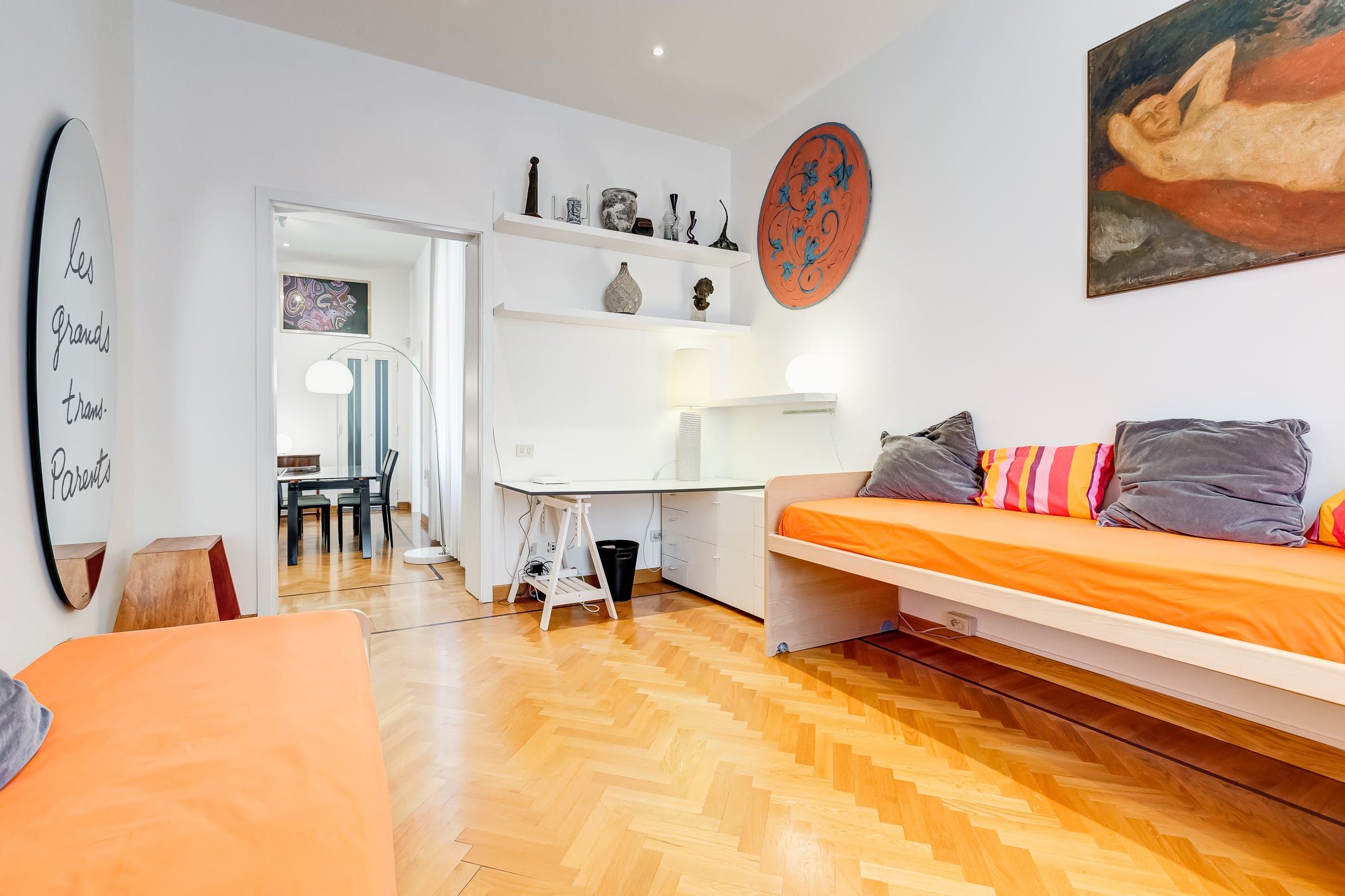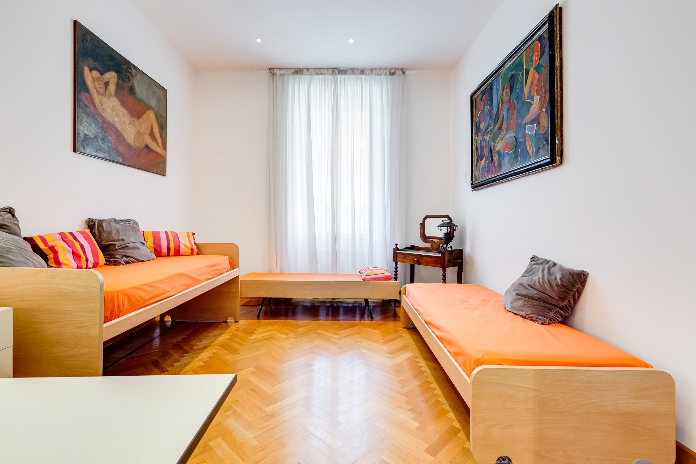 In the heart of Monti, this home provides a quiet place to unwind after busy days spent sightseeing. The Colosseum lies just a ten-minute stroll away, with plenty of the city's historical landmarks within easy walking distance. And for ventures further afield, Cavour Metro station is only five minutes on foot. Back home, the sleeping arrangements offer flexibility if you're travelling in a larger group. The charming rooftop terrace is the perfect spot for alfresco suppers and evening Camparis. Plus, the climb up to the third floor is a great way to burn off all that indulgent Italian dining.