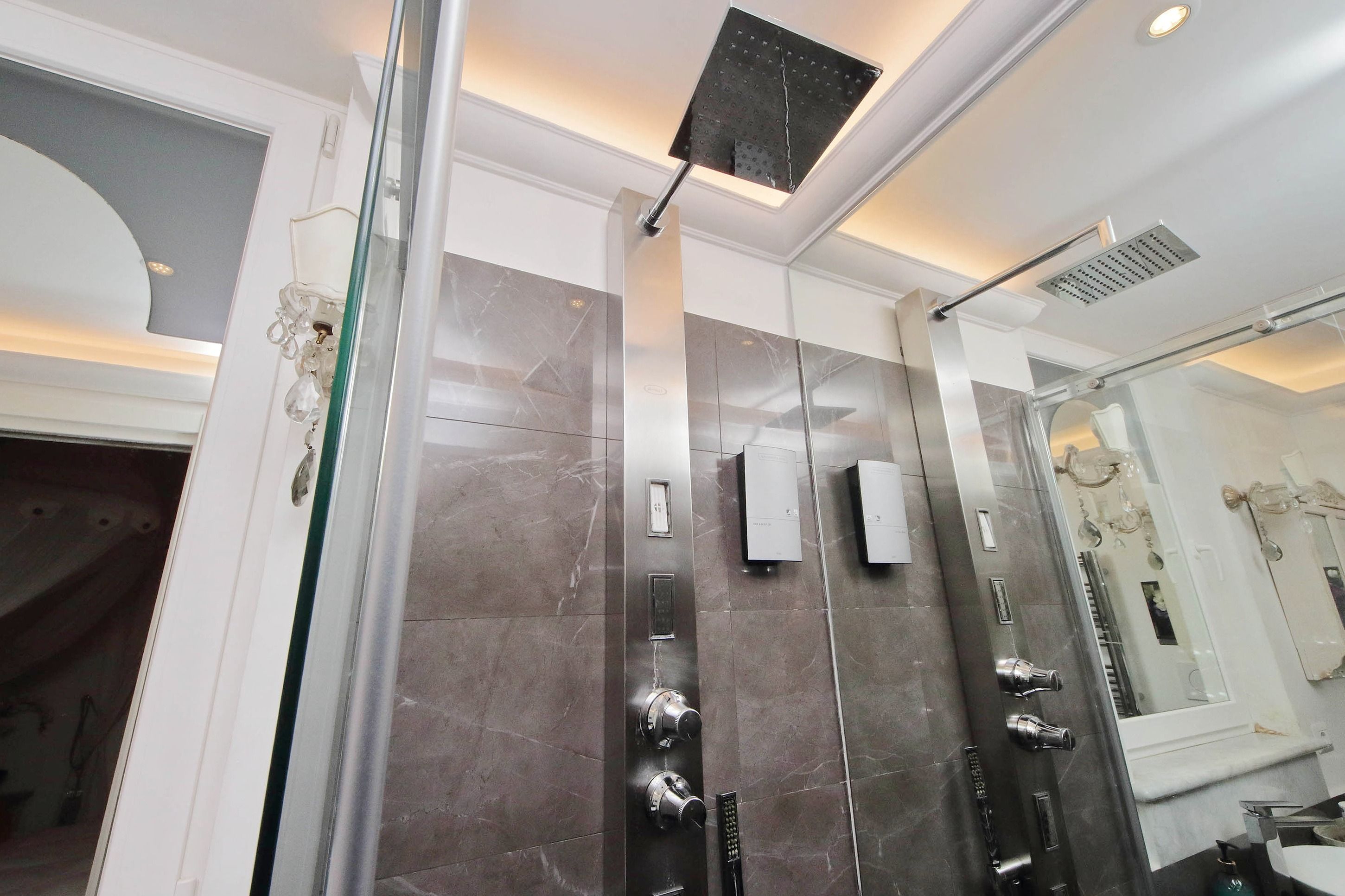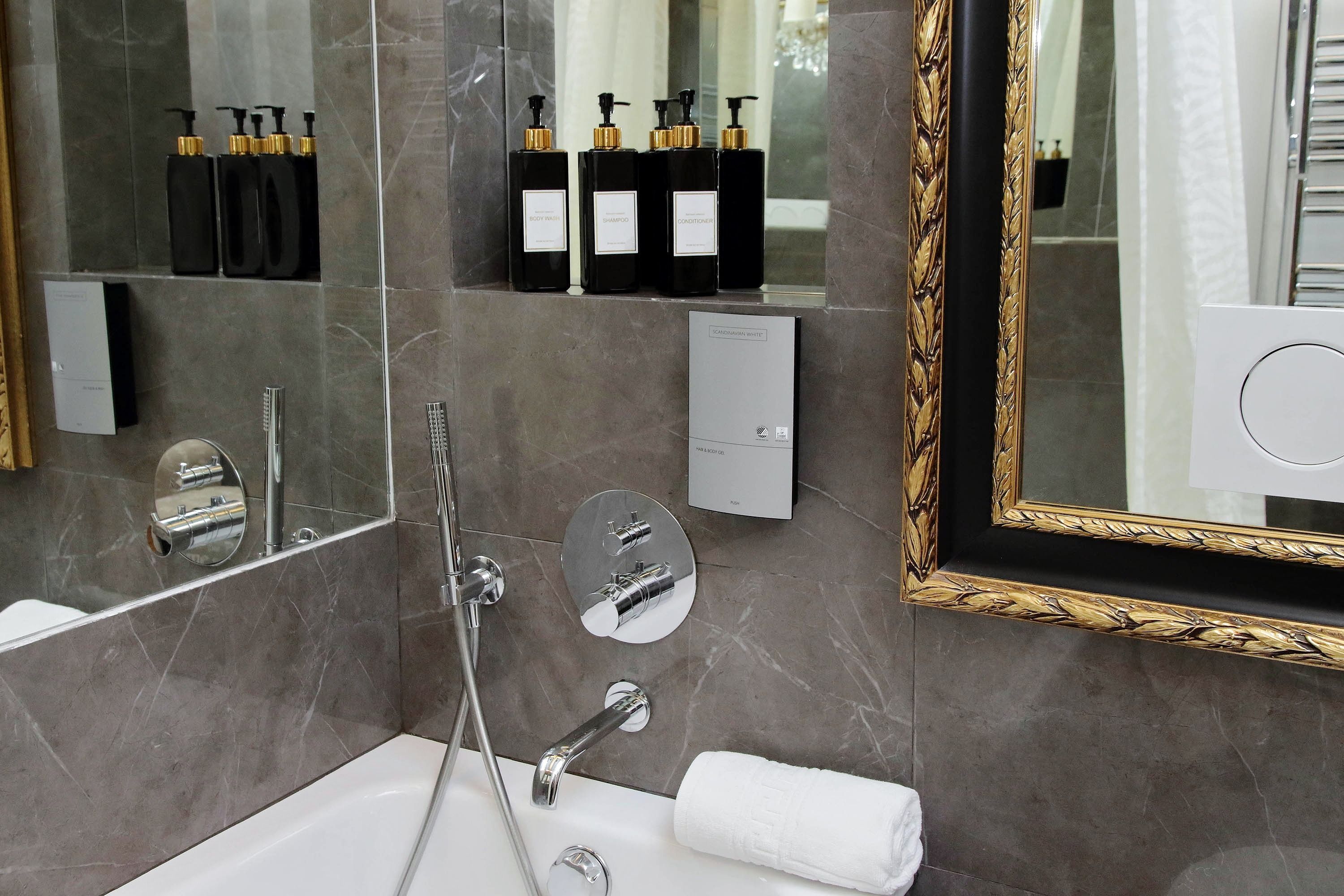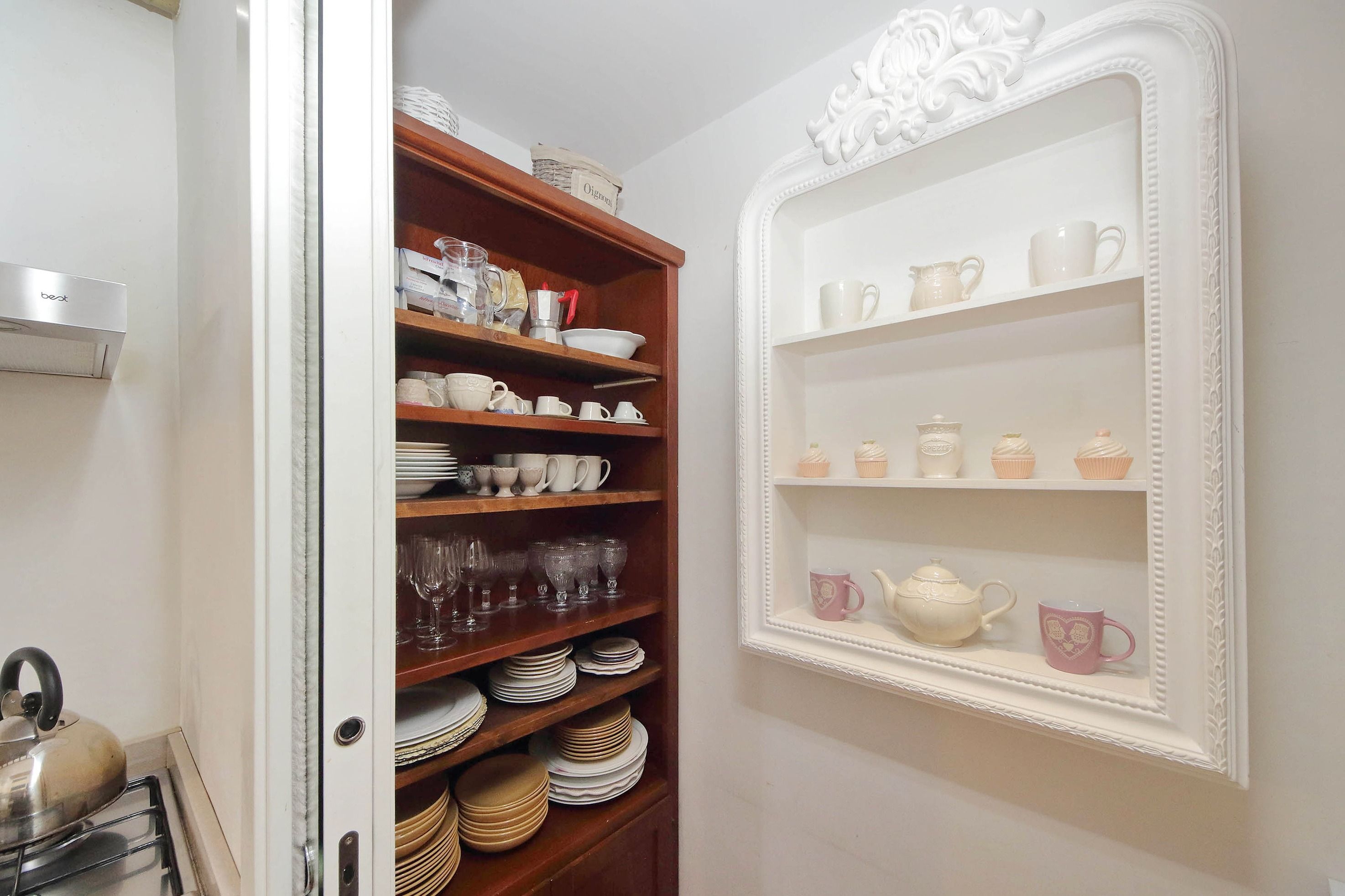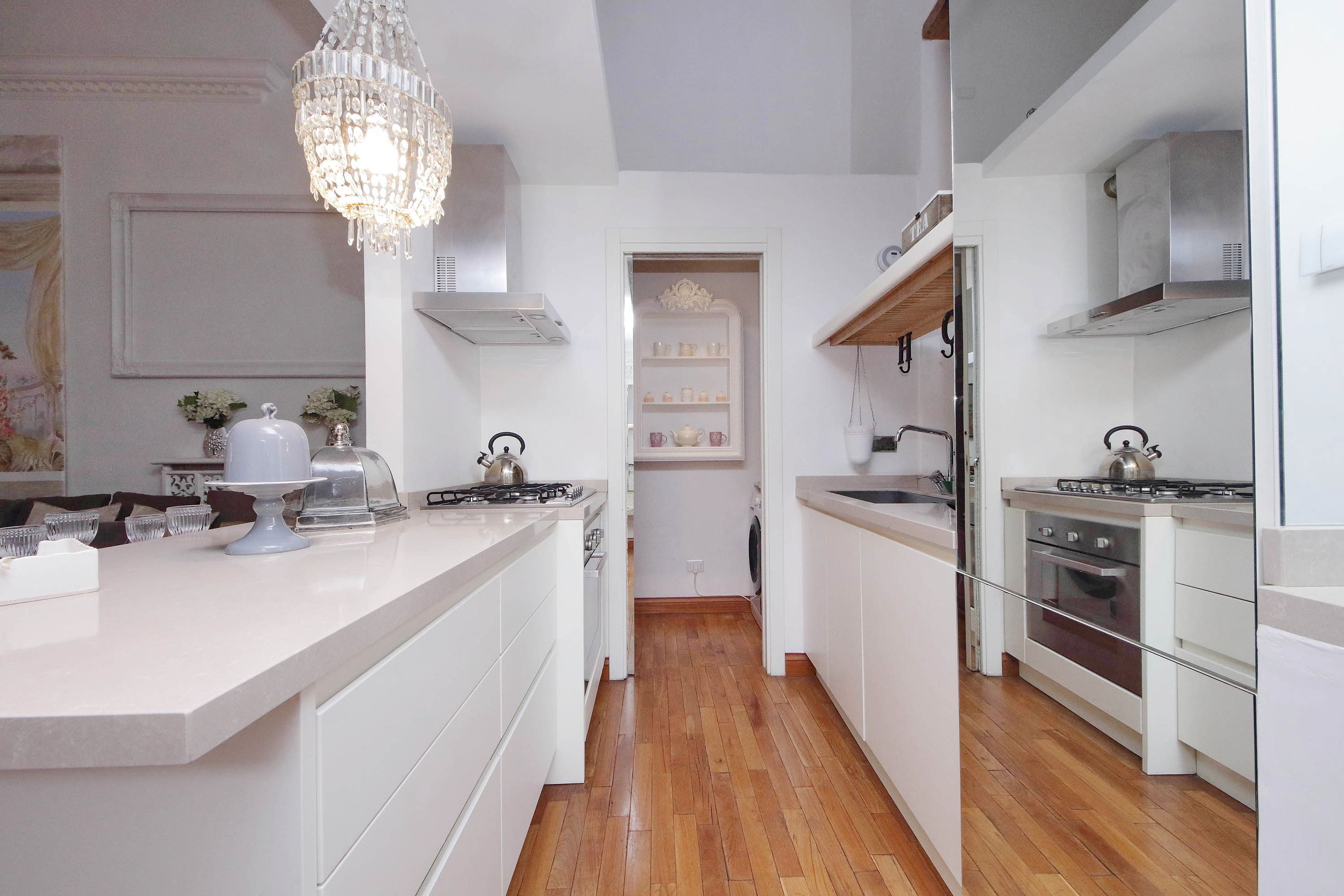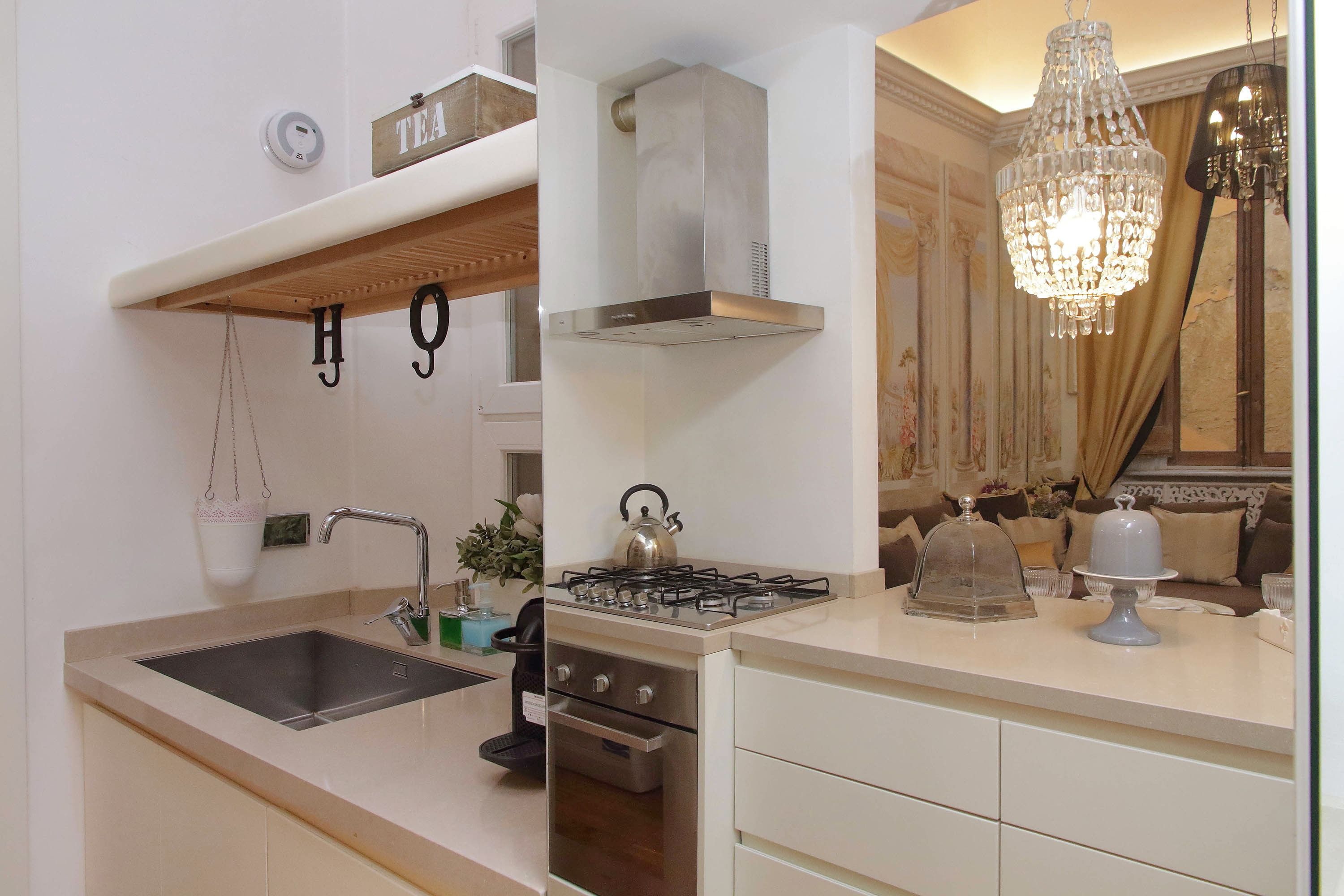 Adorned with hand-painted frescoes, gilded finishes and vibrant furnishings, this large apartment near Piazza Navona is full of character. While there are only two recognised bedrooms, the home can fit up to eight guests thanks to two sofa beds in the living area, which itself flows into a narrow kitchen area which doesn't afford much space for the dining table. The bedrooms themselves are adorned with mirrors, makeup chairs, fireplaces and other expressive design touches, with both offering en-suite bathrooms (though the primary bedroom's stands apart with its decadent corner bathtub). Stepping out of the building, you'll be right in the historic heart of Rome, with Campo de' Fiori less than five minutes away and the Forum reachable in twenty.
