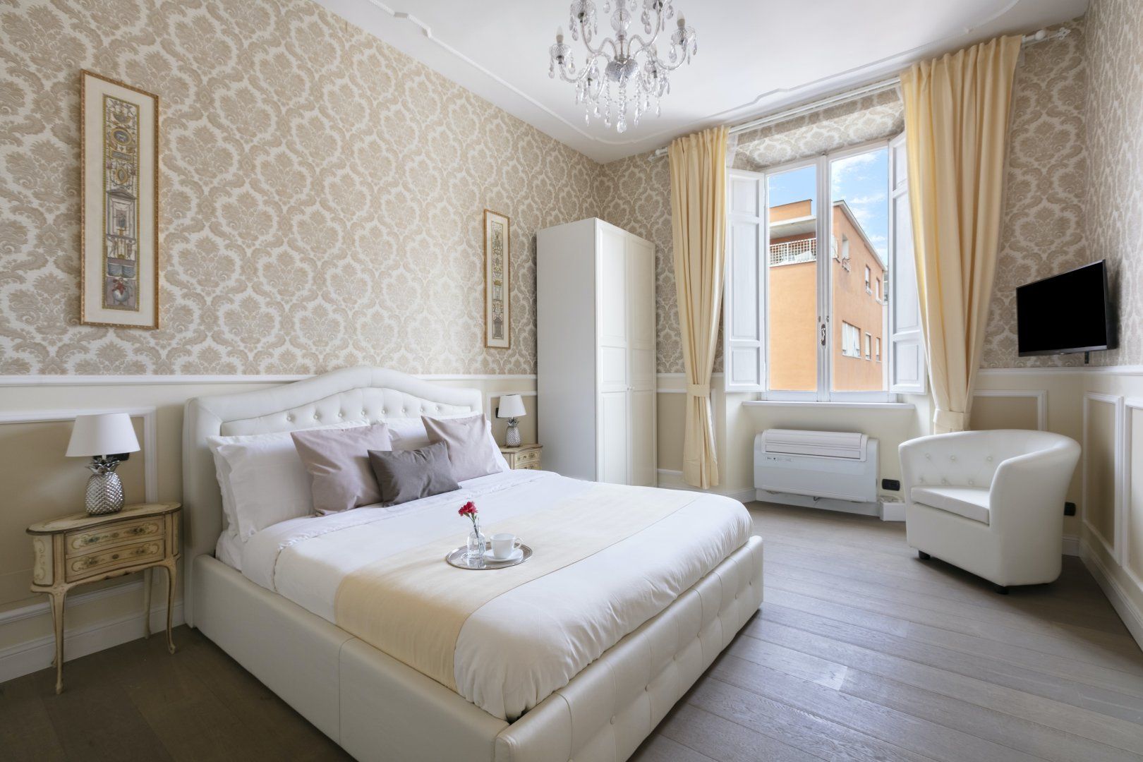Days can be spent strolling through the magnificent streets of central Rome – Saint Peter’s Square is only ten–minutes away while it's just a twenty–minute walk across the river to the beautiful fountains of Piazza Navona.