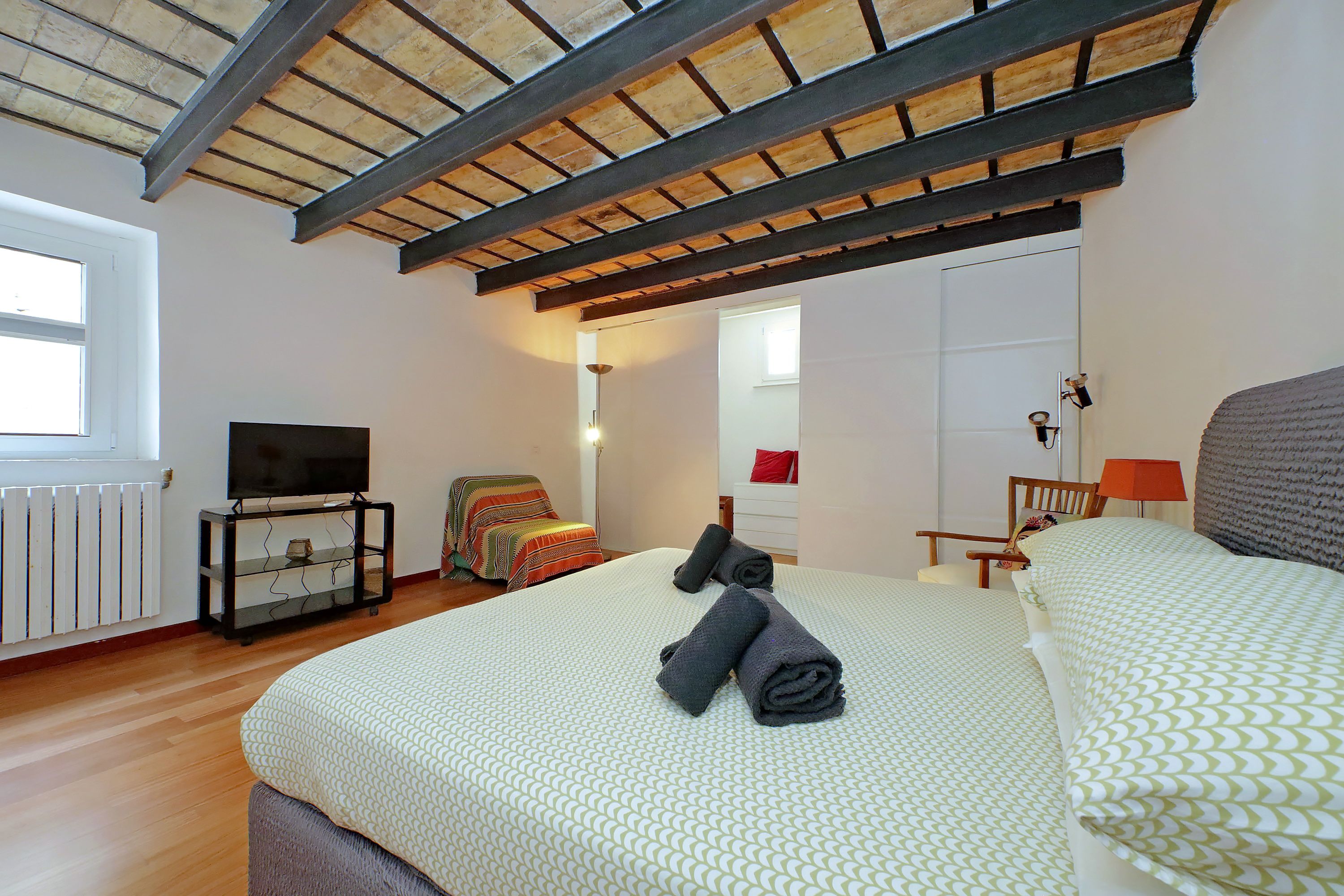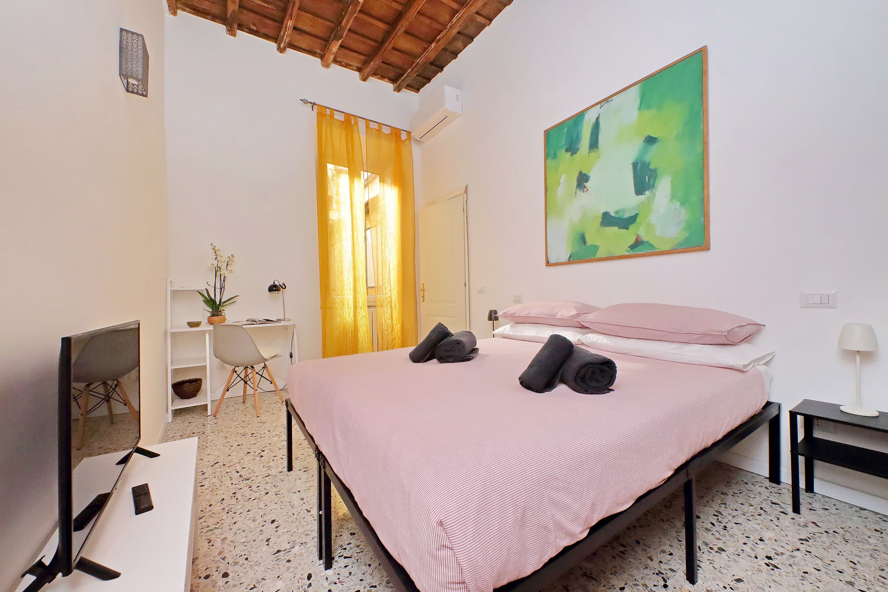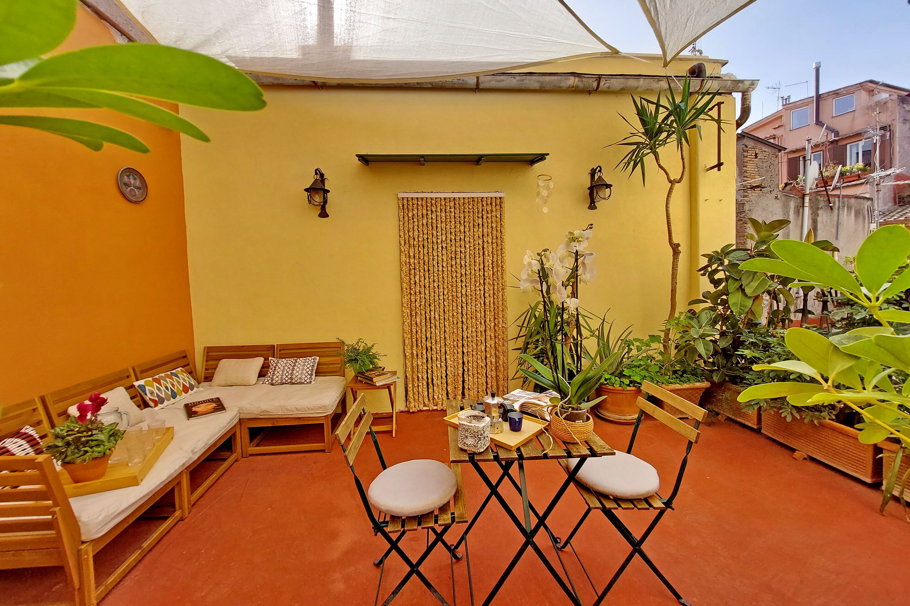 Tucked in the historic Piazza Campo de' Fiori, this apartment invites you to a magical Roman holiday. You can stroll to the Trevi Fountain, St. Peter’s and the Colosseum. There’s a fantastic selection of restaurants as well as a grocery store within easy reach. It’s worth noting, the apartment is on the second floor of a historic building with no lift access, but once inside you’ll find an abundance of space to switch off and spend quality time together. There’s also a private terrace offering a wonderful spot for sunset drinks.
