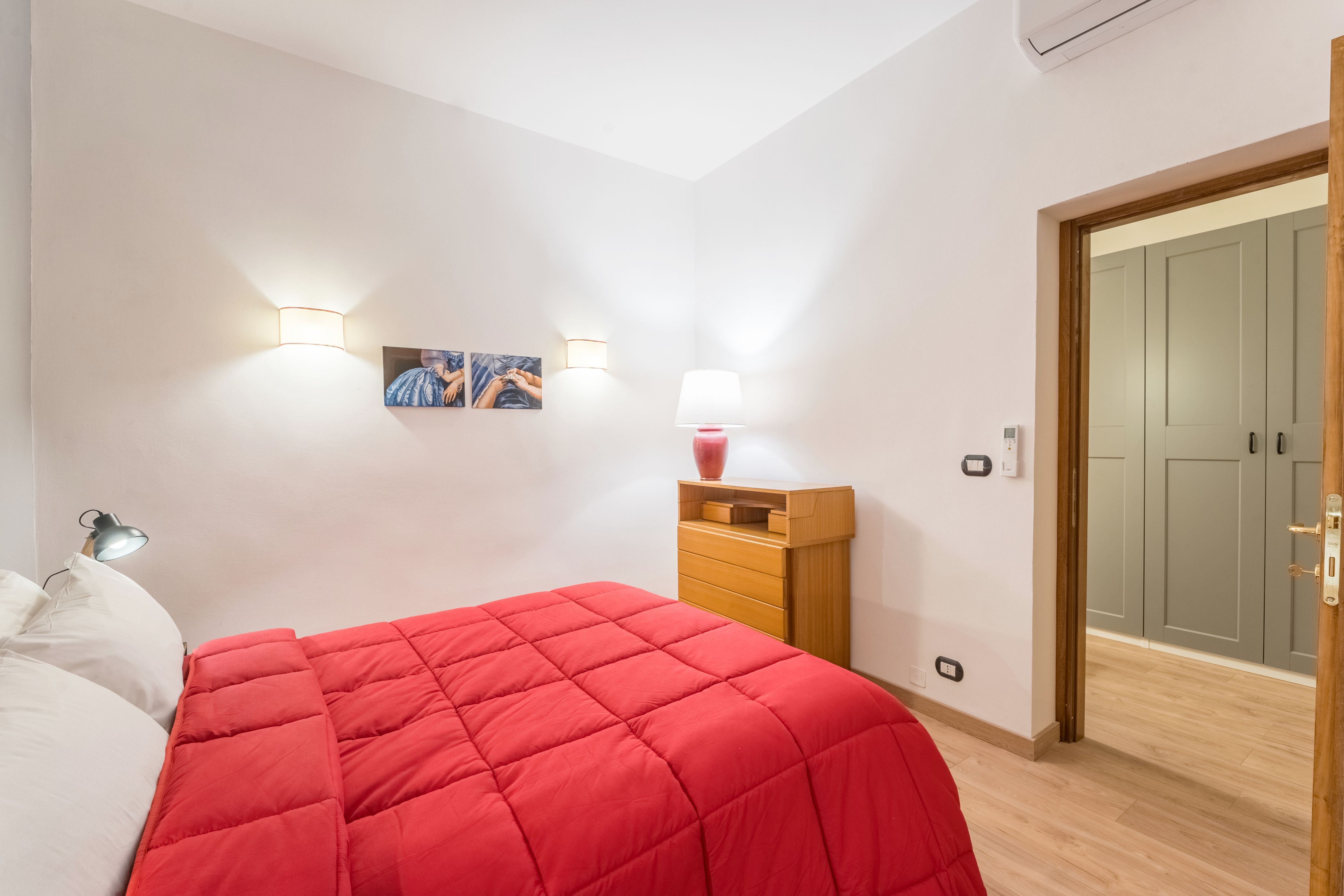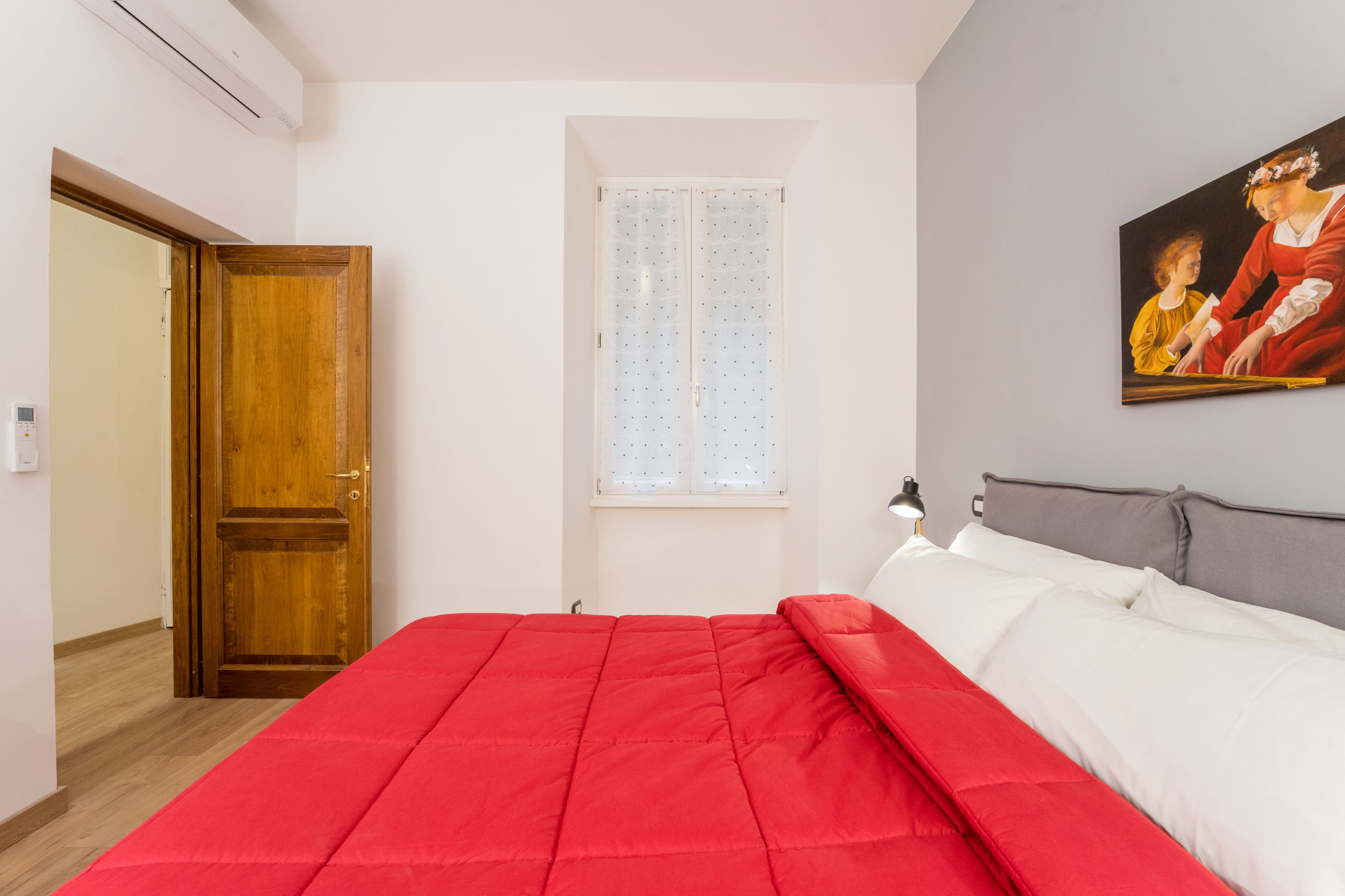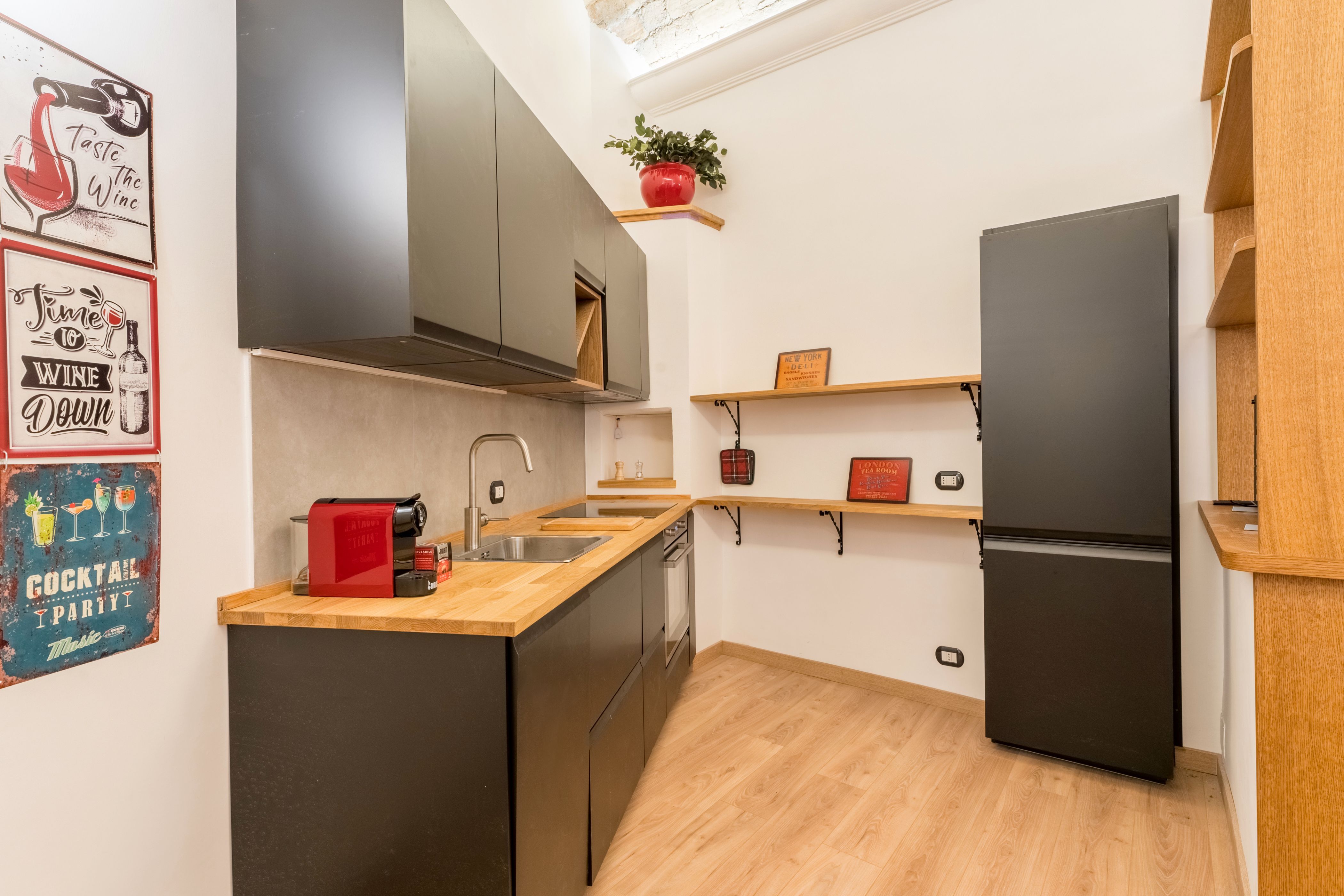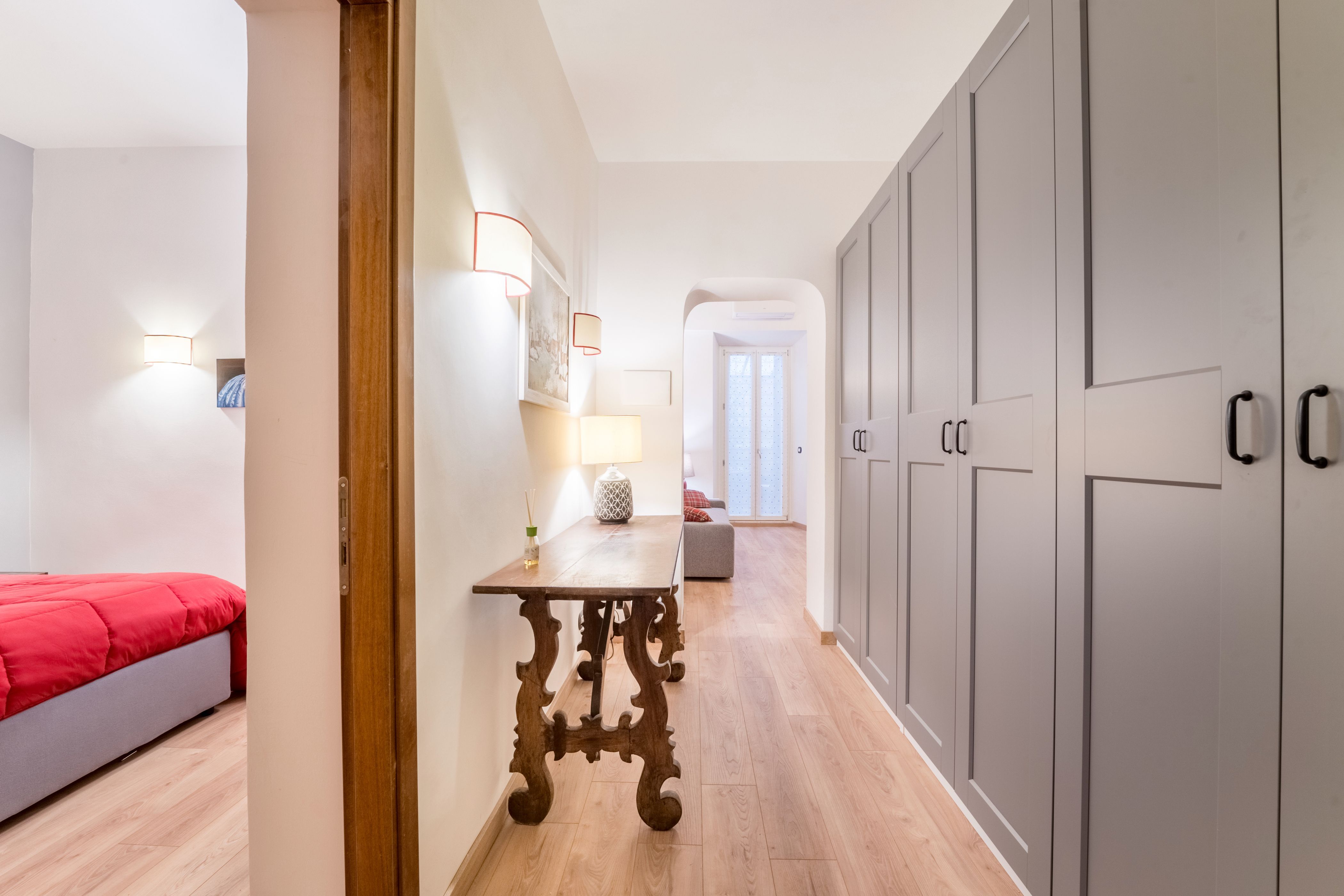 This apartment is within walking distance of many of Rome’s main attractions. These include the Colosseum and the Roman Forum, to name just a few. You’ll find plenty of cafes and restaurants in the neighbourhood too. Or return to this home and dine on the terrace here – it’s a great place to relax in the shade. And although the apartment doesn’t have a lot of natural light, you’ll be surrounded by the owner’s vibrant artworks. We love the original features, such as the barrel-vaulted ceiling in the living space, as well. This room also sleeps two guests on a sofa bed at full occupancy. The apartment offers a unique experience in the Eternal City.