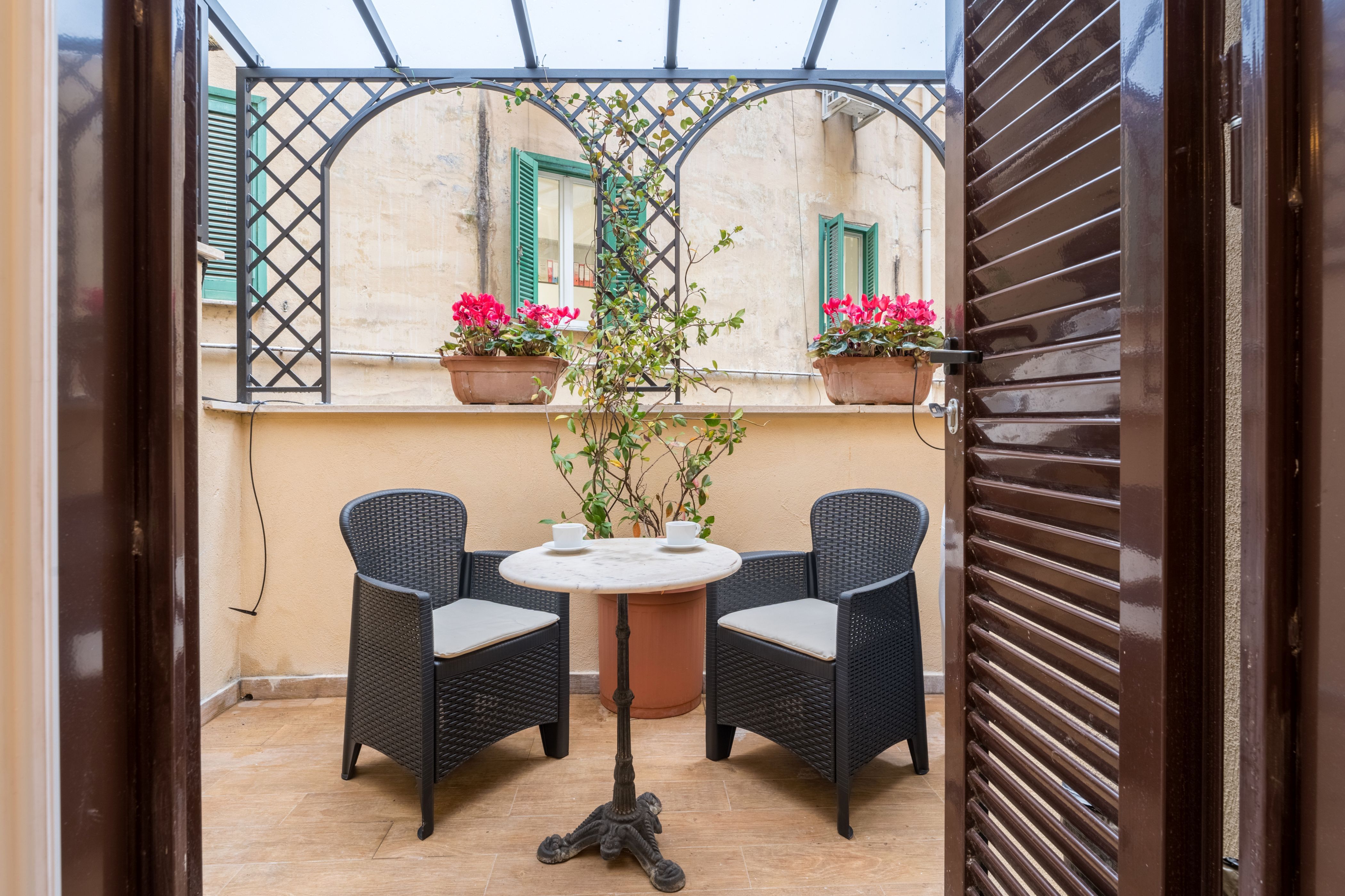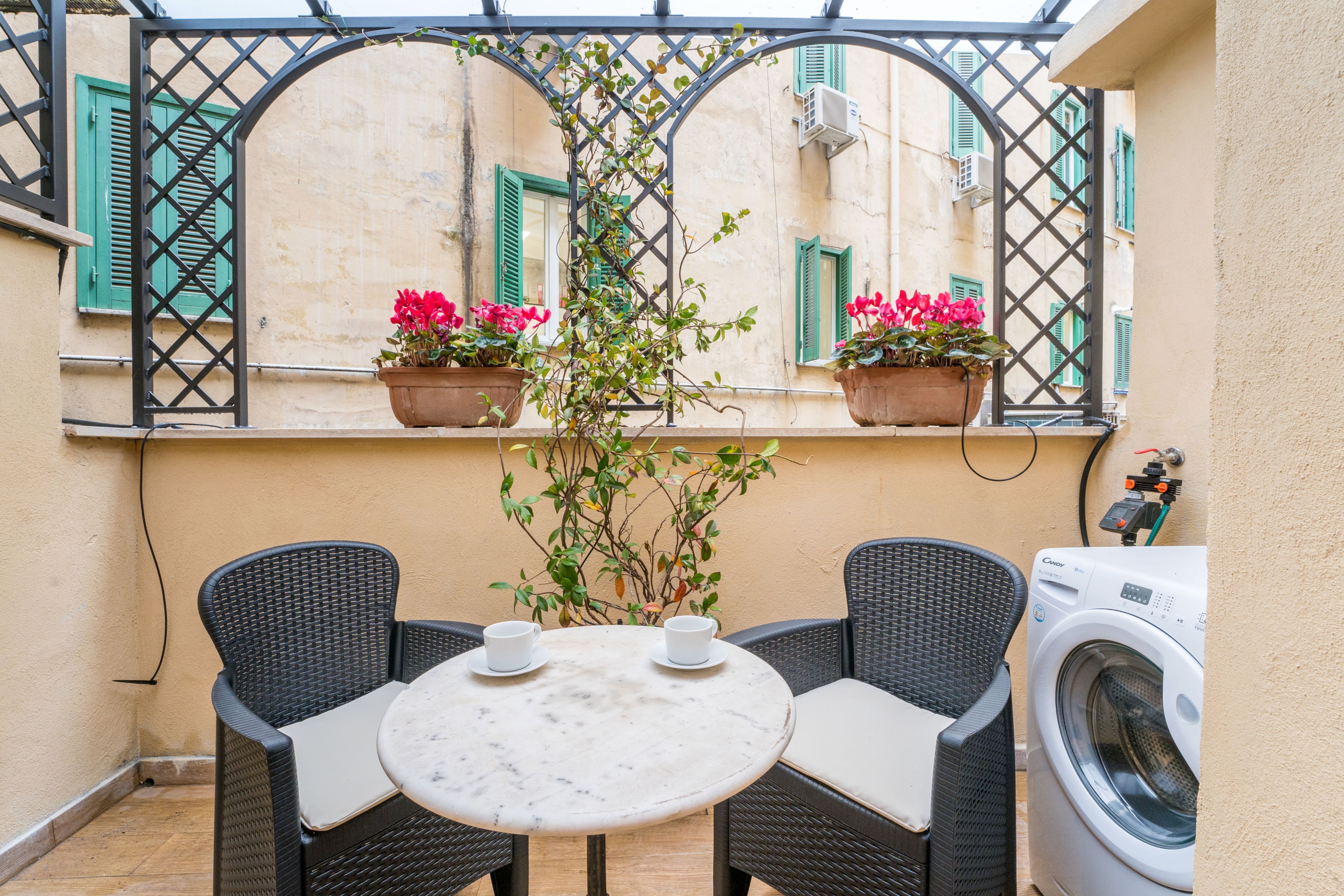 *As the balcony faces the interior communal courtyard, it doesn't get any sun – a bonus in the hot Roman summers. Also, there are only two seats here.
