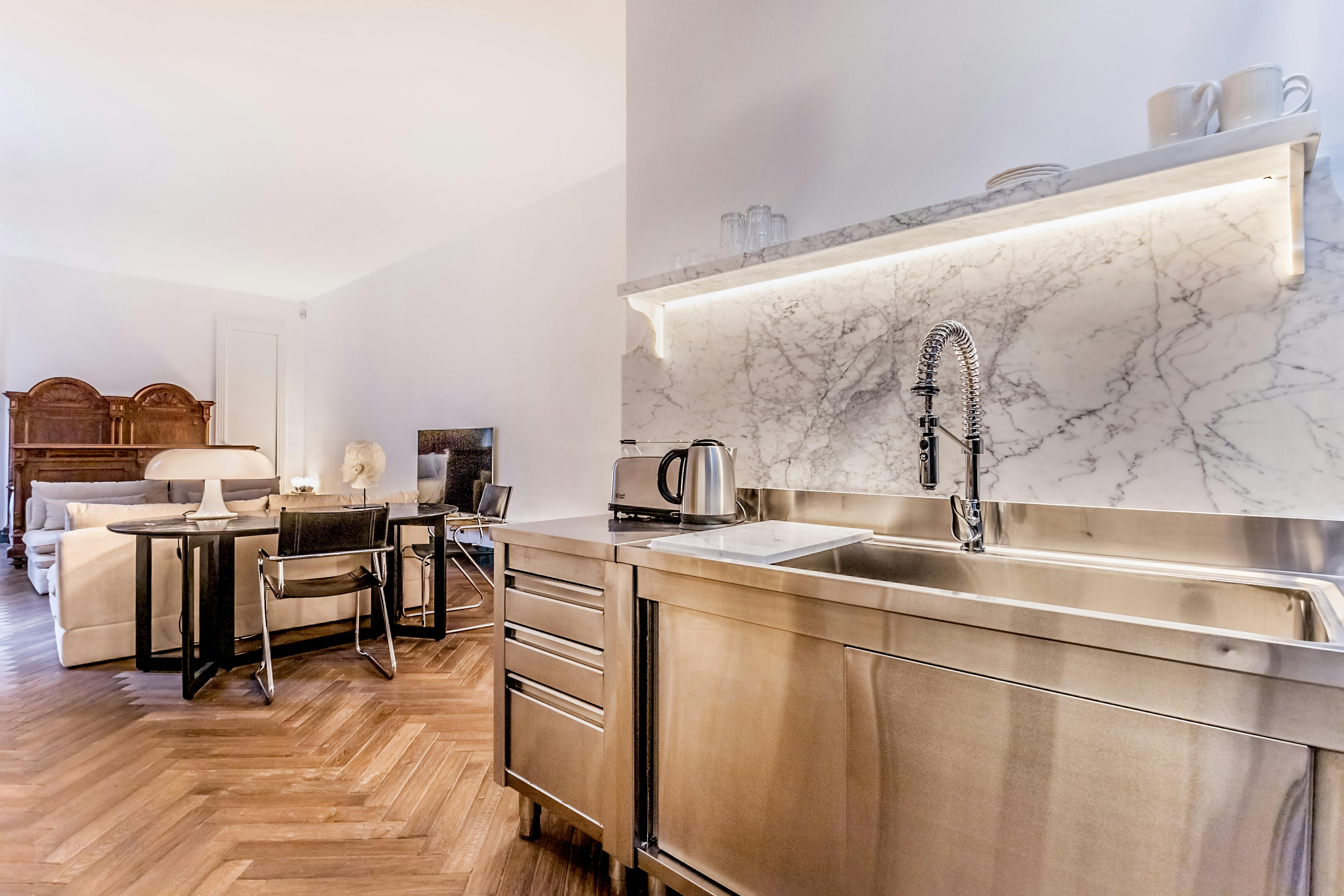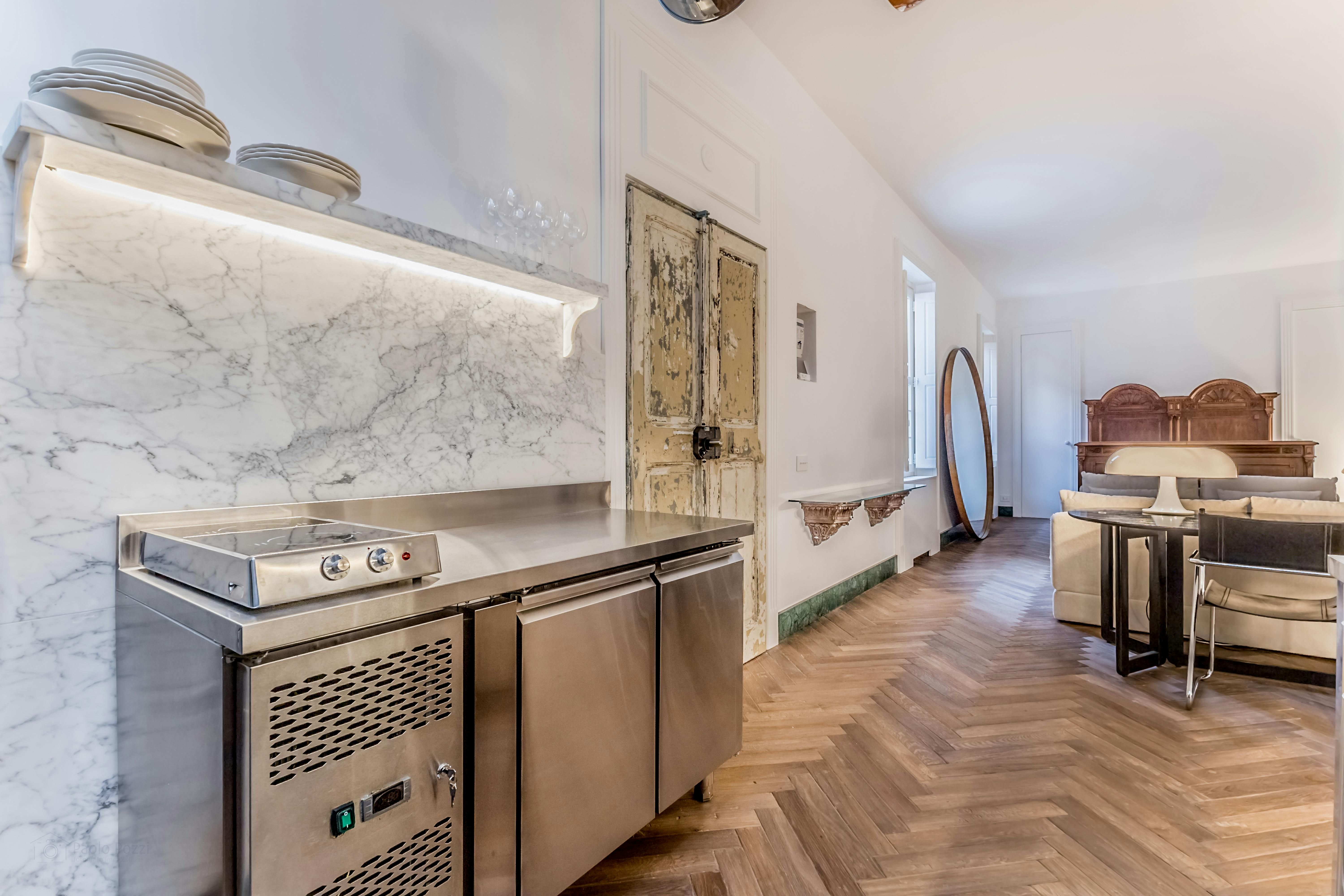 Situated in the vibrant Ostiense district, you'll be a short stroll from the iconic Pyramid of Cestius and the Porta San Paolo. You’ll also find a wide range of cafes, restaurants and shops in this neighbourhood, while other attractions can be easily reached via public transport. Inside this studio apartment, there’s an industrial-style kitchen for cooking some Italian cuisine and from here there are French doors to a verdant winter garden. Whether you're seeking relaxation or a Roman adventure, this apartment offers an ideal base.