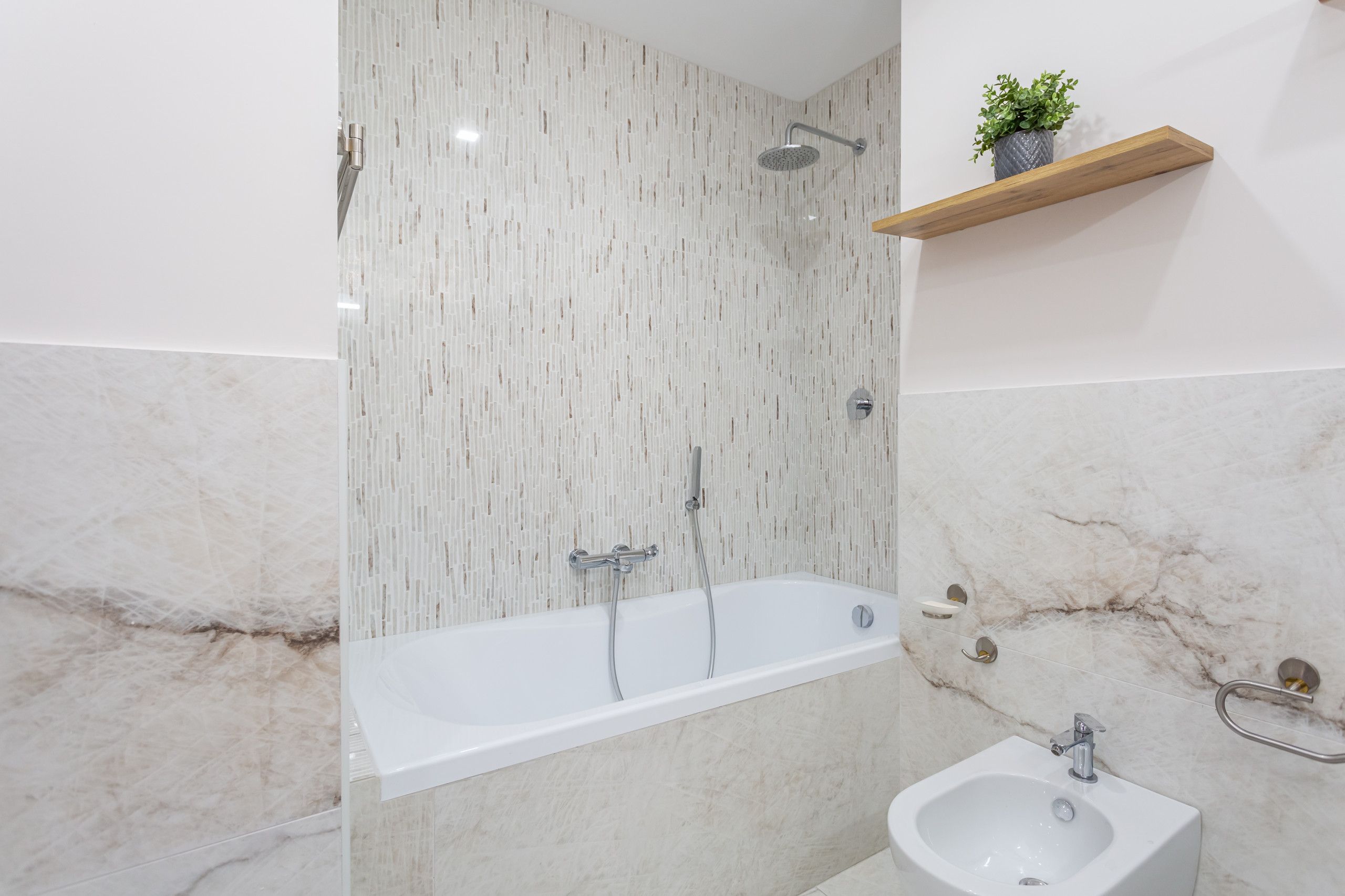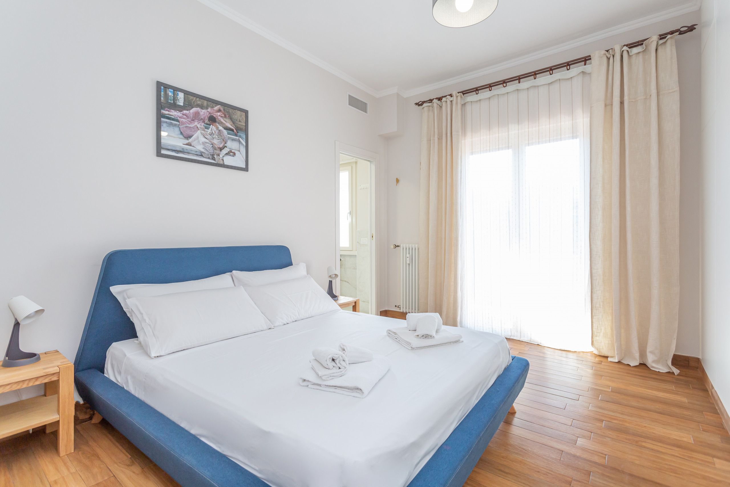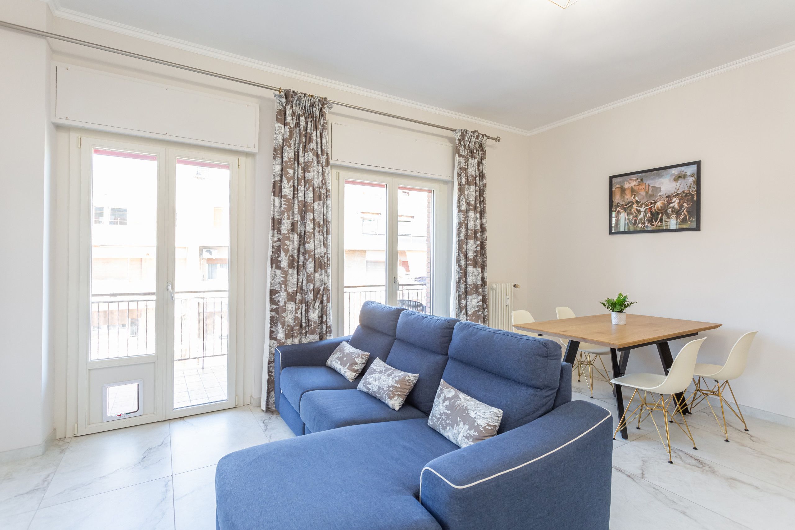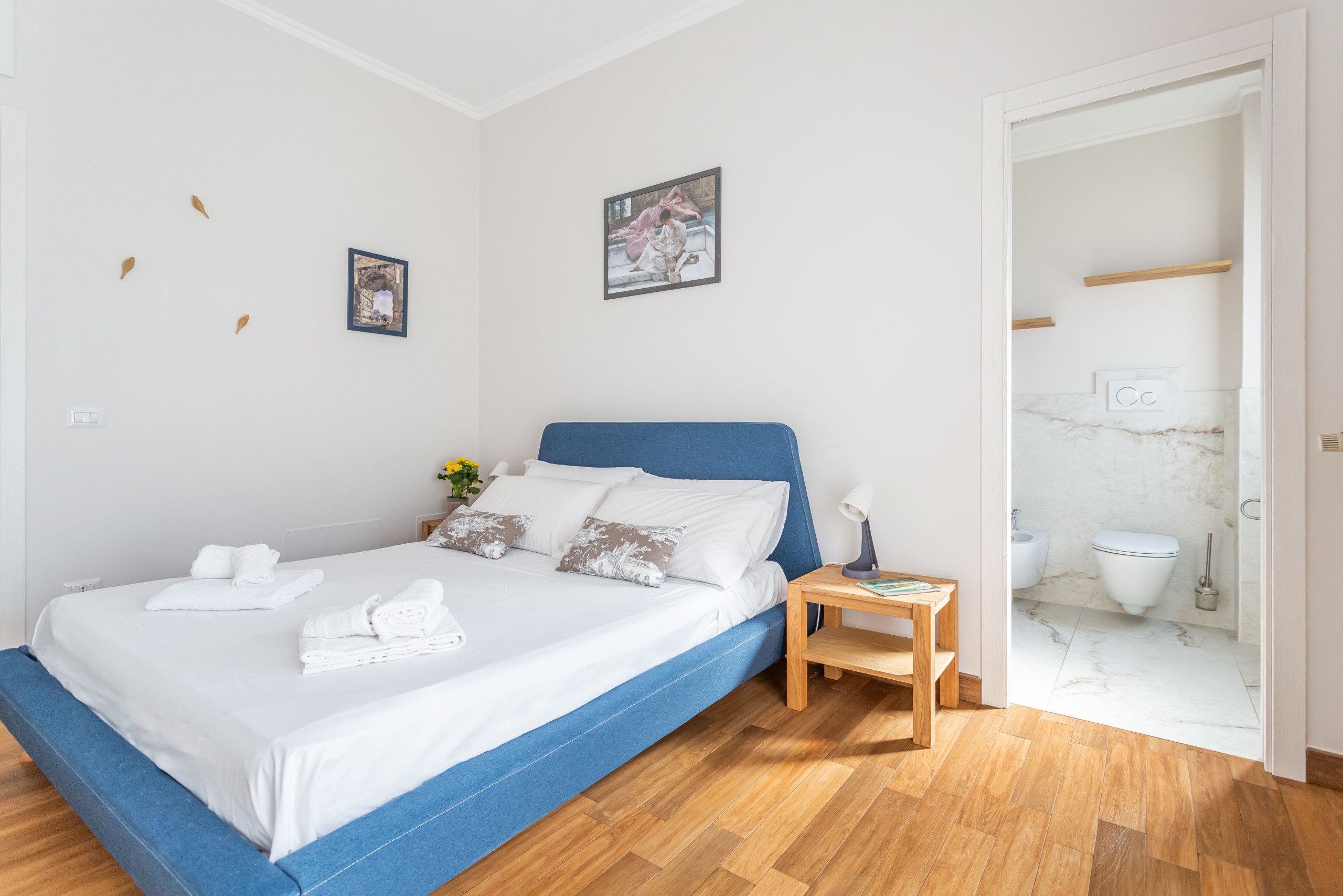This freshly renovated apartment offers a modern, easy base for exploring Rome. It's got private parking and a bus stop right outside that takes you straight to landmarks like St. Peter’s Basilica or Trastevere, so it’s simple to explore the Eternal City here. Inside, the open-plan living space is welcoming, with a fully equipped kitchen and two balconies for morning coffee or evening aperitivi. Both bedrooms are spacious with large wardrobes; one features an en-suite, while the other includes a desk for working remotely. If you’re looking for a Roman sojourn away from the bustle but still close enough to the action, this is your place.