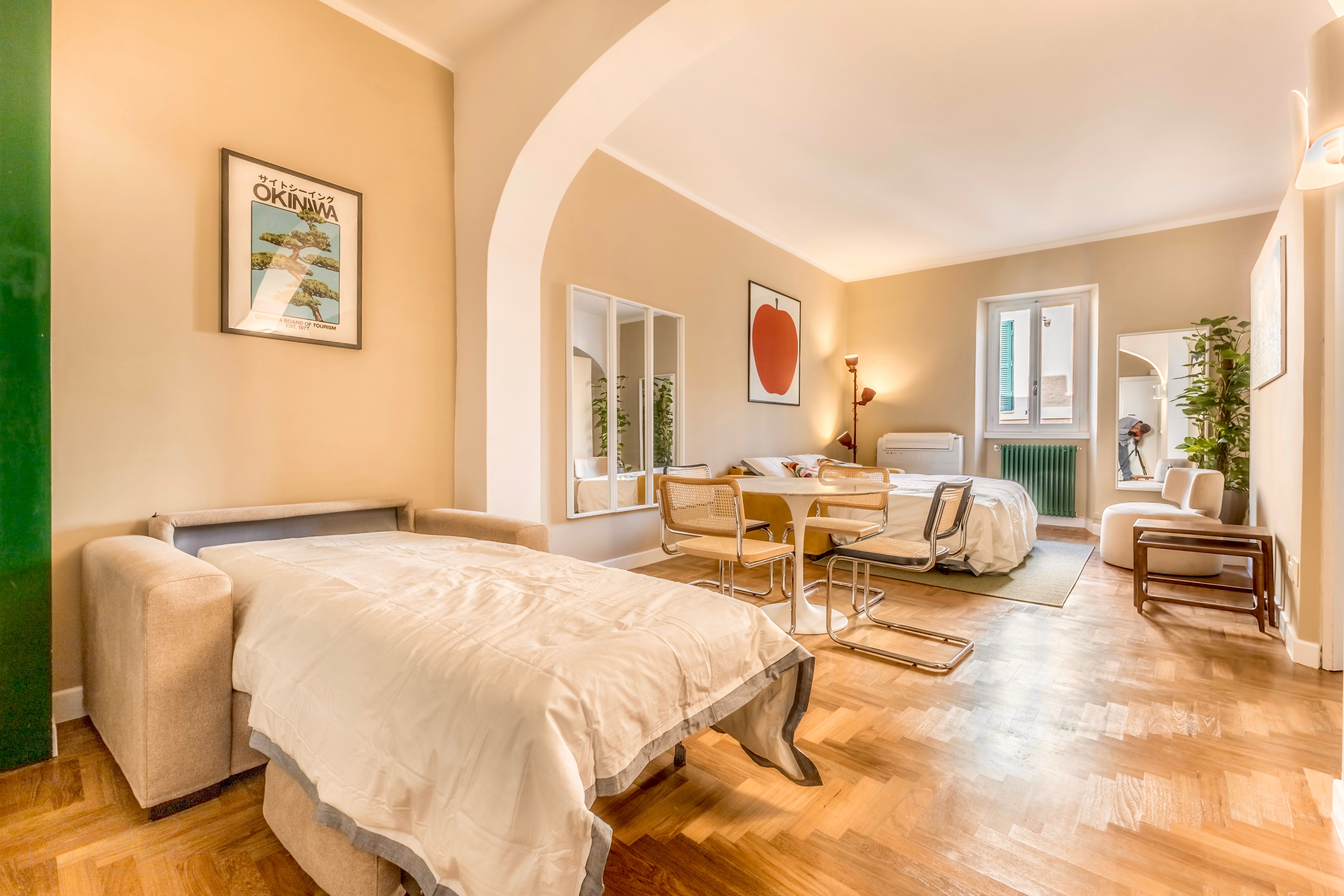Nestled in the heart of Trastevere, this charming apartment places many of Rome’s iconic sightseeing spots within easy reach. Stylish and chic, you’ll find lots of bespoke furniture in this pad, making it feel like a true home away from home. Perfect for a couple’s retreat, it’s also easy to accommodate a party of four here, courtesy of the sofa beds in the living area. And location-wise? You’re in for a treat. Close to the Piazza Santa Maria, and with the Pantheon, Trevi Fountain, and Campo de Fiori within walking distance, the only trouble you’ll have is deciding where to start your tour of Rome.