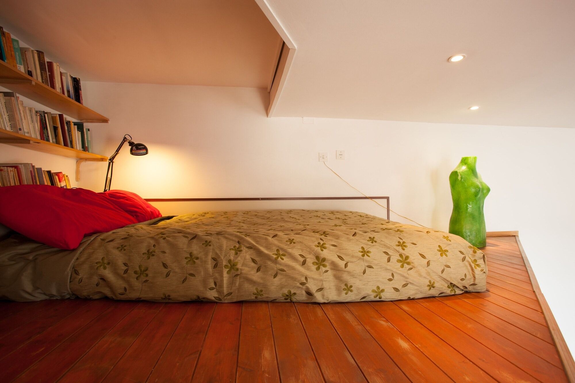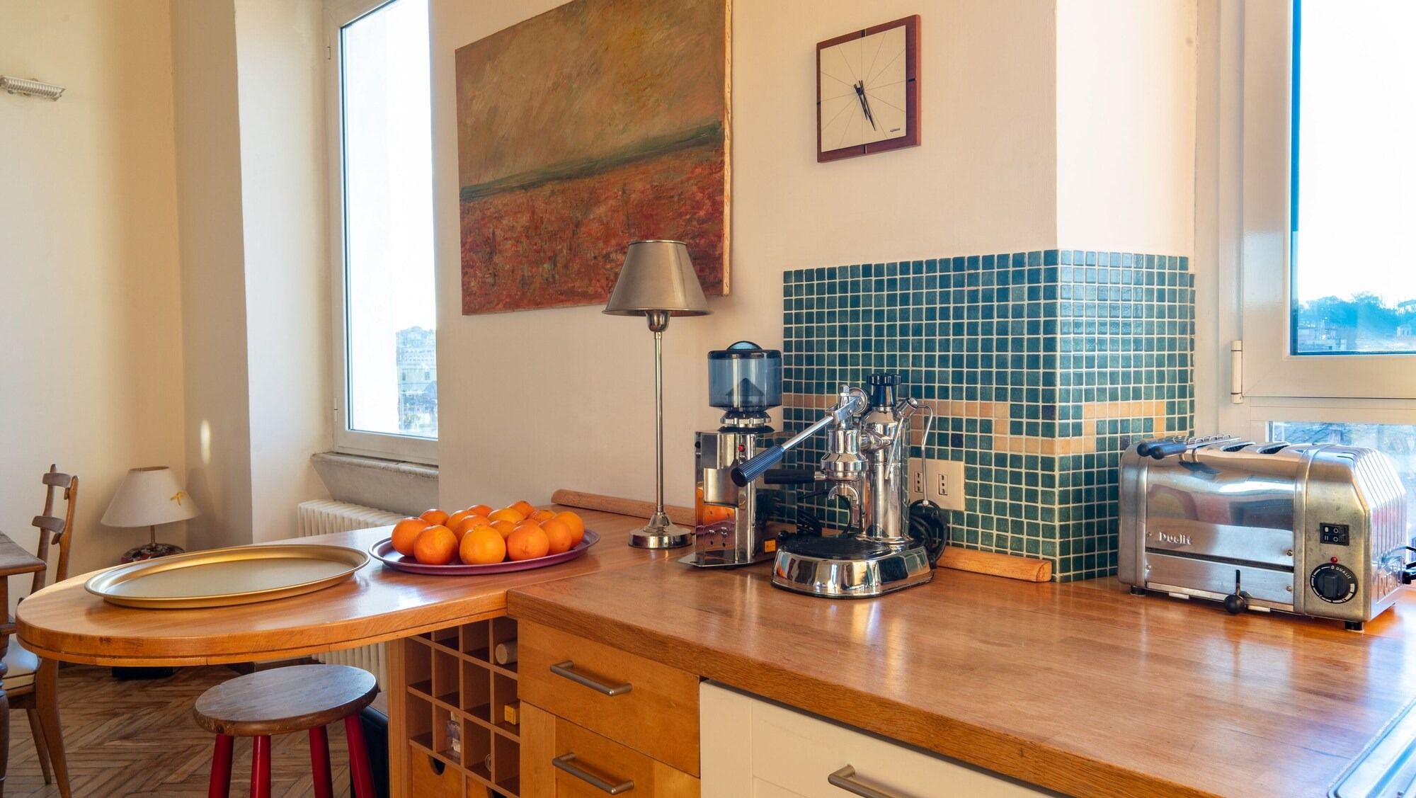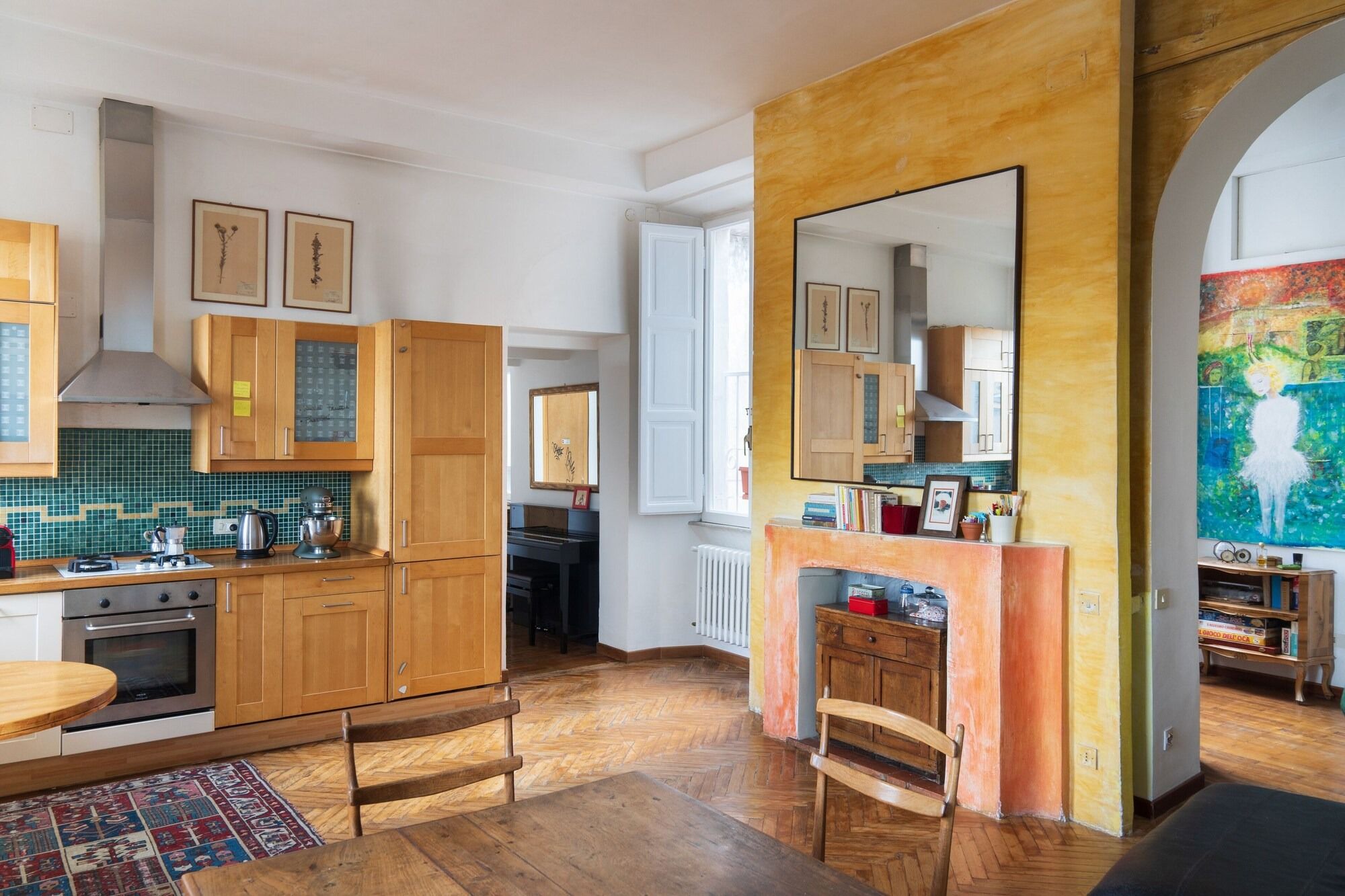 This home is right in the heart of Trastevere, one of the most vibrant parts of Rome. You’ve got bars, restaurants, and nightlife all around, but the apartment itself is surprisingly quiet. Set on the fifth floor of a classic building with a doorman and a lift, it also boasts large windows, high ceilings, and a terrace with sweeping views. Plus, fun fact: the terrace was designed by famed architect Tomaso Buzzi. Inside, it’s more bohemian than polished, with a lived-in, artistic feel. At full capacity, two guests will brave the sleeping platform in the living room, and one bedroom connects to shared spaces, including the terrace, so expect a little overlap. Still, with this central location and those views, it’s hard to beat.