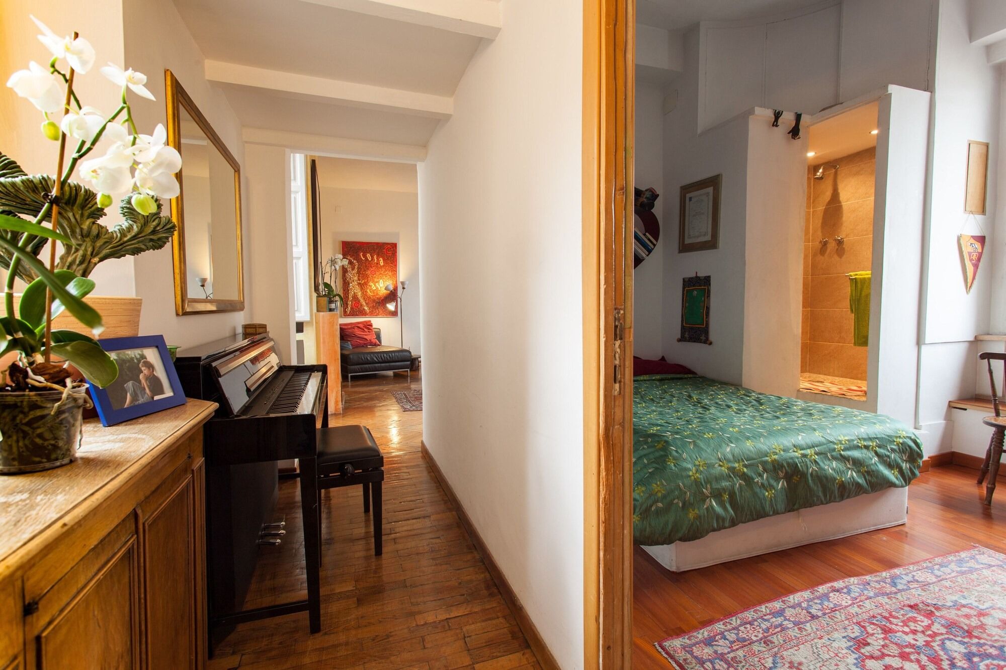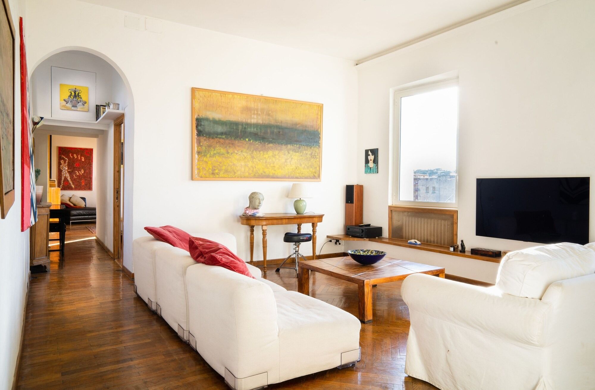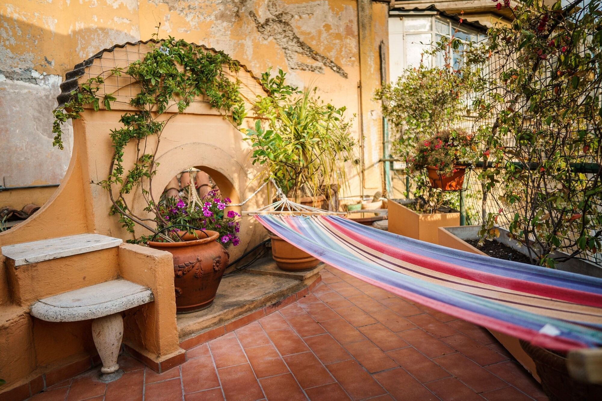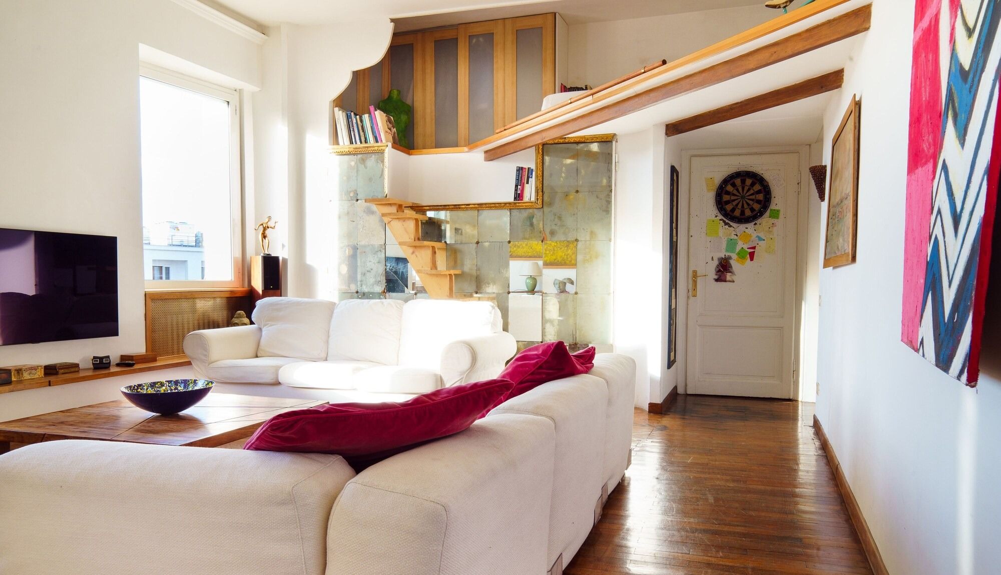 This home is right in the heart of Trastevere, one of the most vibrant parts of Rome. You’ve got bars, restaurants, and nightlife all around, but the apartment itself is surprisingly quiet. Set on the fifth floor of a classic building with a doorman and a lift, it also boasts large windows, high ceilings, and a terrace with sweeping views. Plus, fun fact: the terrace was designed by famed architect Tomaso Buzzi. Inside, it’s more bohemian than polished, with a lived-in, artistic feel. At full capacity, two guests will brave the sleeping platform in the living room, and one bedroom connects to shared spaces, including the terrace, so expect a little overlap. Still, with this central location and those views, it’s hard to beat.
