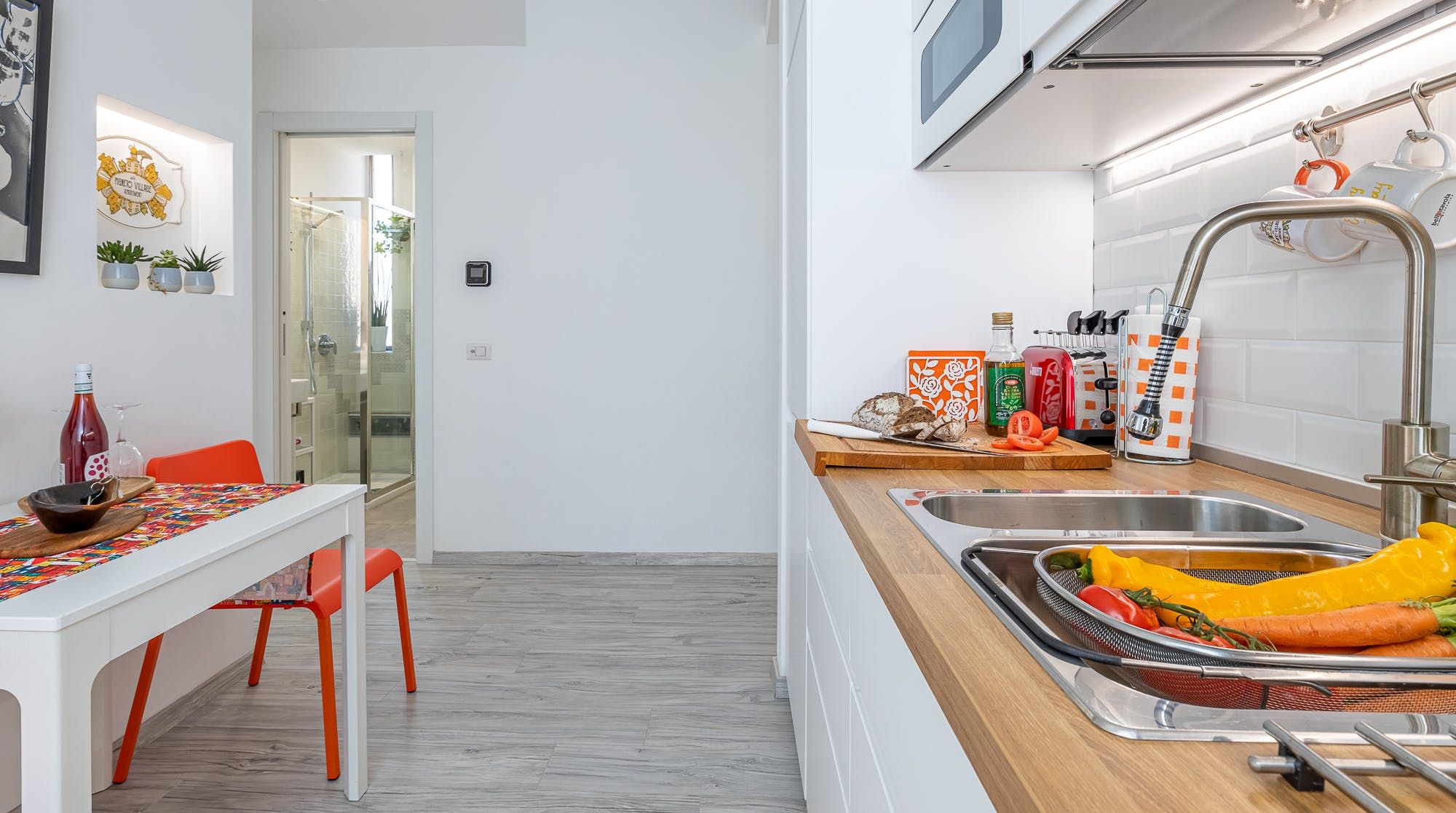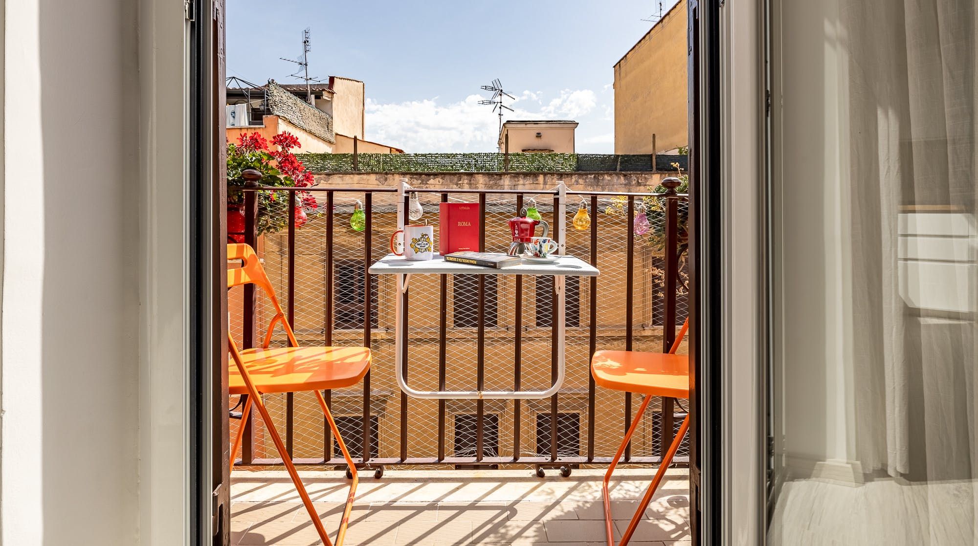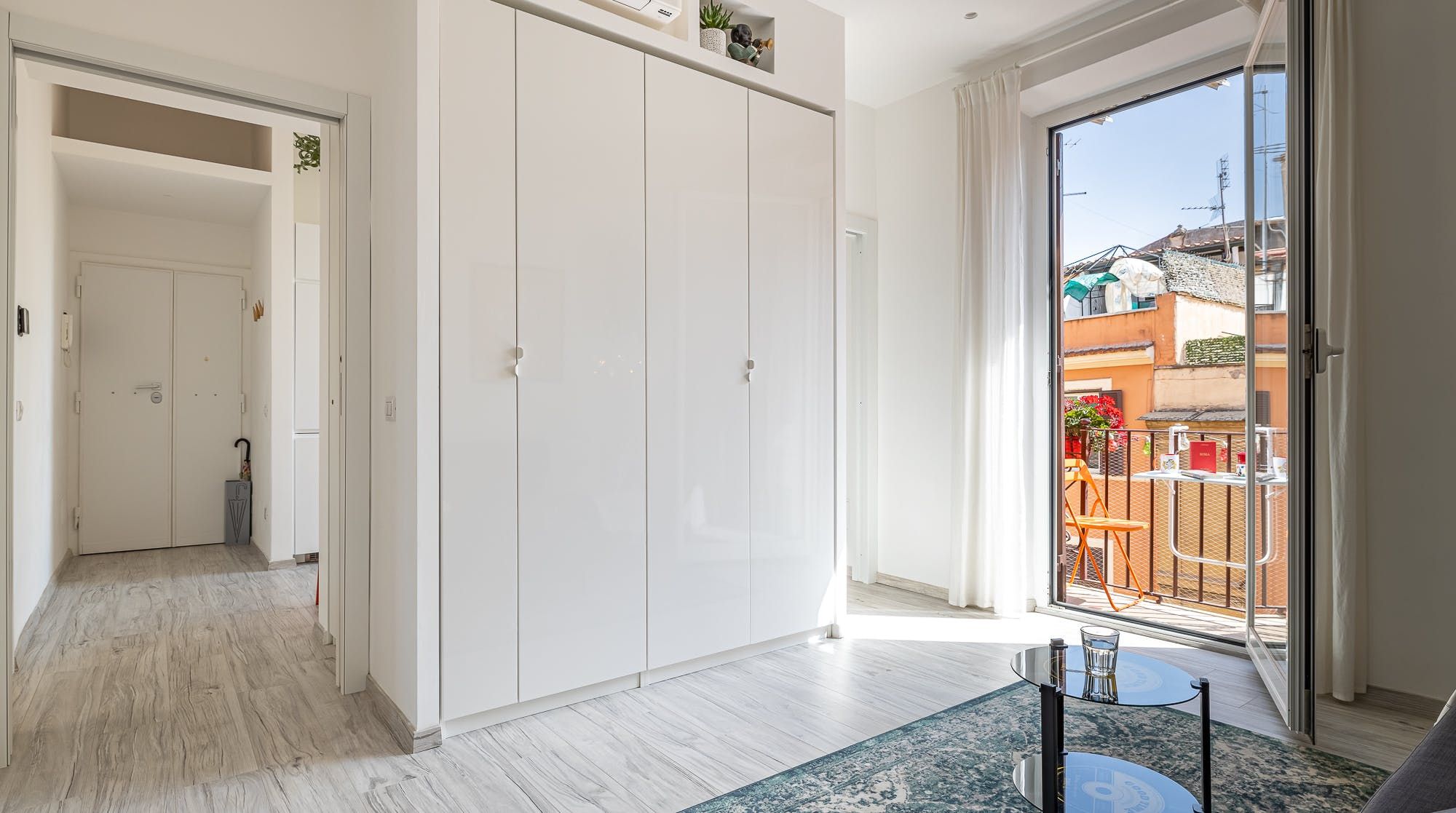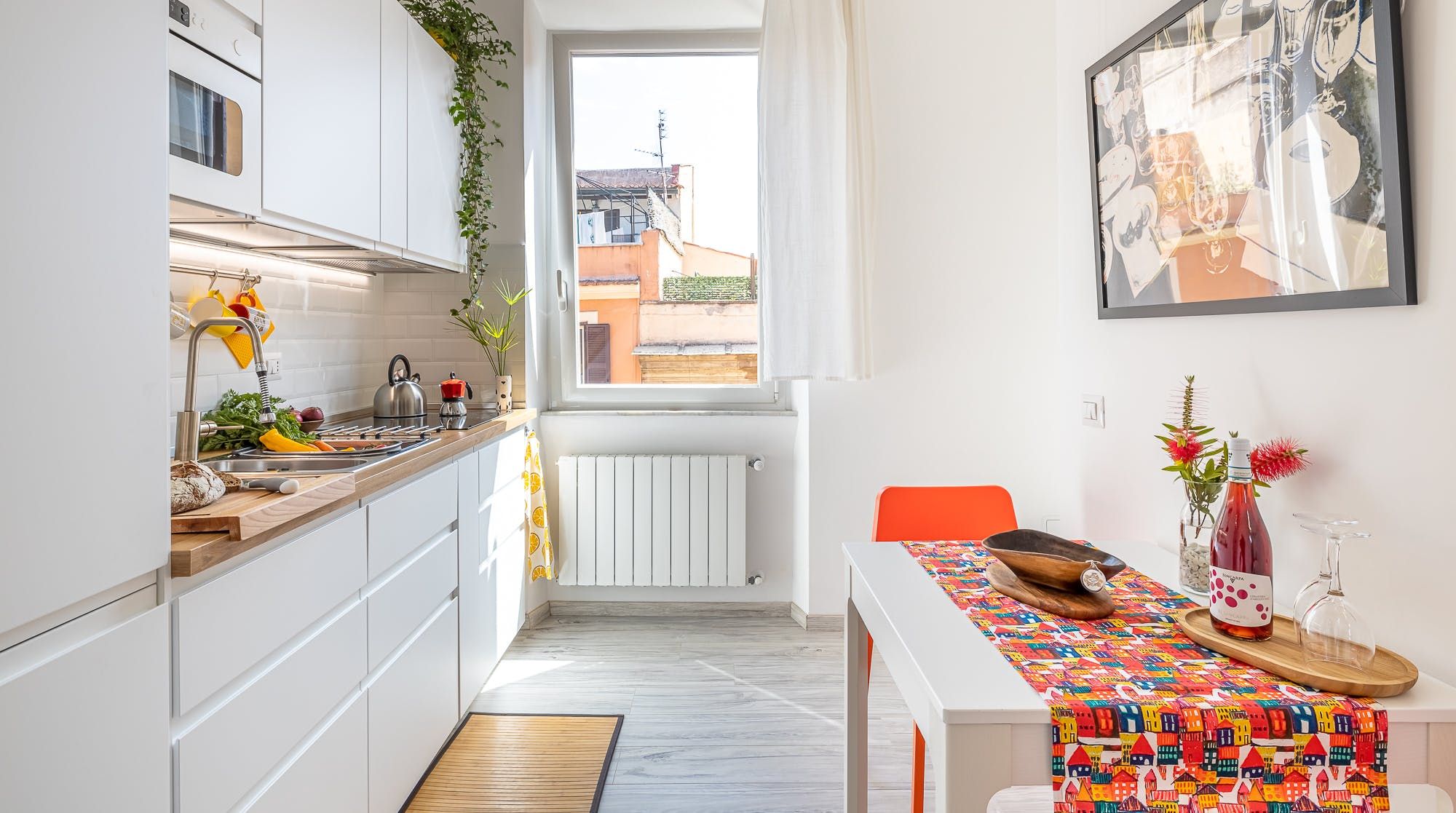 Step into the bright and inviting kitchen to rustle up a quick and delicious meal, and enjoy it either at the dining table or out on the balcony, where you can also gaze at the orange rooftops of Rome before you.