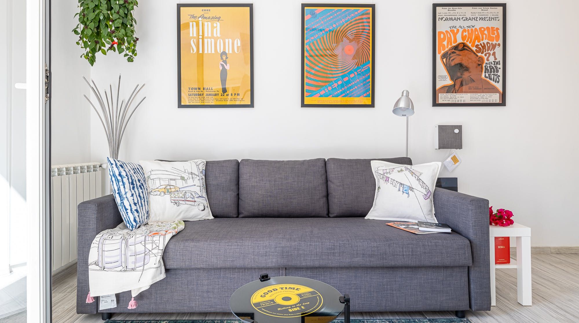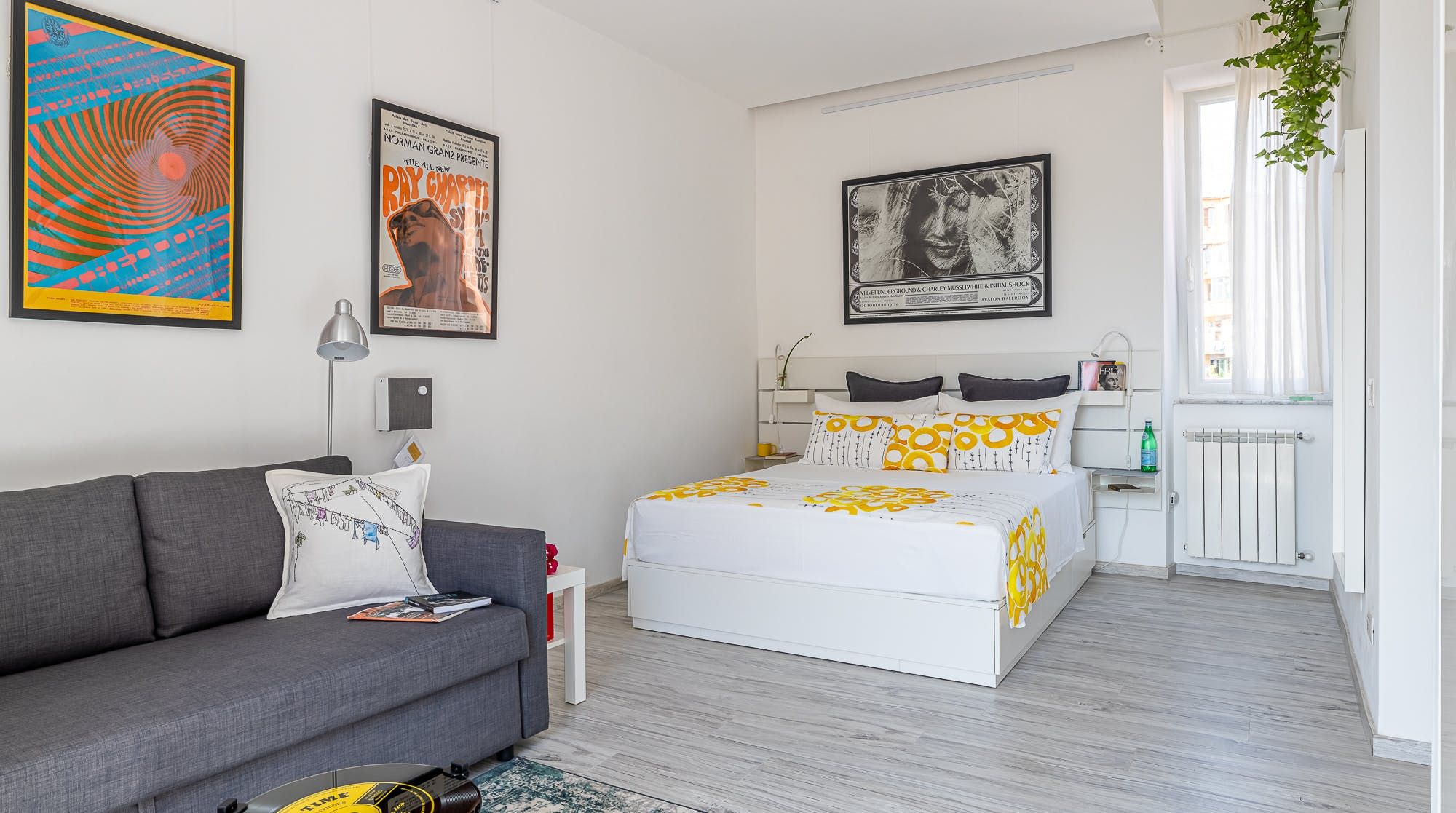You’ll likely fall under the spell of this loft gem the moment you step through the door: the living area is flooded with an abundance of natural light, courtesy of the floor-to-ceiling window. You can kick off your shoes and relax on the sofa, listening to your favourite tunes. We love the artwork on the walls, the record-shaped coffee table, and the lovely and unexpected pieces dotted around.