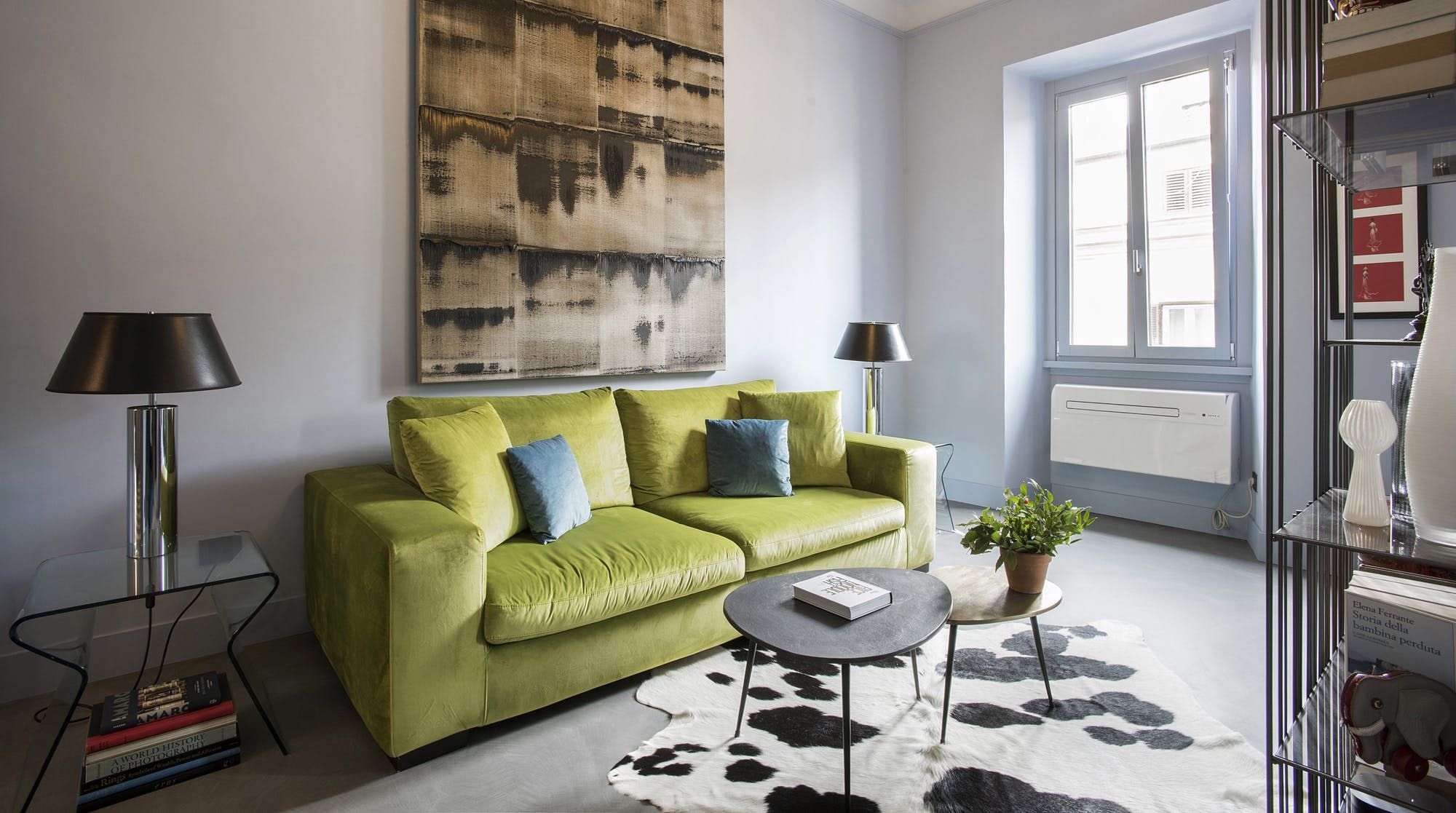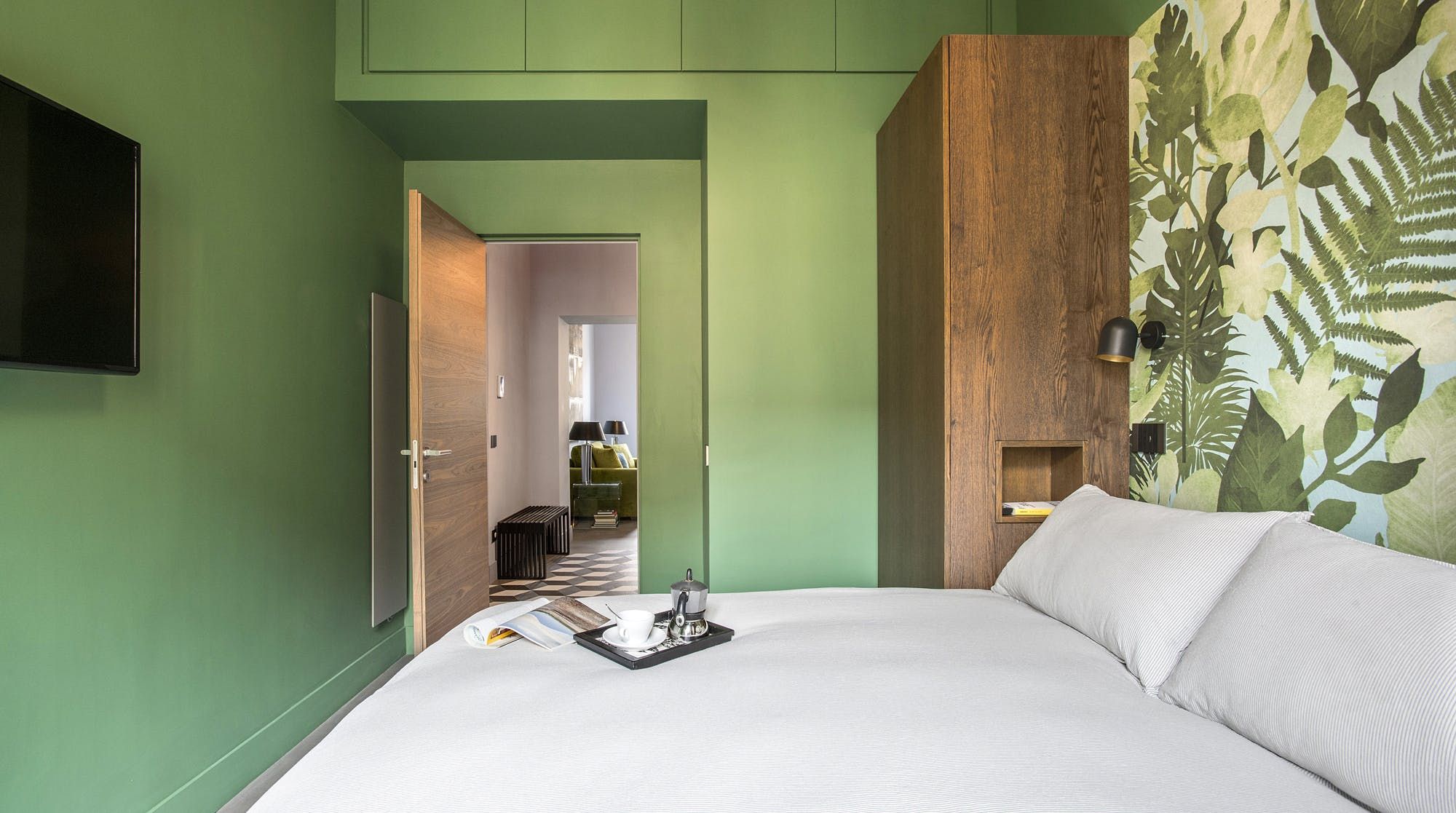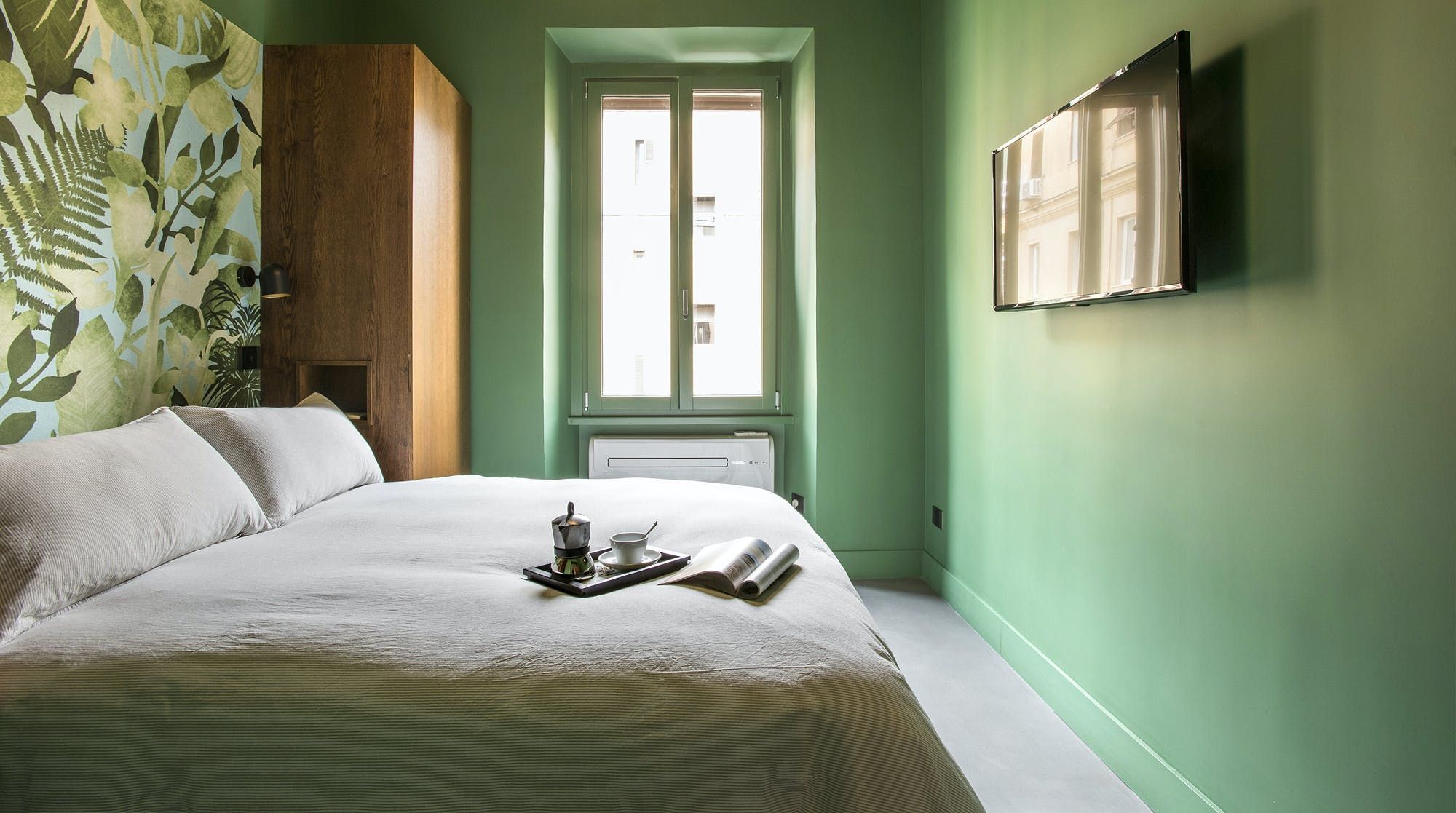 This stylish apartment is right around the corner from Termini, Rome's biggest train station, so there's no doubt that the transport links are excellent. But many of the must-see sights can also be reached on foot, including the magnificent Basilica Papale di Santa Maria Maggiore five minutes away and The Colosseum just a little further, about a twenty-minute stroll. After fueling up on pasta and gelato at Mercato Centrale Roma across the street, set off for the Trevi Fountain, The Pantheon and The Spanish Steps, all reachable in under half an hour. When you're not off exploring, shopping or sipping Italian wine at one of the bars in this area, rest your tired feet back at home. We love the bold green colours and funky design – picture cowhide rugs, vibrant pop art and leafy wallpaper in the bedroom. The bathroom is also one of our favourites – it has a huge walk-in rain shower that's the perfect way to relax after a busy day. And this pad has more than enough room for two, so there's plenty of space to make yourself at home. In the evenings, pour yourself an aperitif and rustle up a feast in the contemporary kitchen, then end the night with Netflix in bed, nodding off while to the sound of your favourite shows.