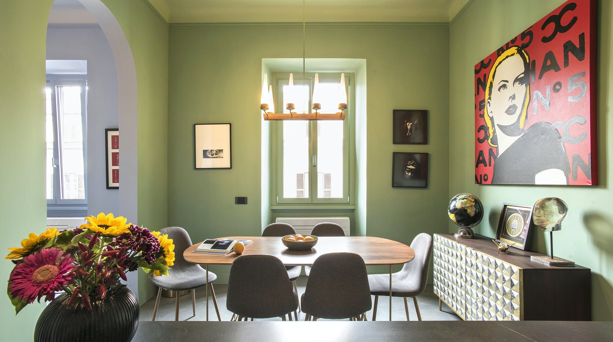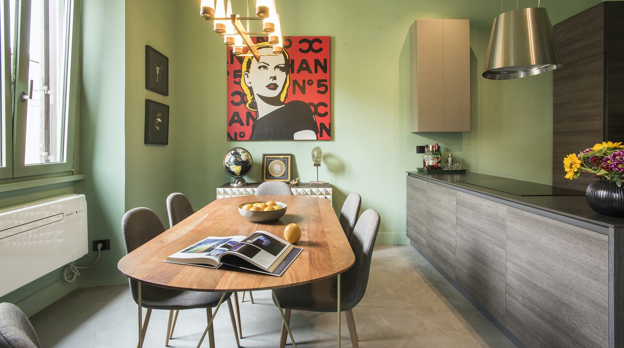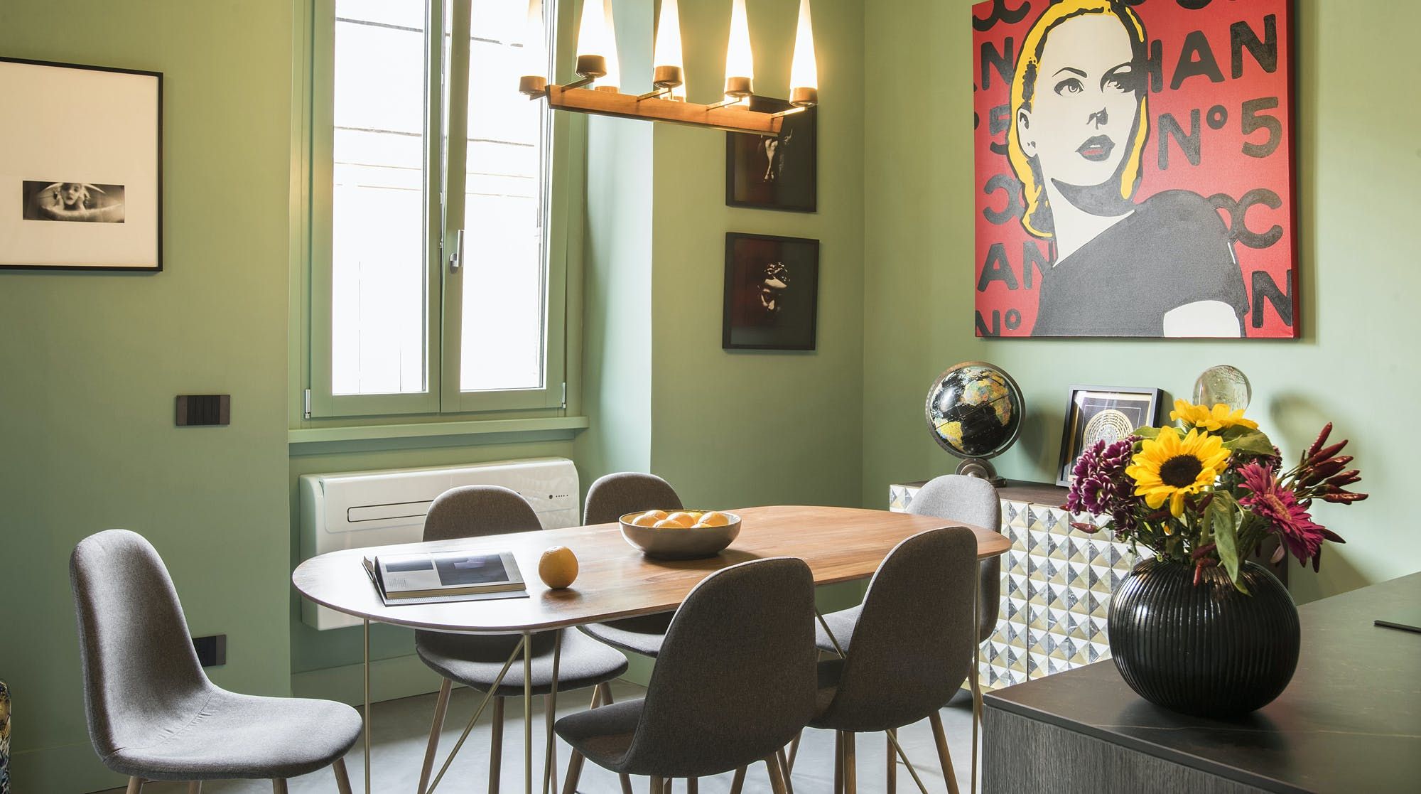 This stylish apartment is right around the corner from Termini, Rome's biggest train station, so there's no doubt that the transport links are excellent. But many of the must-see sights can also be reached on foot, including the magnificent Basilica Papale di Santa Maria Maggiore five minutes away and The Colosseum just a little further, about a twenty-minute stroll. After fueling up on pasta and gelato at Mercato Centrale Roma across the street, set off for the Trevi Fountain, The Pantheon and The Spanish Steps, all reachable in under half an hour. When you're not off exploring, shopping or sipping Italian wine at one of the bars in this area, rest your tired feet back at home. We love the bold green colours and funky design – picture cowhide rugs, vibrant pop art and leafy wallpaper in the bedroom. The bathroom is also one of our favourites – it has a huge walk-in rain shower that's the perfect way to relax after a busy day. And this pad has more than enough room for two, so there's plenty of space to make yourself at home. In the evenings, pour yourself an aperitif and rustle up a feast in the contemporary kitchen, then end the night with Netflix in bed, nodding off while to the sound of your favourite shows.