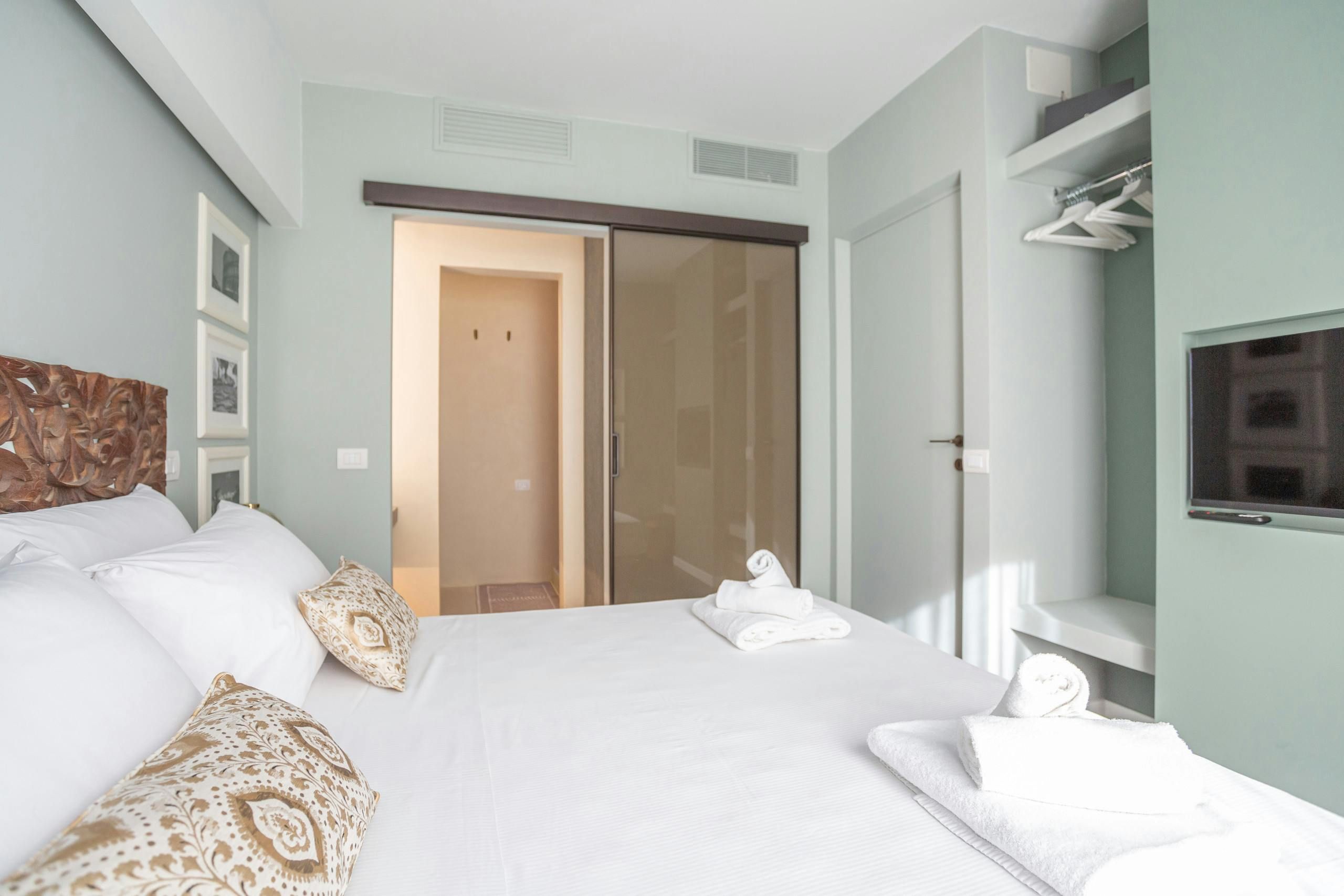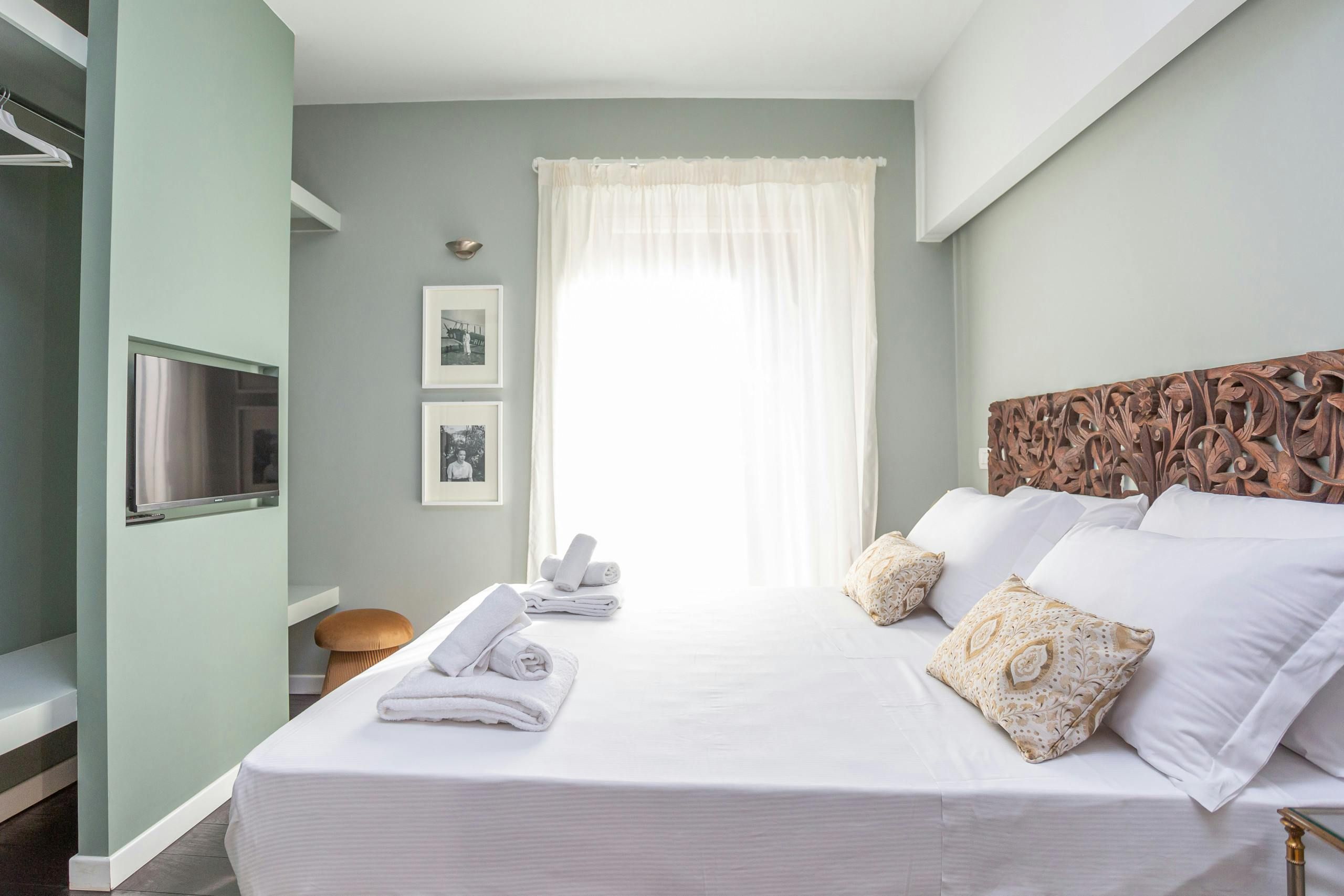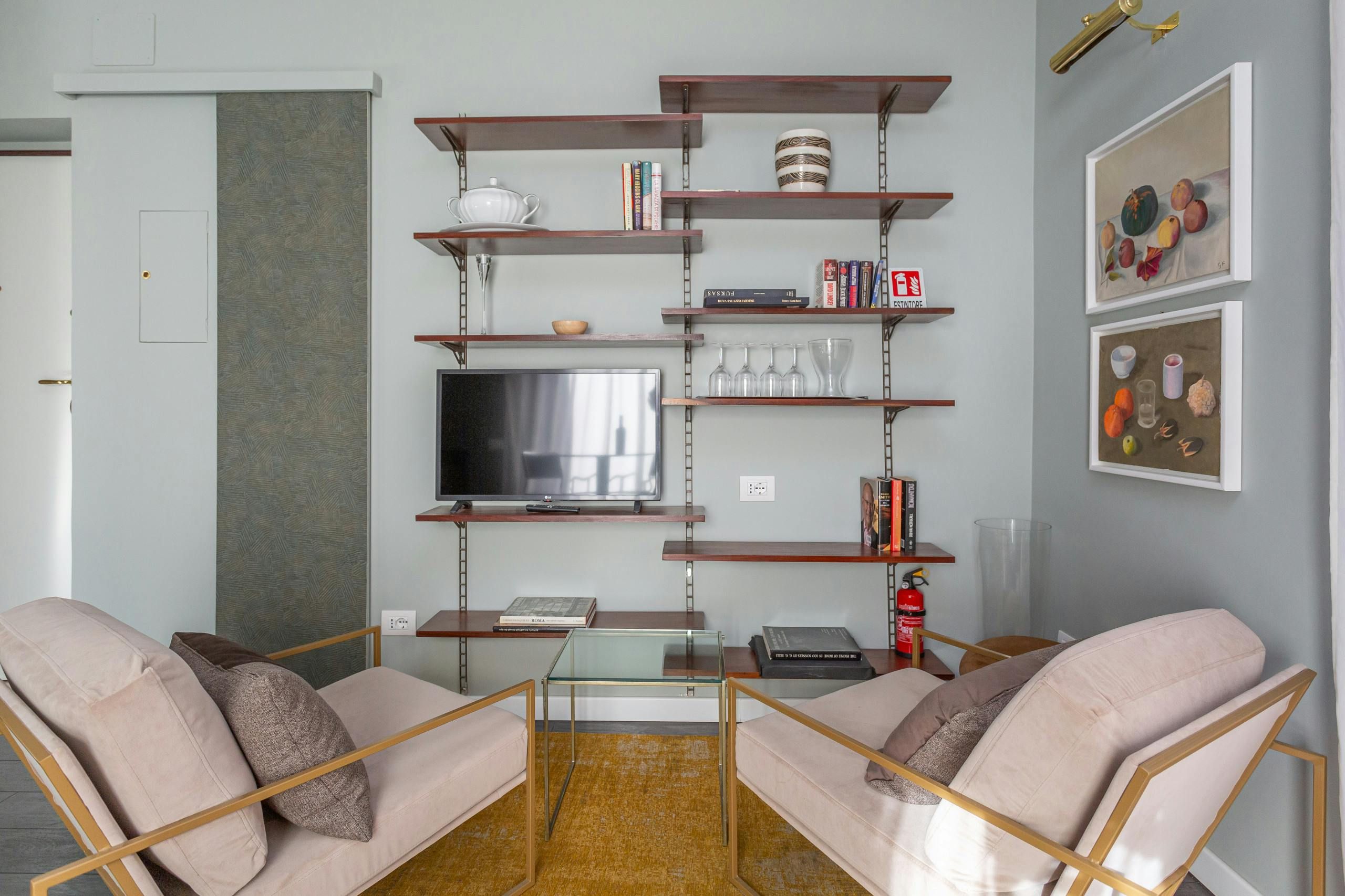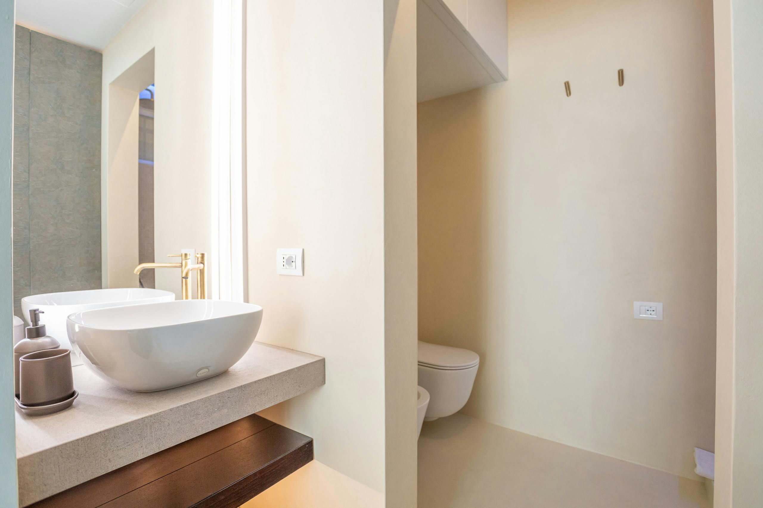 Situated a short stroll from both the Spanish Steps and the Trevi Fountain, this apartment has a fantastic location for exploring Rome. The Pantheon, the Roman Forum and much more are also within walking distance. There are a variety of shops, cafes and restaurants in the neighbourhood to enjoy too. From this home’s open-plan living space, there are wonderful views of the Basilica of Saint Mary in Cosmedin. You can take in the vistas from the dining table. The kitchen area is quite compact, we would say – there’s no oven, but there’s a hob and a microwave. But, with an address as great as this, will you be spending much time at the apartment?