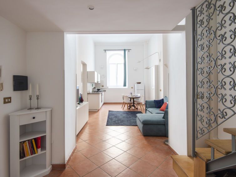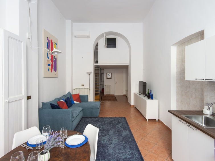 "Il Nido", 3-room apartment on 2 levels. Comfortable furnishings: living/sleeping room with 1 double sofabed, dining table and kitchen corner. Open kitchen (oven, dishwasher, 4 gas rings, kettle, electric coffee machine). Shower/bidet/WC. Upper floor: 1 small double bedroom. 1 small room with 2 beds.