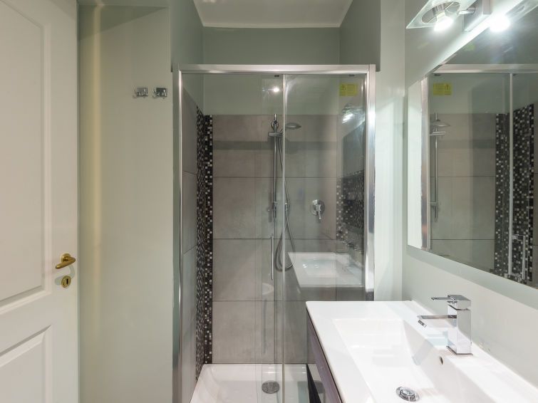 "Porta Magica", 4-room apartment 120 m2 on 2nd floor. Spacious and bright, modern and luxurious furnishings: large living/dining room with TV. 1 double bedroom with 1 double sofabed. 1 double bedroom with 1 sofabed and shower/bidet/WC. 1 double bedroom. Small, open kitchen (4 hot plates, kettle, electric coffee machine) with dining table.
