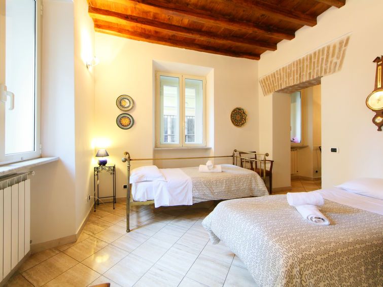 Plus: very warm welcome from Claudio, large apartment, plenty of beds, 2 bathrooms, large dining table for 8, location in Rome near Campo di Fiori and Navona. In -: no Wifi, cleaning could be improved, worn vacuum cleaner, dishwasher to be repaired, small TV, noisy boulevard despite double windows.