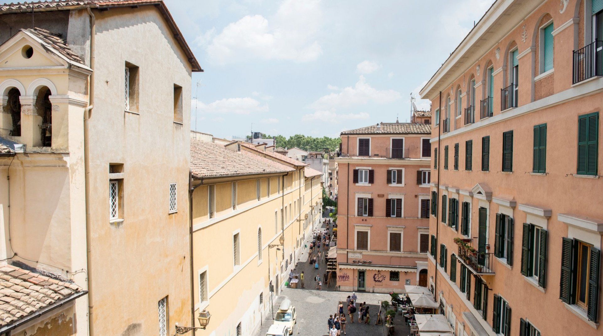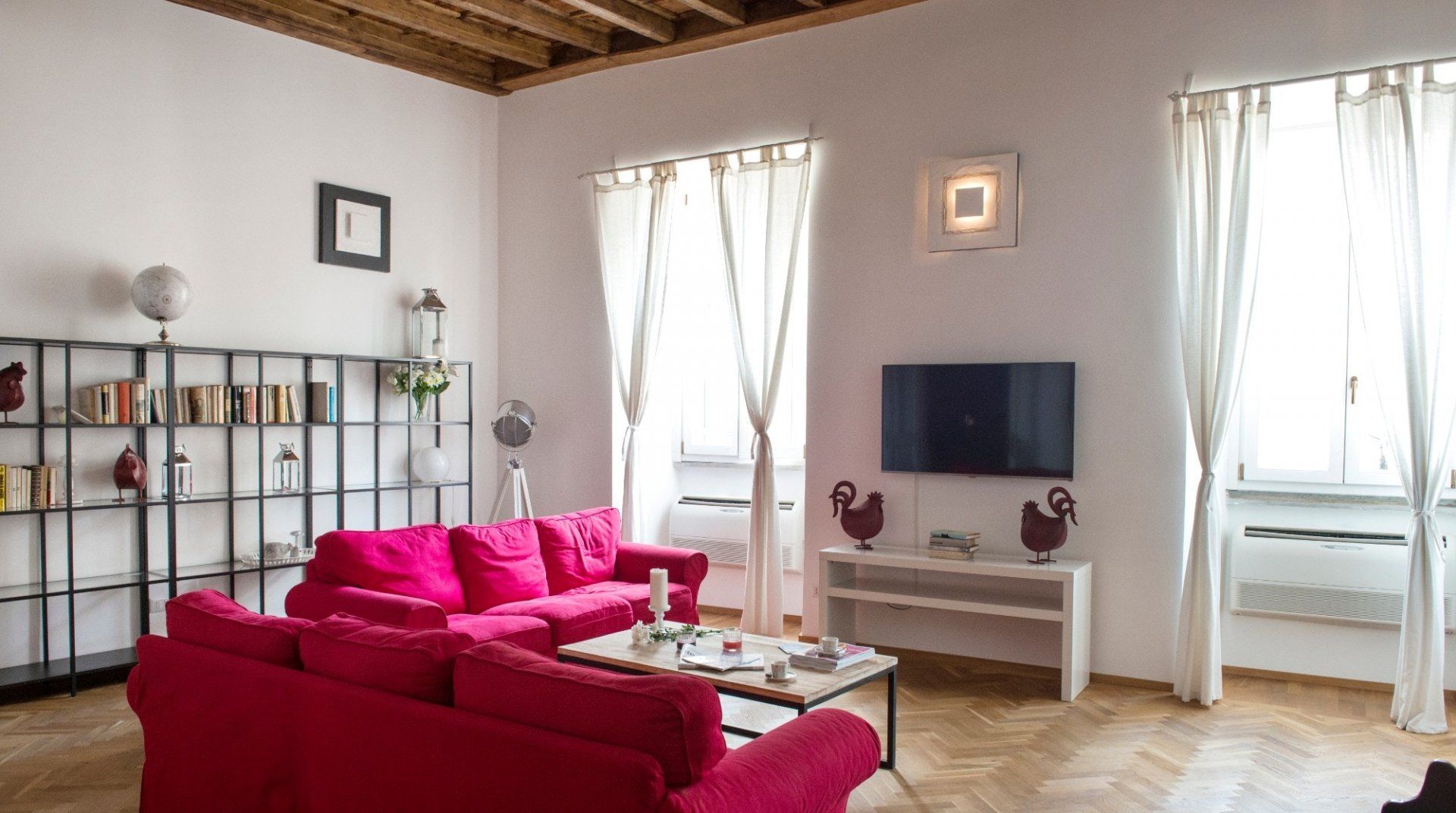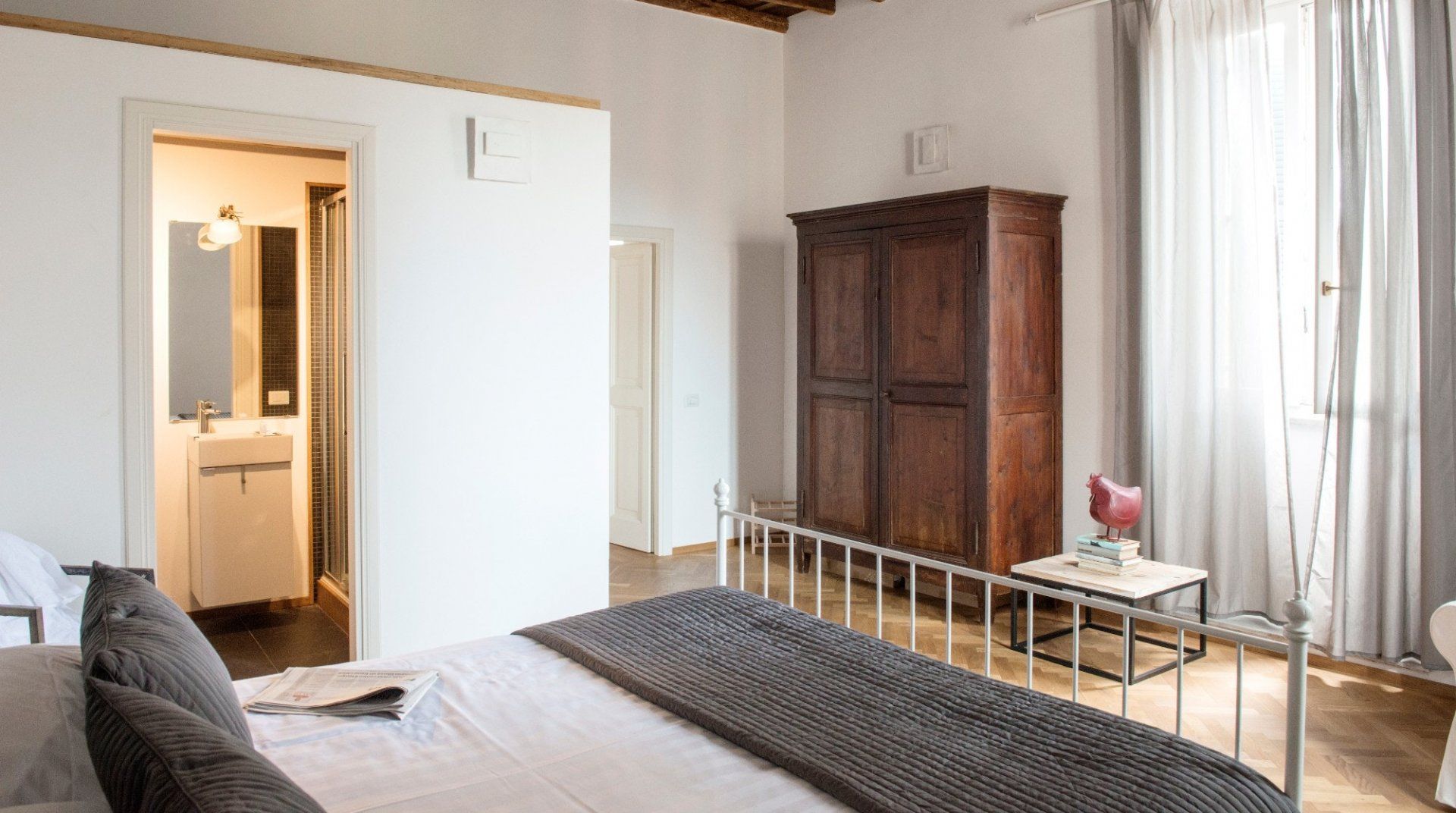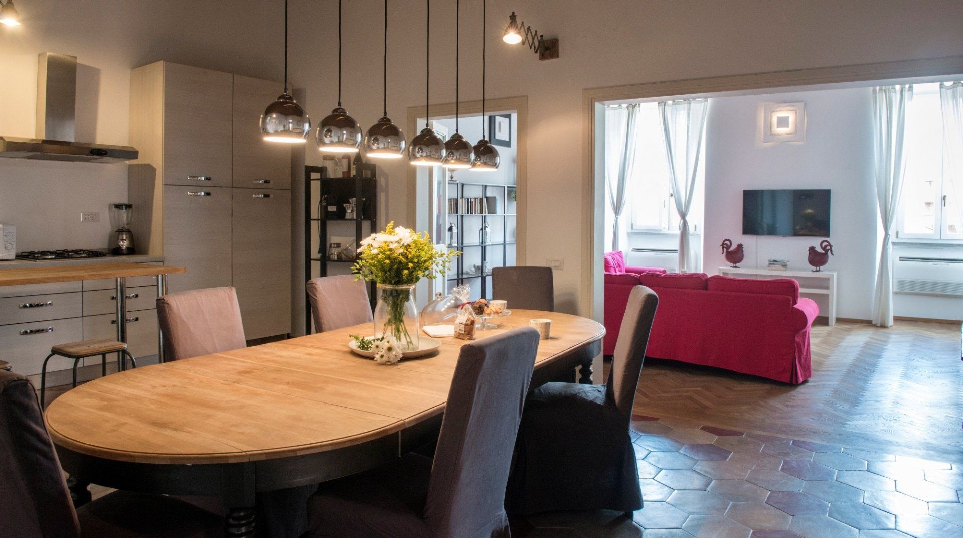 In the colourful, bohemian Trastevere district, you’ll find this spacious and light-filled apartment up in the eaves of an old building, between the Piazza di Santa Apollonia and the restless Piazza di Santa Maria. The design of the home is functional and serviceable with everything you need for a comfortable stay. The open-plan living-dining arrangement is great for bigger groups while enjoying Prosecco Negronis before heading out to enjoy a famously unhurried dinner at a local trattoria. You’re just one typically winding Roman street away from the south bank of the River Tiber, where a twenty-minute walk via the Ponte Garibaldi takes you to the iconic Pantheon and a ten-minute car ride places you right in the heart of the Vatican City.