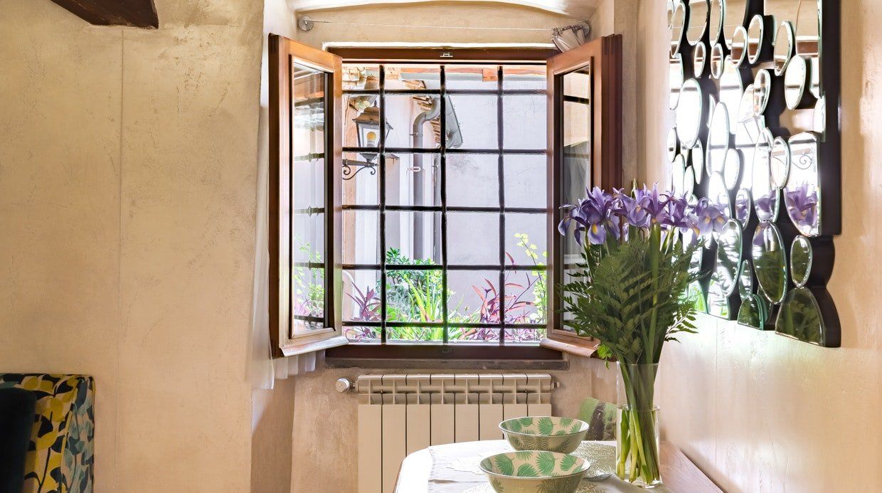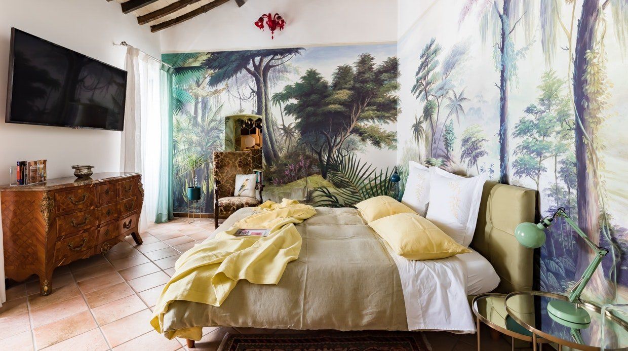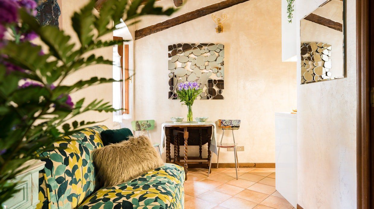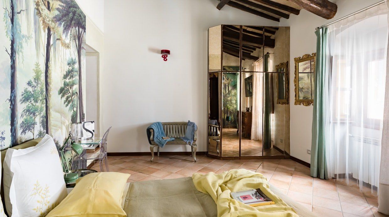 This eccentric home is a little gem on the edge of Regola and overlooking the Campo de' Fiori market. It occupies the top floor of a historic fifteenth-century building that once belonged to Vannozza dei Cattanei, courtesan and lover of Cardinal Rodrigo Borgia, whose family crest still adorns the outside. There's no getting away from the fact that the living room is small, but there is just about space for an extra person on the bed. Really, though, this flat is all about the bedroom. The wallpaper is the first thing you notice, but pretty much every detail has been carefully thought through, and they all come together wonderfully. The host, Paola, lives on the same floor of the building, so she's always close by should you need anything during your stay.
