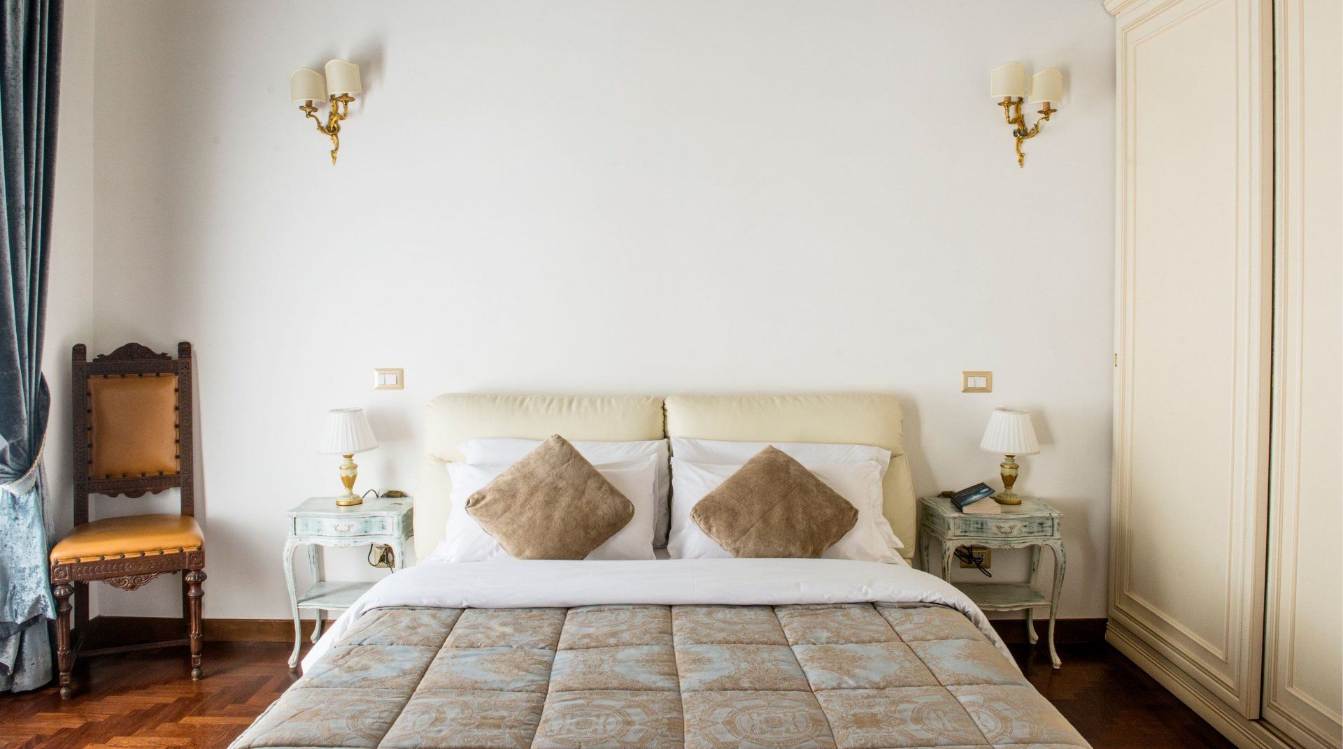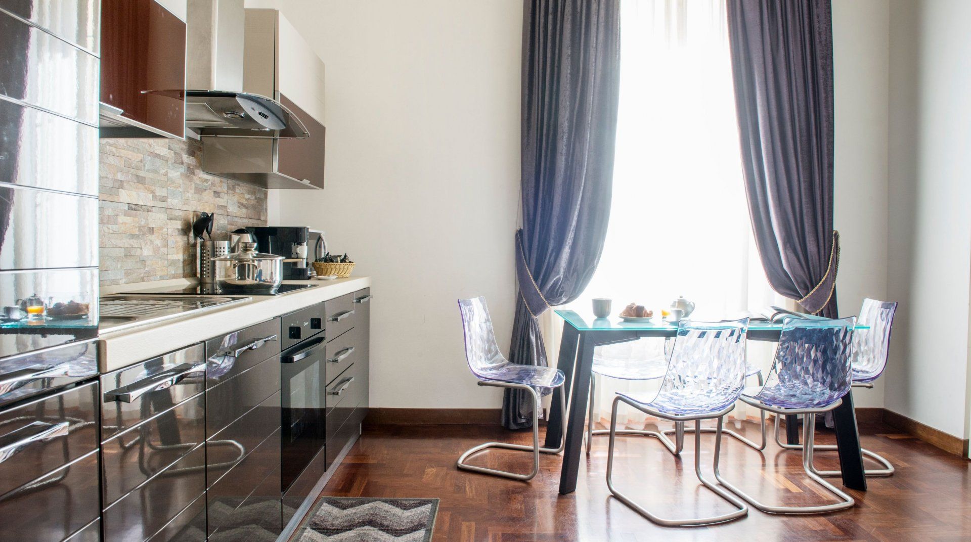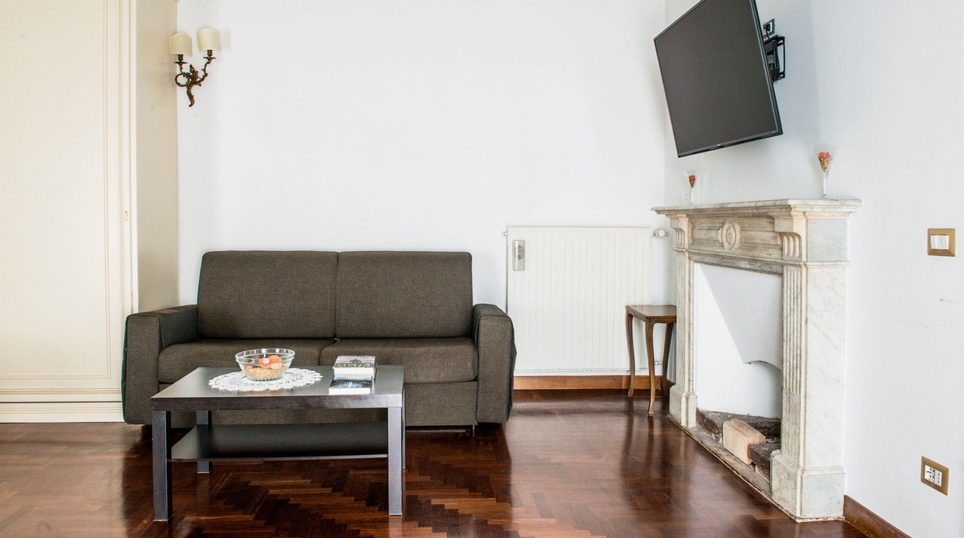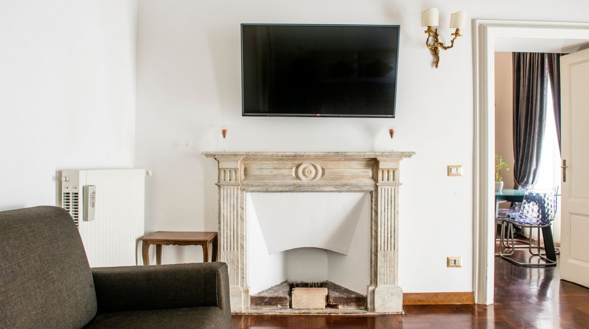 Catherine Wheel feels far bigger than it should thanks to the high ceiling, which is beautifully decorated and gives the flat its focal point. There are a few other pretty period details, like the fireplace (unfortunately only for show, these days) and a little balcony overlooking the street. You’re in a very convenient location, although not the most evocative. But the station is nearby and you’re a bit removed from the throngs of tourists that seem to march back and forth between the Trevi fountain and the Spanish Steps.