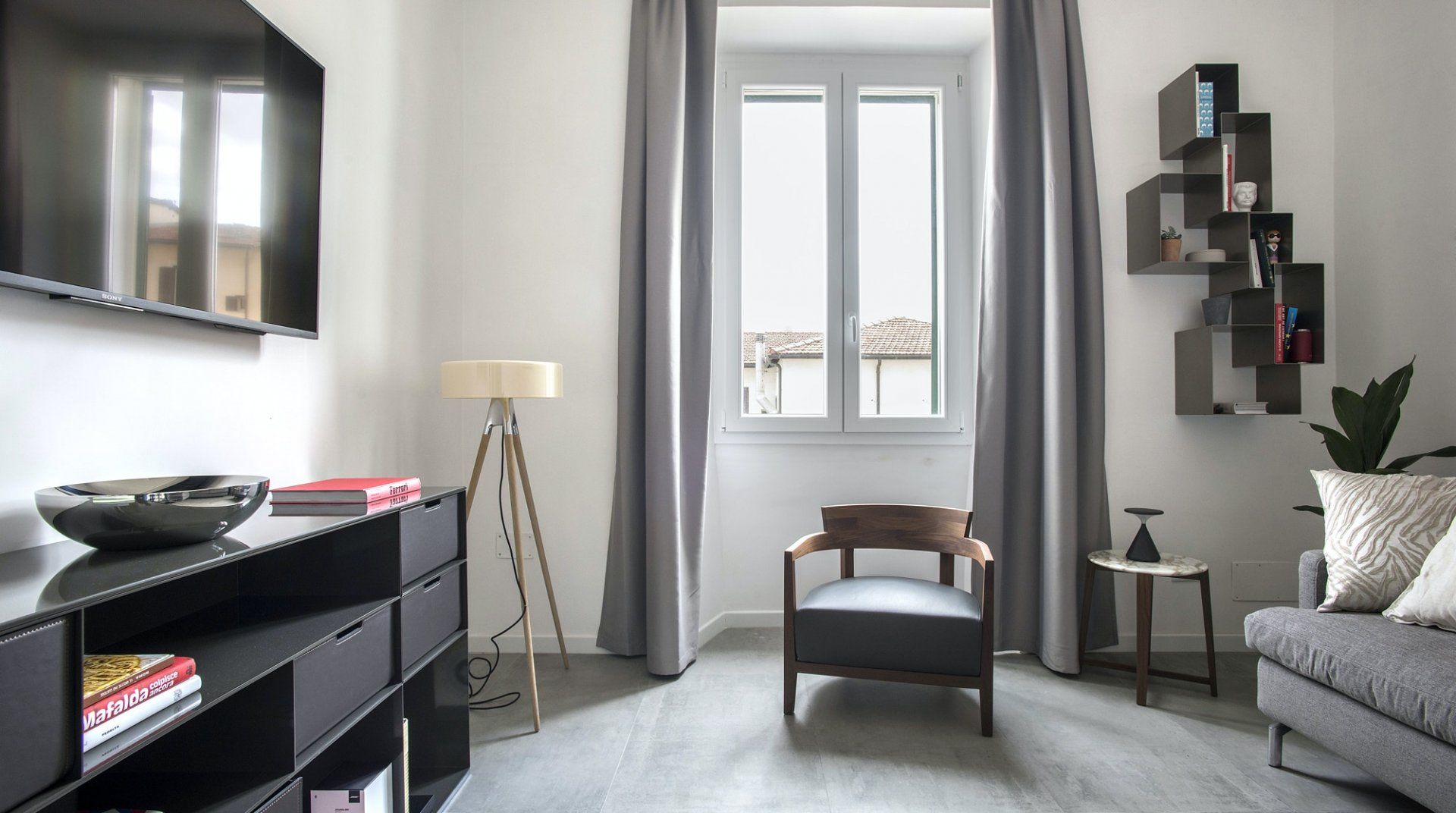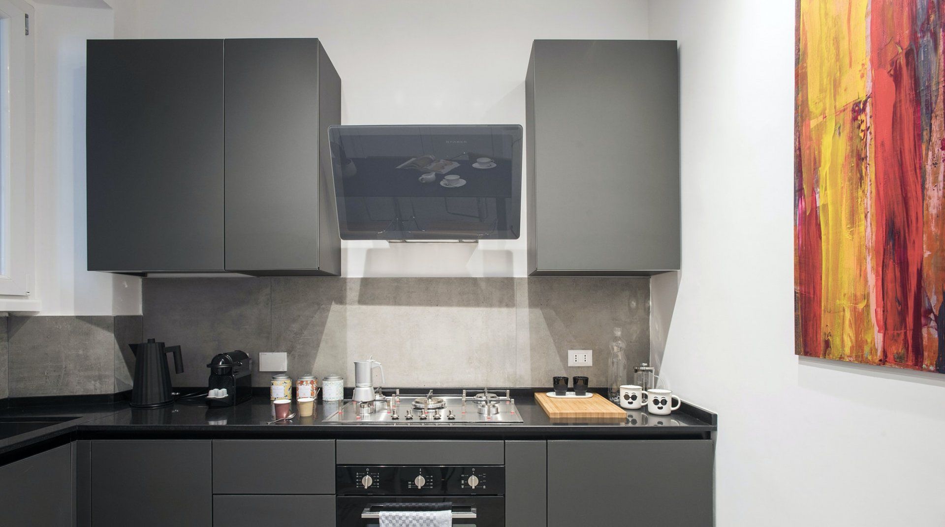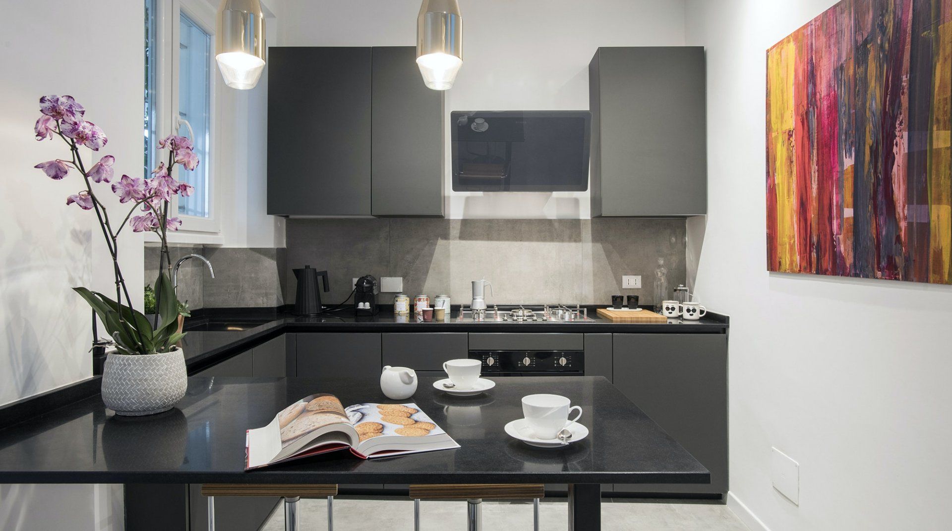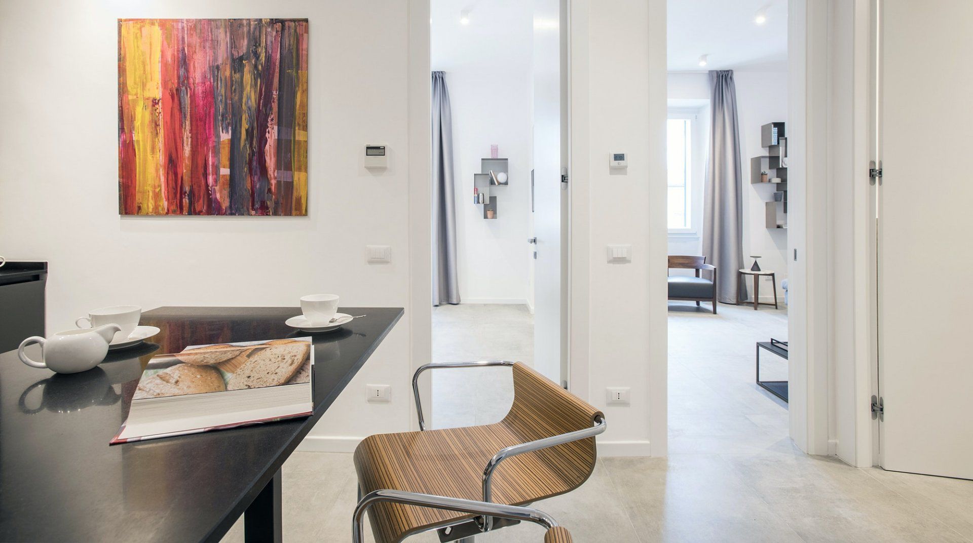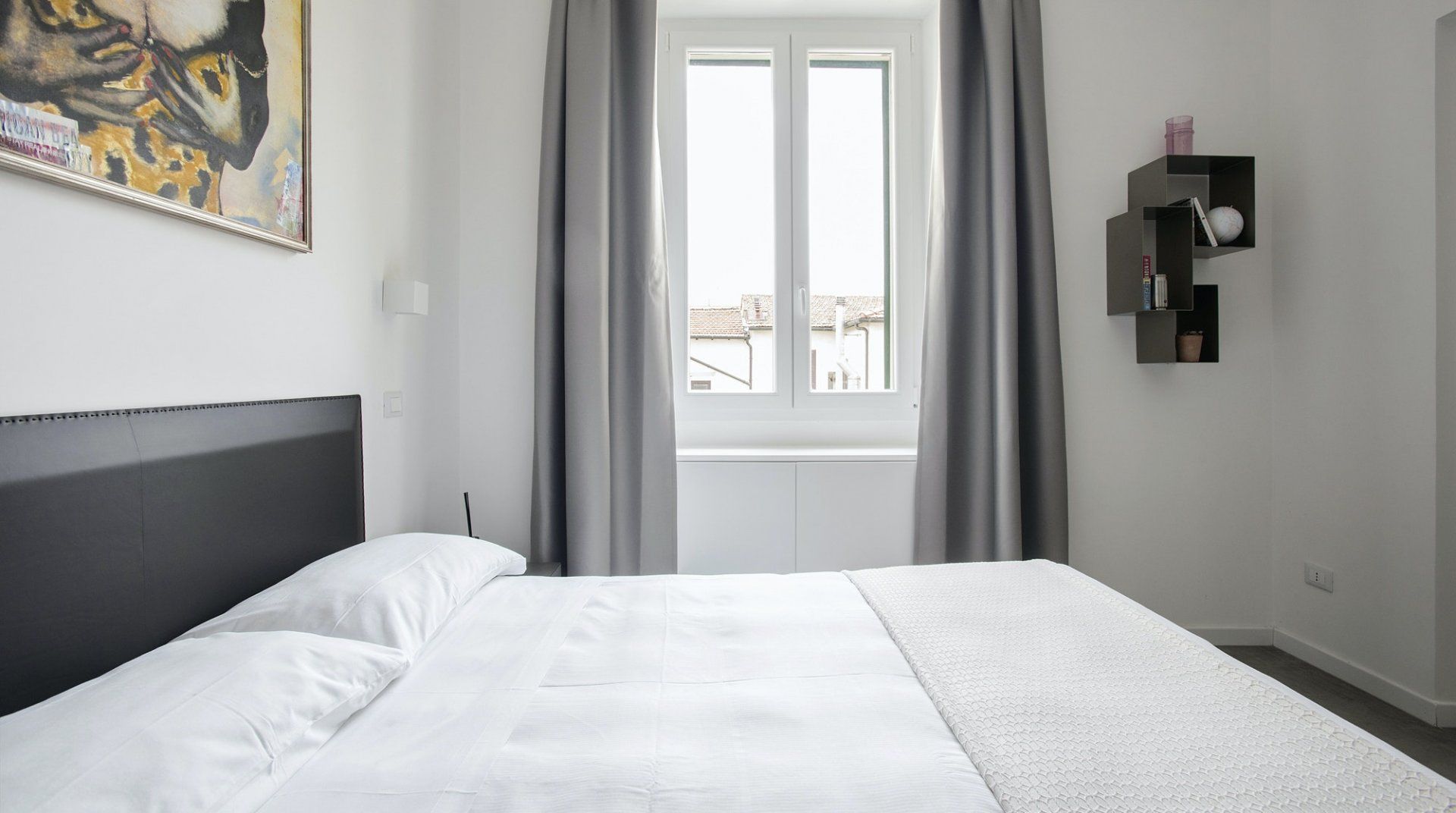Positioned bang in the heart of the historic Trastevere district of Rome, there's no better location than this elegant escape – especially if it's a picturesque and authentically Italian experience that you're looking for. Along the cobbled streets, endless eateries, bars and boutiques welcome both locals and tourists with open arms. You'll see people sipping Aperol spritz in the summertime, and red wine come winter, but out on the terraces whatever the weather. Dubbed as the historic centre of Rome, this humble home boasts an idyllic location, just minutes from the city's most notable museums and monuments. Stroll across the River Tibet for twenty-five minutes and you'll wind up at the Roman Forum where you'll spend hours exploring and unearthing its history. From there continue on to the Colosseum, before heading back home for some well-deserved downtime. Enjoy panoramic views over the neighbouring rooftops as you take the elevator up to the top floor, where you'll find your apartment set away from the hustle of it all. Inside, contemporary interiors – carefully selected by local designer Beatrice Medici offer a notable contrast from the historic surroundings of the local area. While funky artwork brings colour to an otherwise minimal design style. Rest up in the bedroom which faces the back courtyard of the home and allows for increased privacy, as well as that all-important peace and quiet after an action-packed day.