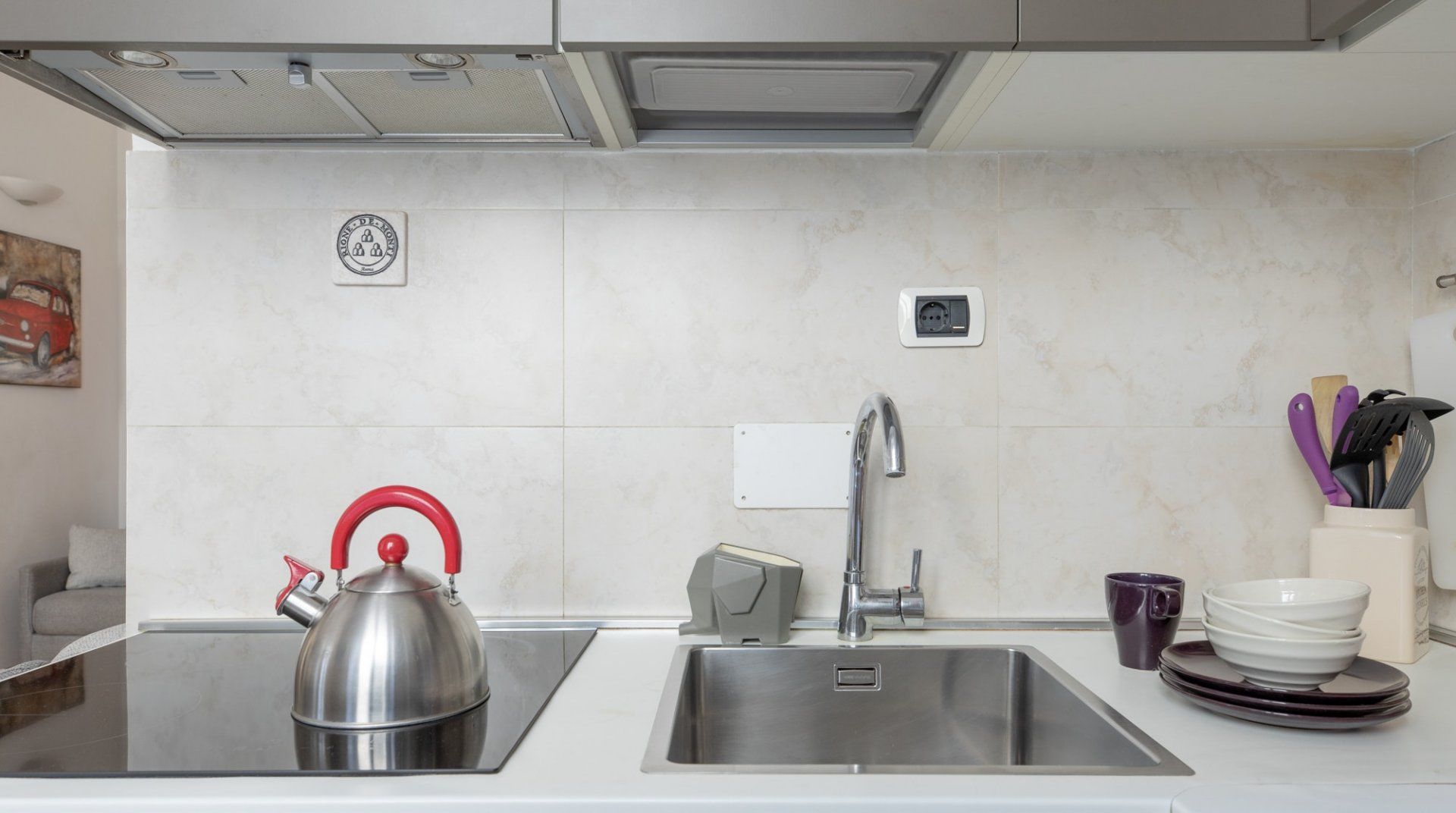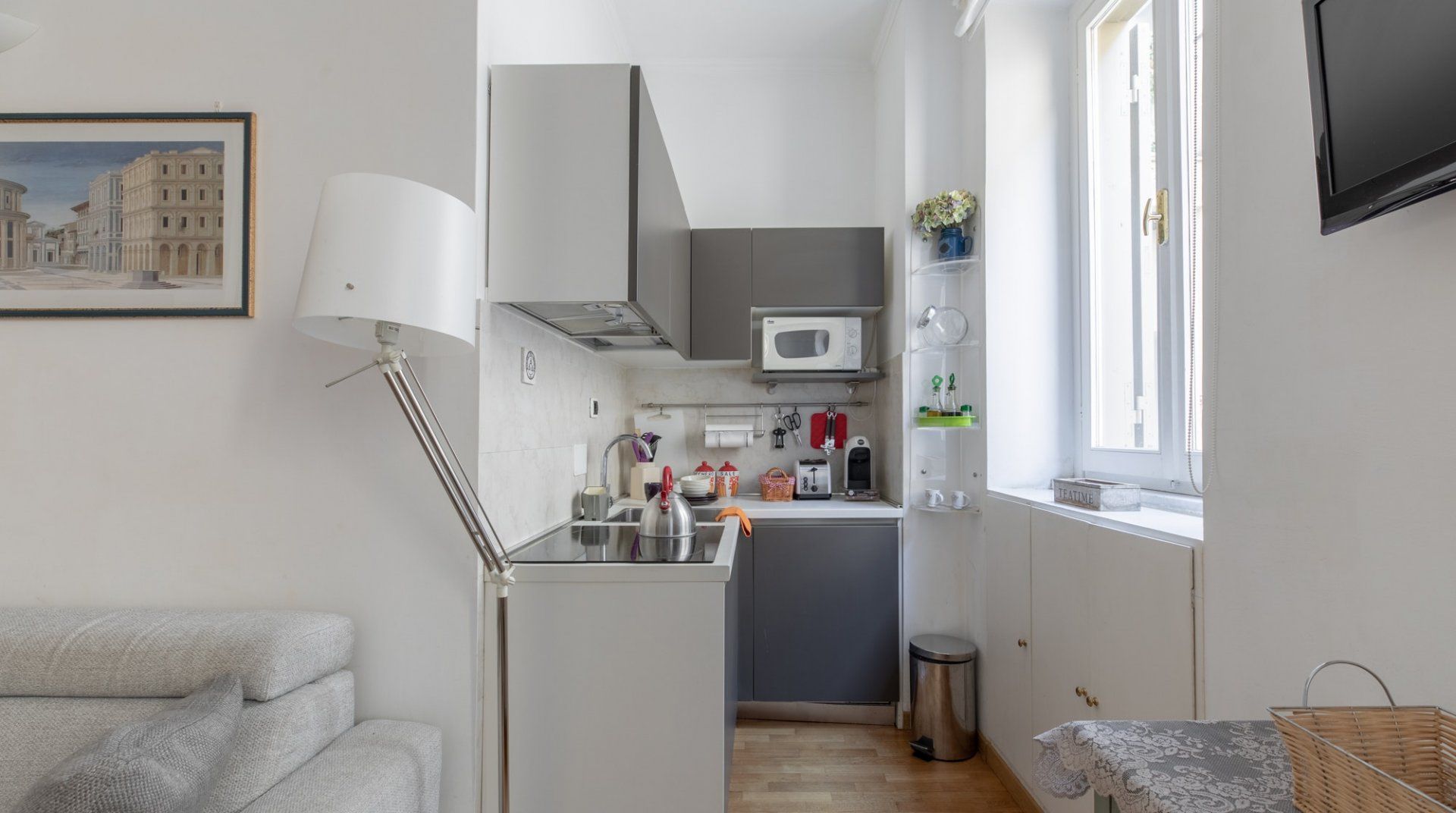 Back in this apartment, whip up a carbonara with some ingredients from the market in the kitchen if you don't fancy eating out. This home has an elegant neutral colour scheme enlivened by pretty artwork – we especially love the cute vintage Fiat 500 painting. This place is perfect for a couple, solo traveller or business professional looking for a stylish and charming address close to many of Rome’s most popular attractions.