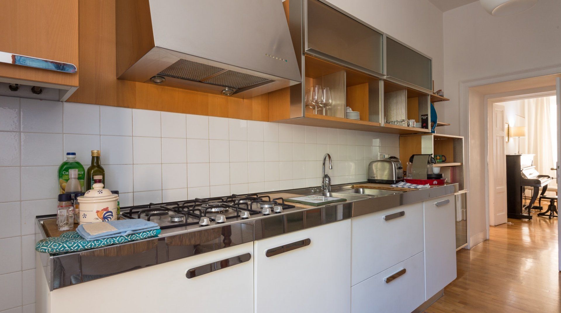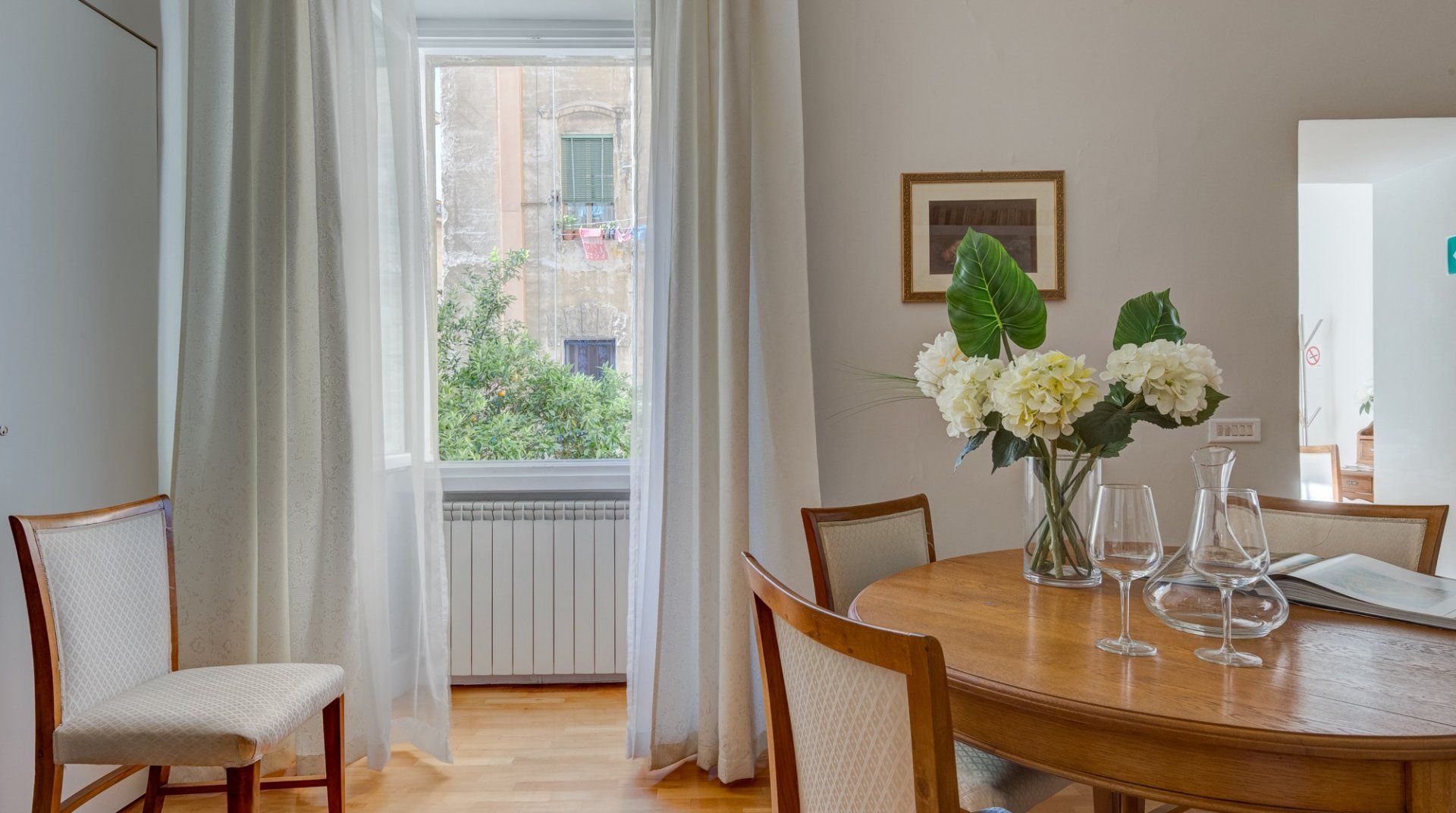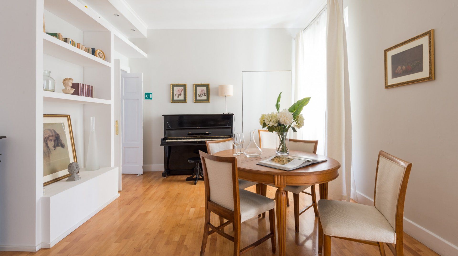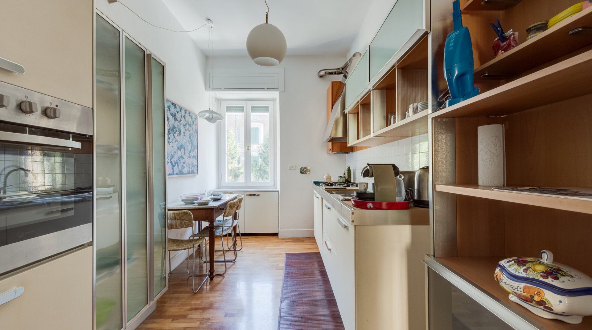 This home has a fantastic location in upscale Prati – it's just over a ten-minute walk to the Vatican Museums, while the high-end boutiques in Via Cola di Rienzo are a twenty-minute stroll away. You'll also find an array of bars and gourmet restaurants on your doorstep. Trionfale Market, on the other hand, with its food and flower stalls, is just over a five-minute saunter. So, take some fresh produce back to this home and whip up a Roman-style feast to enjoy in the elegant dining area. Later, entertain your guests at the piano here, or relax with a glass of prosecco. In the morning, fling open the French doors in the bedroom, then enjoy a hearty breakfast before starting another exciting day exploring all the Eternal City's wonderful sights.