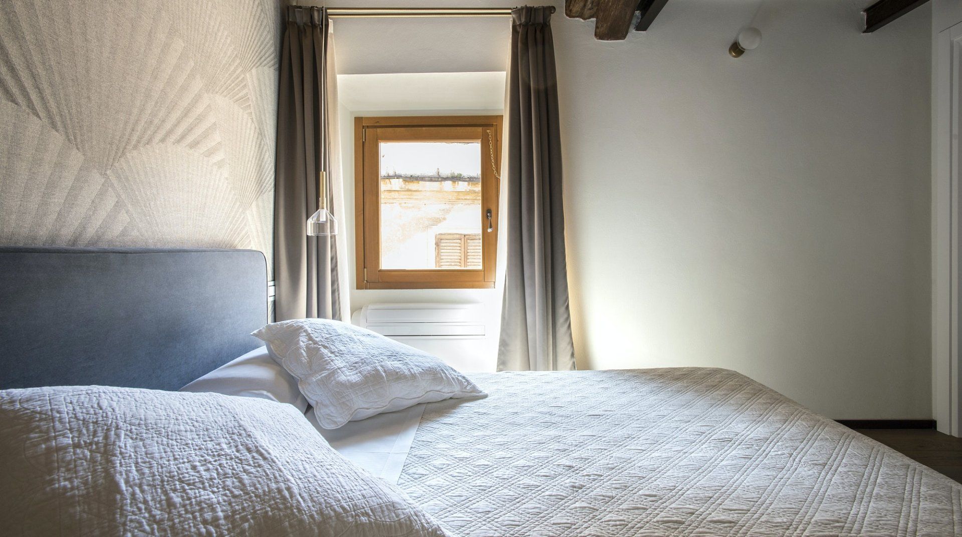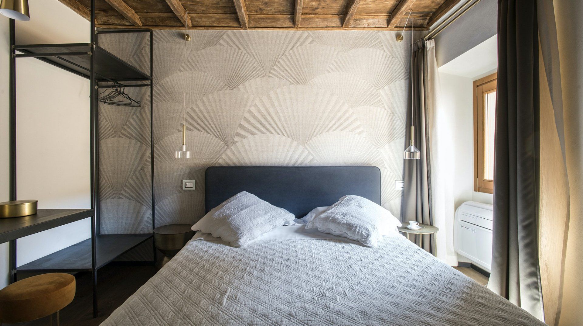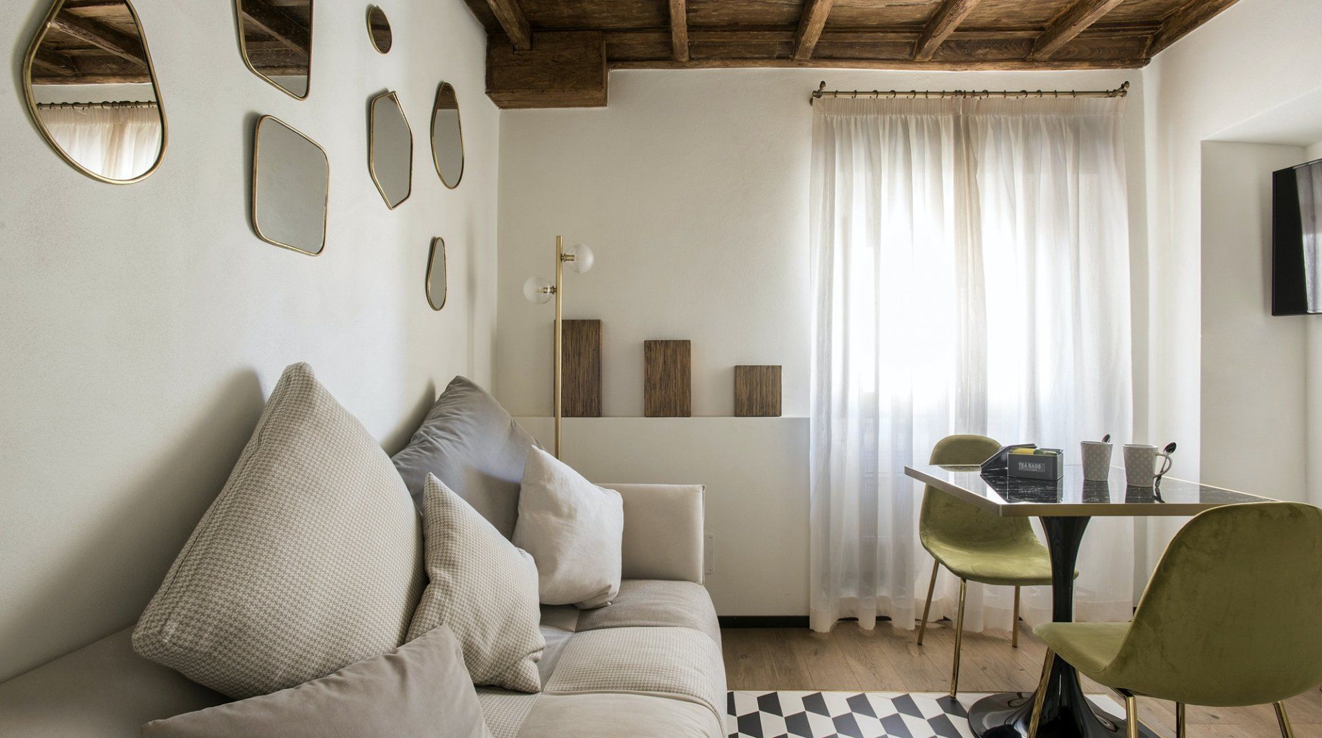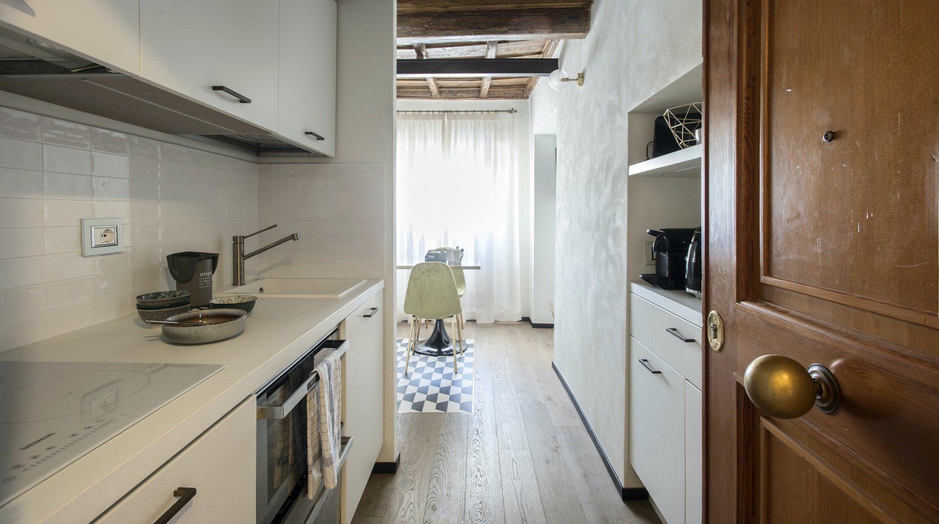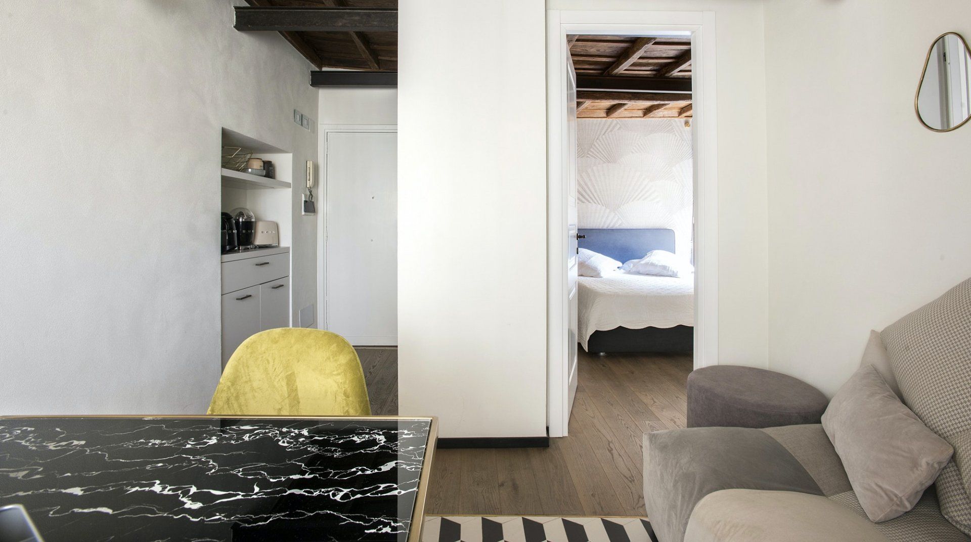 Step out of your building’s front door to be immediately greeted by the Colosseum at the end of the road. It’s an unrivalled location and despite neighbouring a global landmark, the quieter street retains a local charm. Inside, the apartment is wonderfully maintained with thoughtful design. The original character of the property shines – timber beams have been lovingly restored and counterpoint some of the more modern touches. We particularly liked the textured wallpaper above the bed and the matching set of Smeg kitchen appliances. After sipping an espresso and watching the daybreak over the Colosseum from your window, hit the pavements and get a closer look at Rome’s headline acts. The Roman Forum, Arch of Titus and the Via Sacra are all within a ten-minute walk. Plus, museums, piazzas and the iconic Pantheon are a seventeen-minute bus trip or ten-minute taxi ride away.