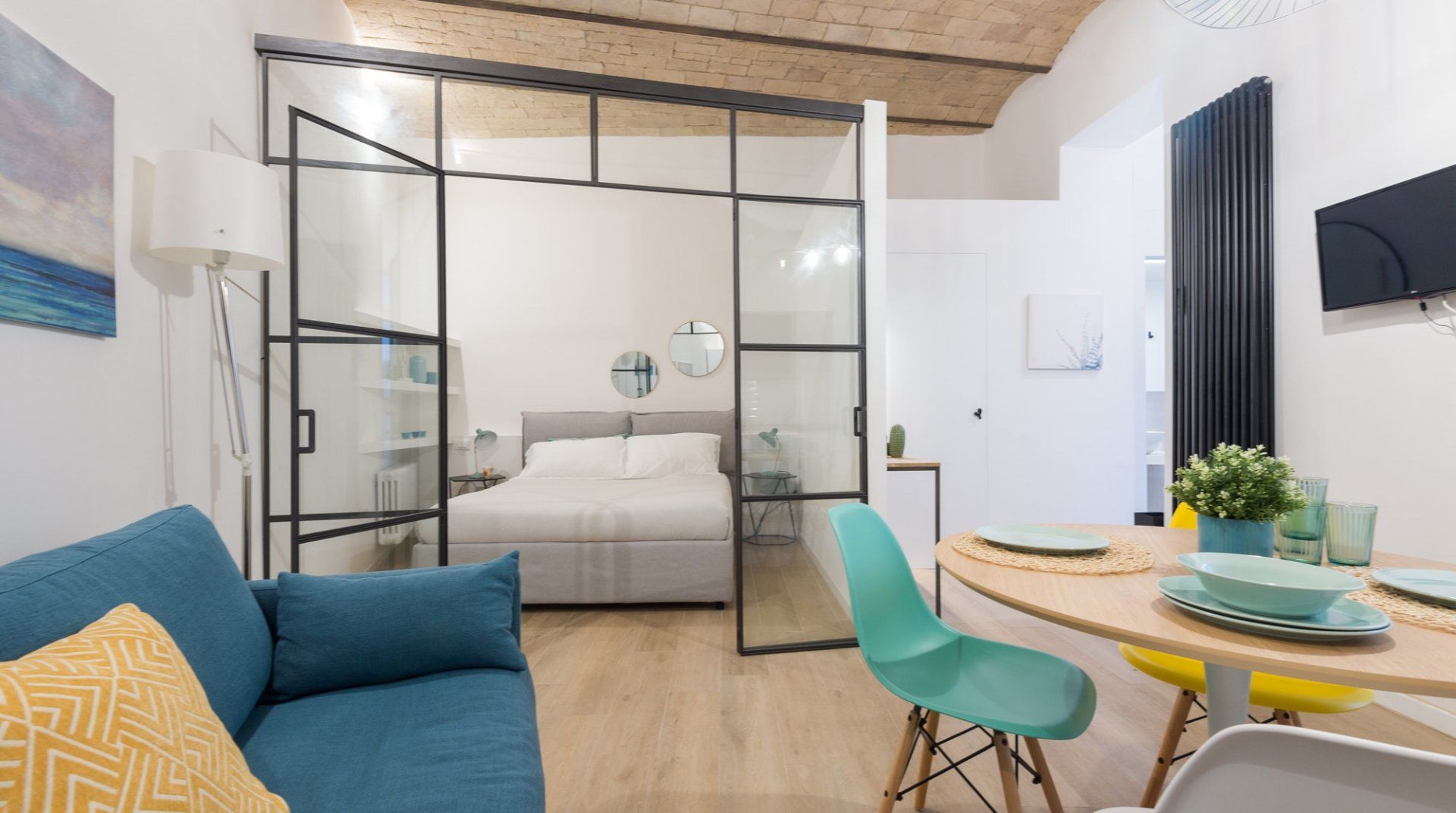 *Two people can sleep on a sofa bed, but they'd have no privacy due to the glass wall of the bedroom