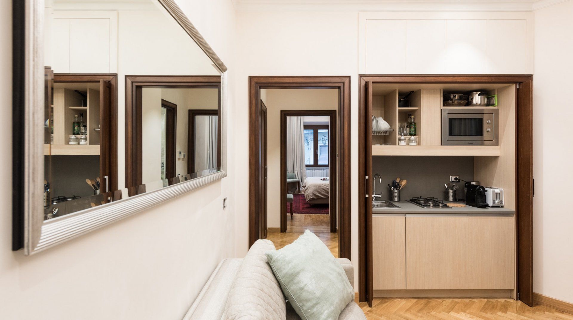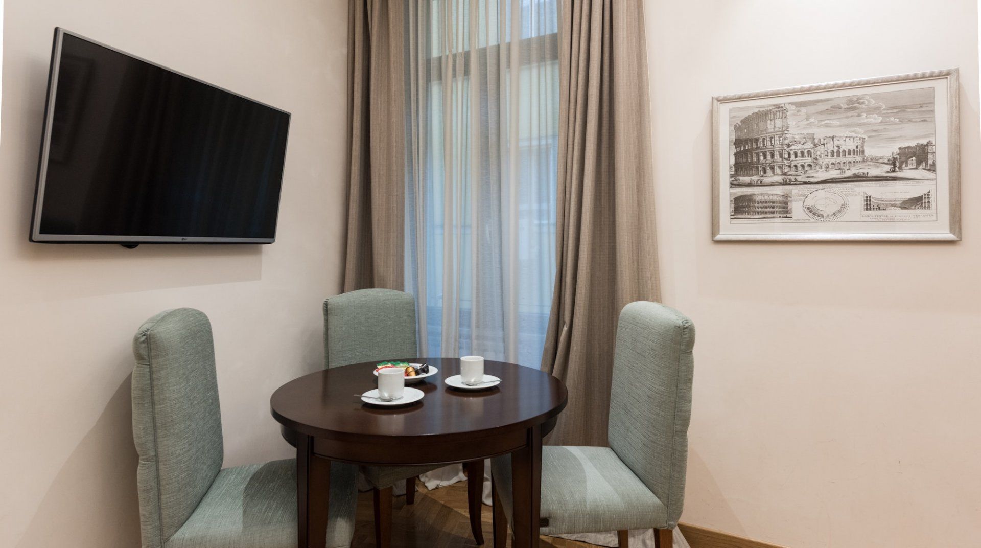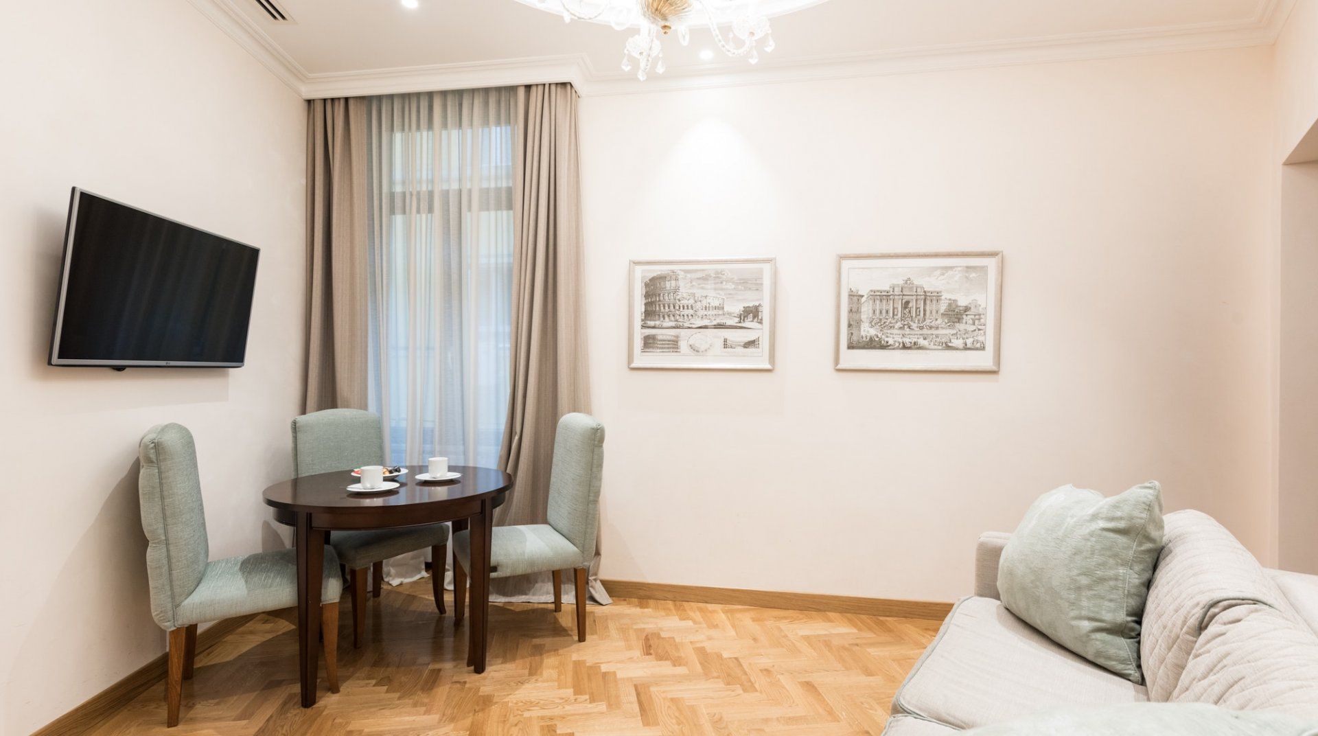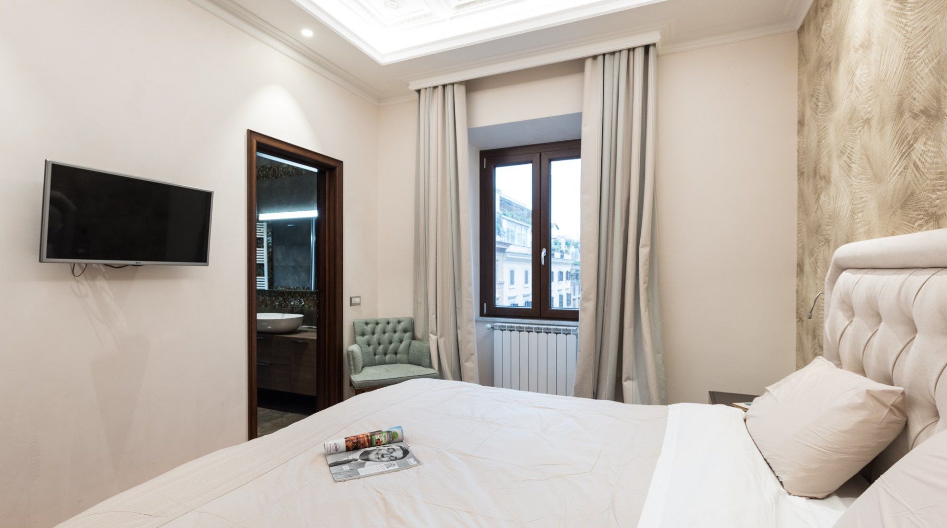 While it’s not the most stunning place in the city, Fern Fronds is a really good practical option for a comfortable stay in Rome. It is small, but it was in perfect condition when we visited, and the bathrooms are great for the size. It’s also right next to the iconic Via Veneto, and while that street isn’t as glamorous as it was in its sixties heyday, the Borghese gardens, Piazza di Spagna, and the metro are all within easy reach.