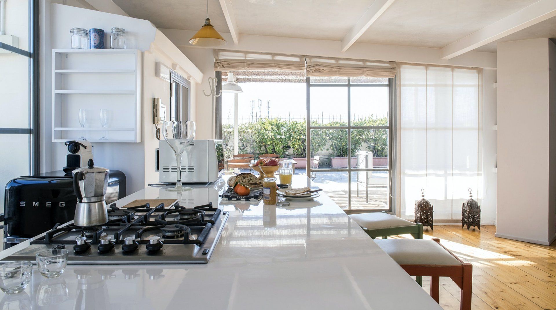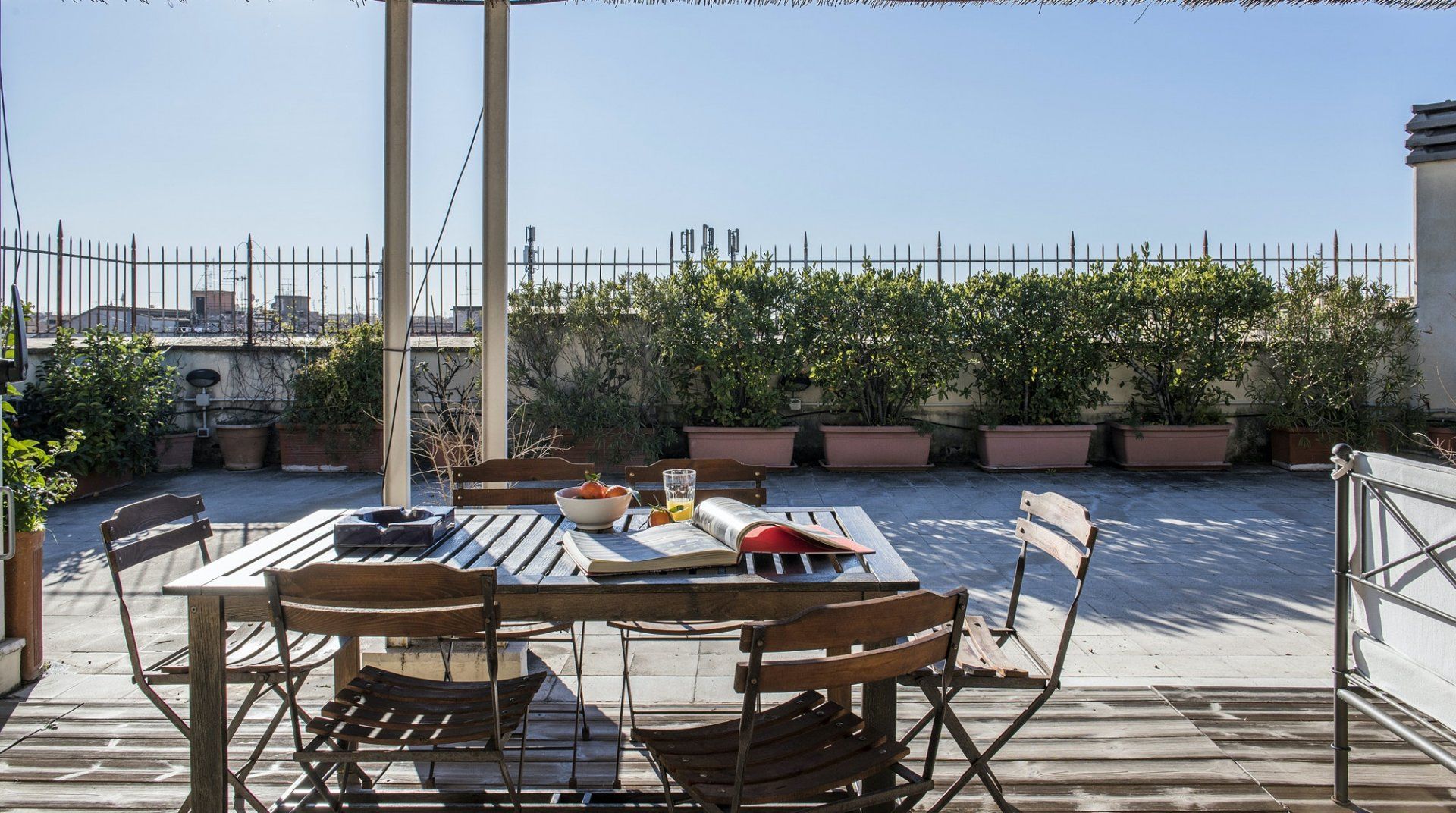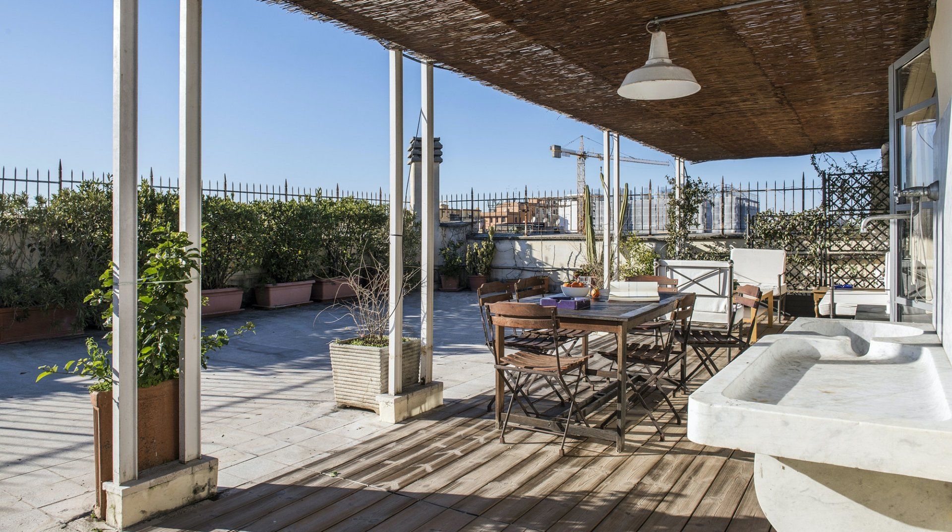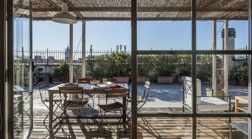 This sixth-floor loft apartment does things differently. There’s no TV for starters, and the bedrooms are comfortable, yet not breathtaking. So what caught our discerning eye? Step out onto the 200sq/metre rooftop terrace, overlooking picturesque Rome and all of your questions will be answered. The decked terrace comes with a veranda cover, plenty of sofa seating and a table for alfresco dining – we can think of nothing better than warmer evenings spent out here with friends and family, eating, drinking and laughing as the sun goes down. While there's certainly a Roman rustic charm to the home, with its wooden floorboards and low beamed ceilings, the modern details really bring the living room and kitchen to life. Light pours in through the sleek crittall windows, extending the space out to the terrace and creating a bright and airy kitchen-diner area – the modern breakfast bar is the perfect spot to sip your morning espresso. When – all caffeinated and ready to explore – you do eventually peel yourself away from that beautiful terrace, the home's location is ideal for discovering the city's ancient sights. Walk to the Colosseum in twenty minutes and visit the Roman Forum, under three kilometres from home. Termini train station is also a twenty-minute stroll away, connecting you to the rest of the city in no time at all. While a wander through the immediate neighbourhood will have you passing plenty of pastry shops, traditional trattorias and cocktail bars – with so much to see and do, you'll be spoilt for choice.