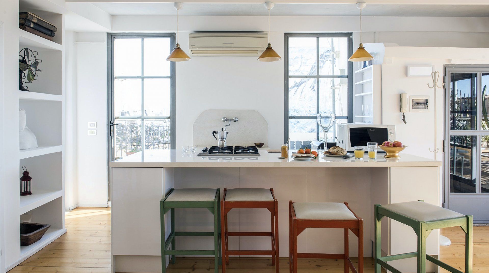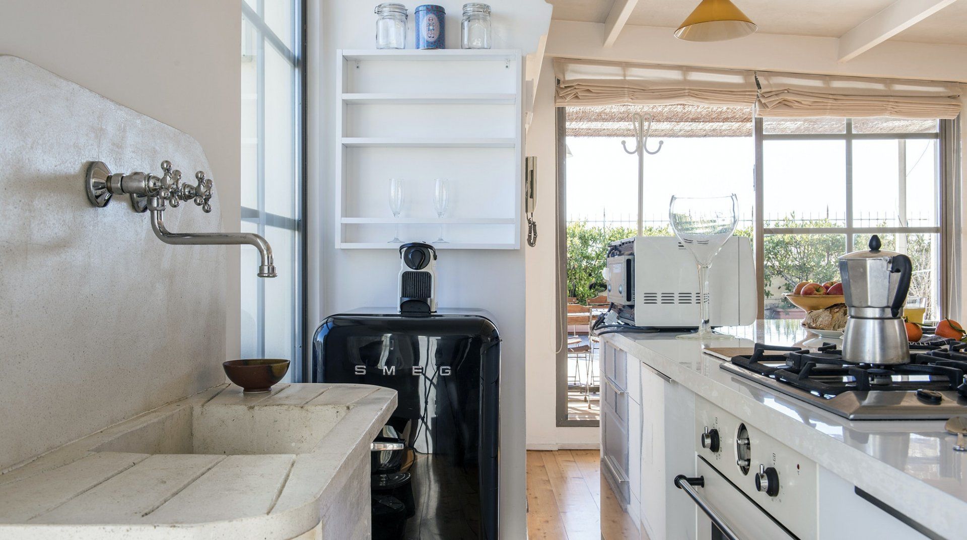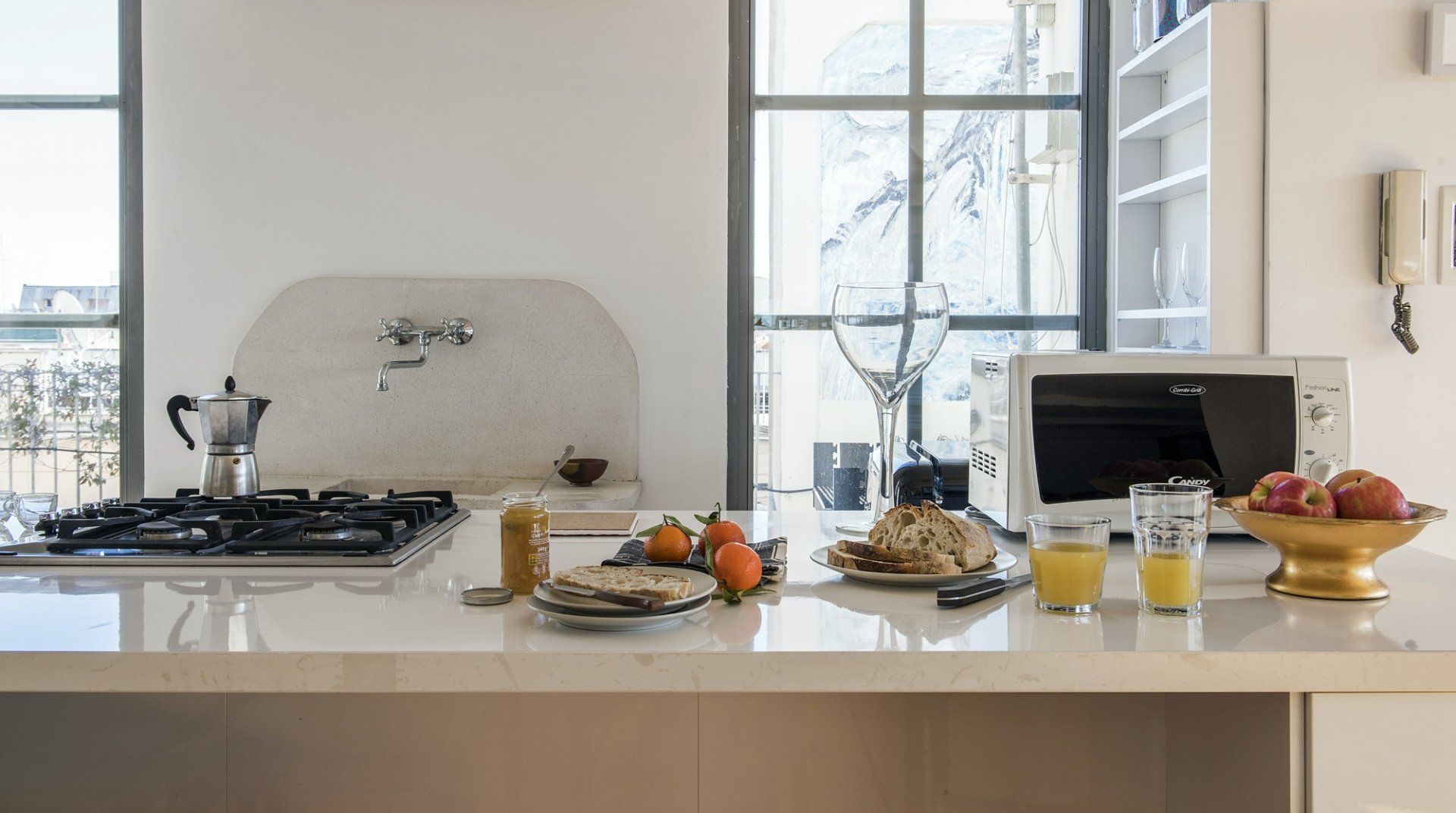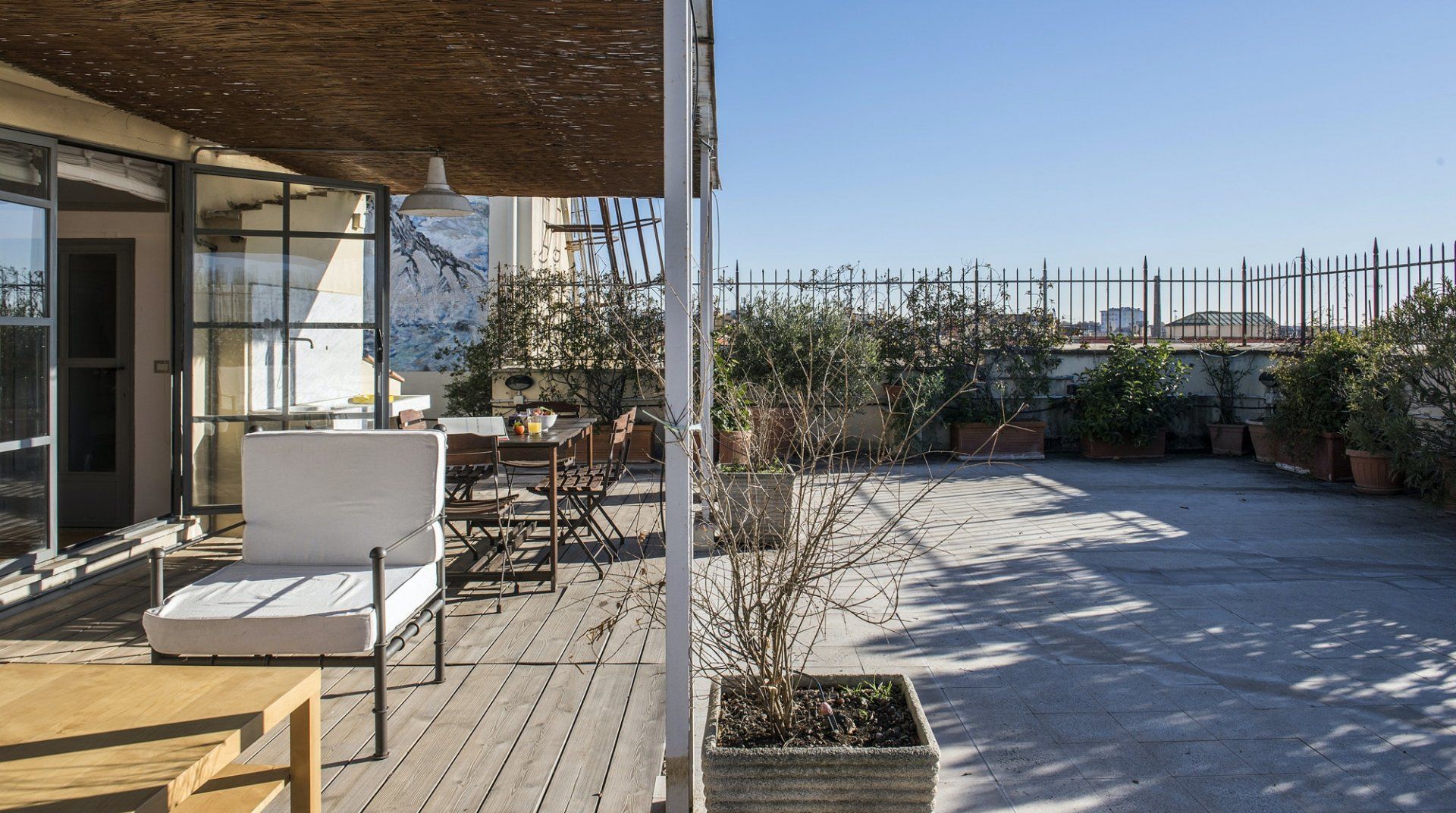 This sixth-floor loft apartment does things differently. There’s no TV for starters, and the bedrooms are comfortable, yet not breathtaking. So what caught our discerning eye? Step out onto the 200sq/metre rooftop terrace, overlooking picturesque Rome and all of your questions will be answered. The decked terrace comes with a veranda cover, plenty of sofa seating and a table for alfresco dining – we can think of nothing better than warmer evenings spent out here with friends and family, eating, drinking and laughing as the sun goes down. While there's certainly a Roman rustic charm to the home, with its wooden floorboards and low beamed ceilings, the modern details really bring the living room and kitchen to life. Light pours in through the sleek crittall windows, extending the space out to the terrace and creating a bright and airy kitchen-diner area – the modern breakfast bar is the perfect spot to sip your morning espresso. When – all caffeinated and ready to explore – you do eventually peel yourself away from that beautiful terrace, the home's location is ideal for discovering the city's ancient sights. Walk to the Colosseum in twenty minutes and visit the Roman Forum, under three kilometres from home. Termini train station is also a twenty-minute stroll away, connecting you to the rest of the city in no time at all. While a wander through the immediate neighbourhood will have you passing plenty of pastry shops, traditional trattorias and cocktail bars – with so much to see and do, you'll be spoilt for choice.